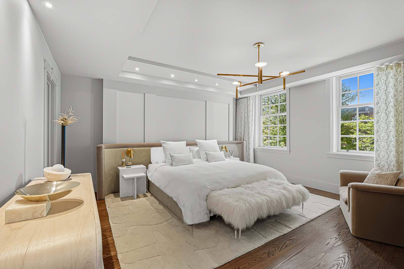 - Les revêtements de fenêtres, le luminaire de la chambre des maîtres ainsi que celui de la salle de bain des maîtres.