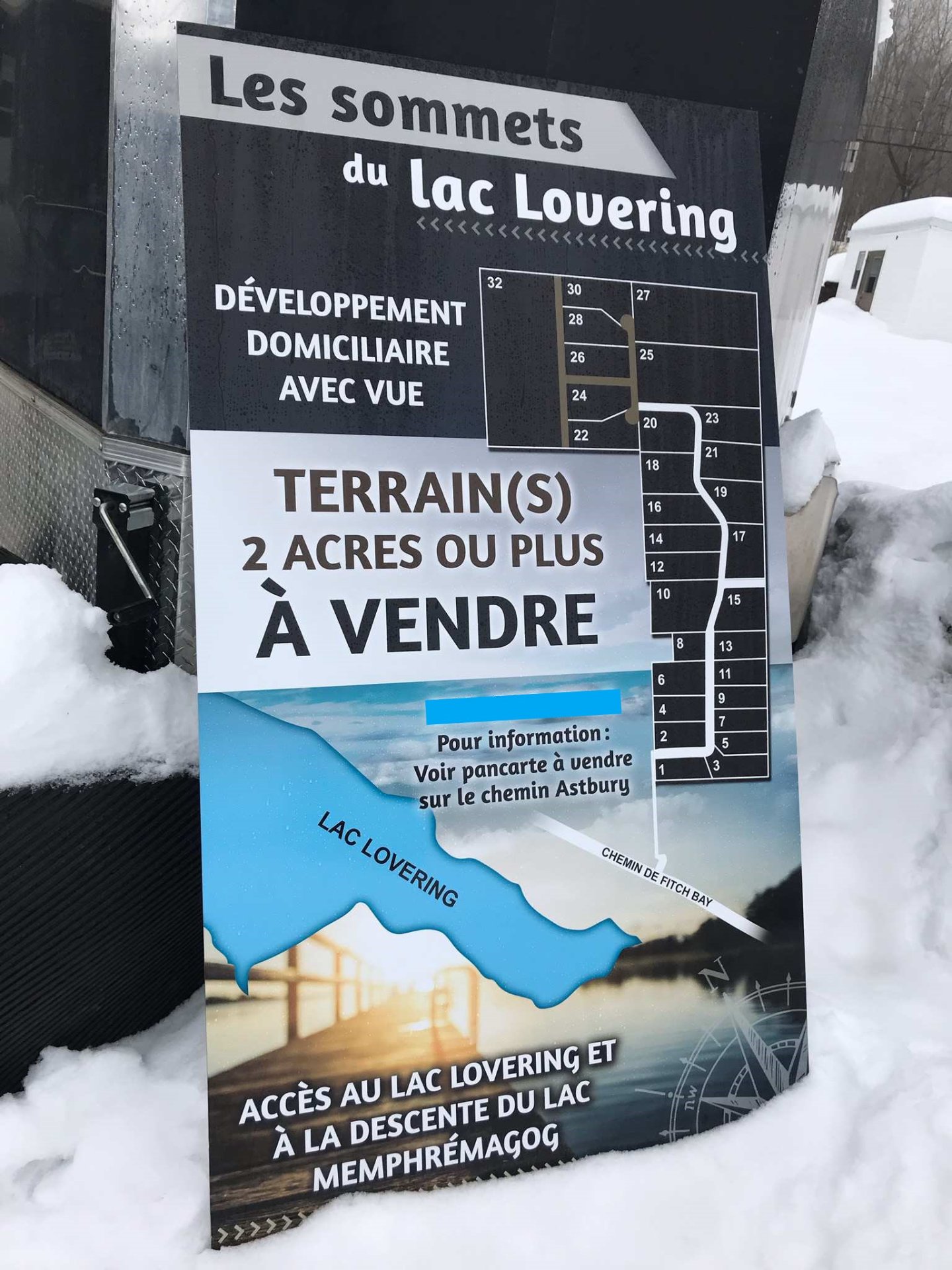 Grand terrain boisé (lot 32) de 488 051.8 pieds carrés (11 acres) avec vue sur le Lac Lovering et la montagne ! Accès au Lac Lovering avec une descente de bateaux à 2 min, le passage est entre le 14 et le 16 chemin Bergeron. Vous serez également à une dizaine de minutes de la descente de bateaux publique de Fitch Bay pour le Lac Memphrémagog. La plage du Lac Lovering est à environ 10min où quelques activités annuelles sont organisées (Fête de la St-Jean, épluchettes de blé d'Inde). Vous serez à 15min de la ville de Magog. Ce terrain est zoné vert. Le vendeur s'engage à finir le chemin pour désenclaver le terrain#4 923 548 (Lot 32).