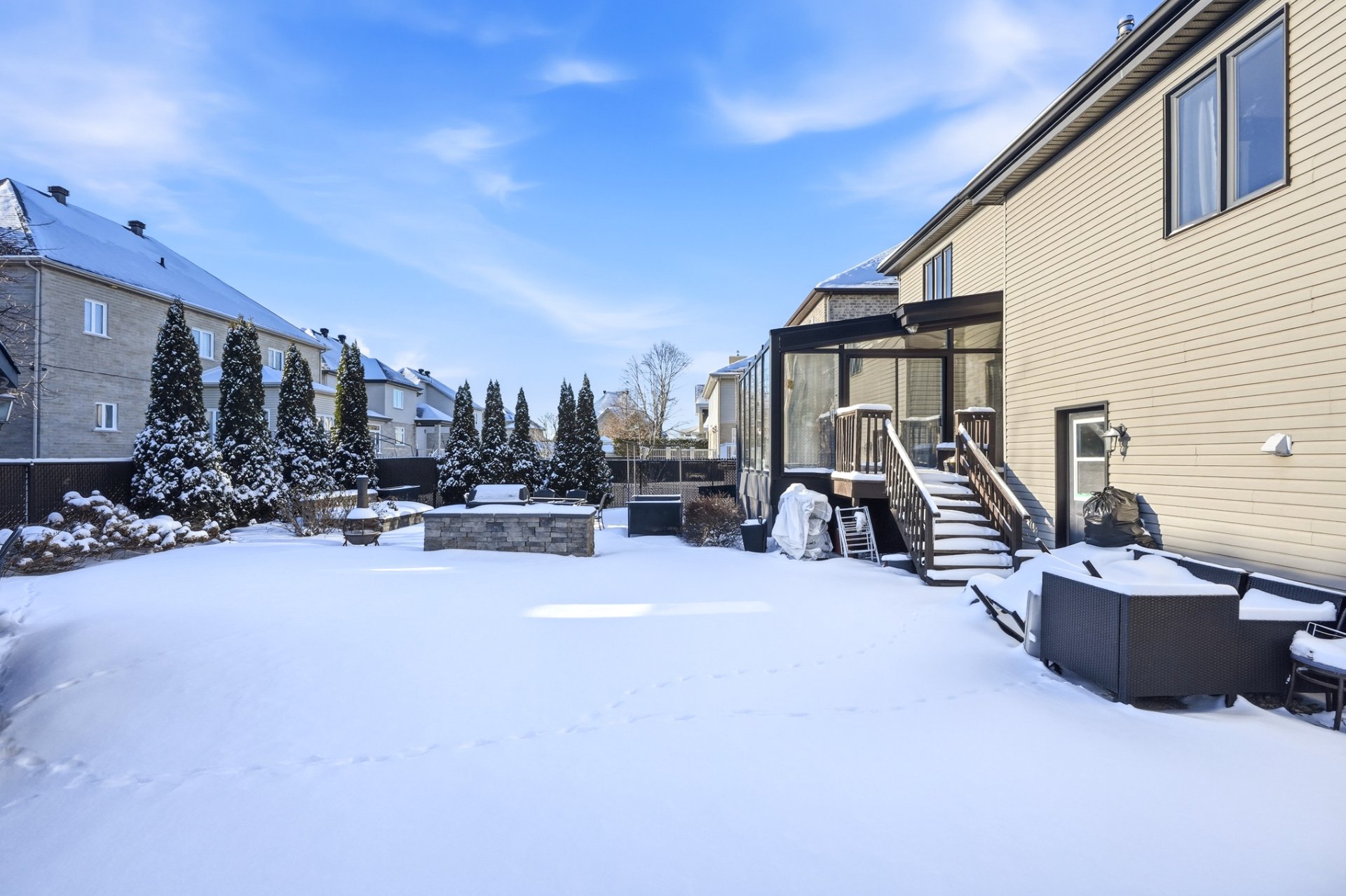 À l'extérieur, le terrain de 6 189 pi² complète harmonieusement l'ensemble. Le garage double se distingue par sa configuration offrant un espace supplémentaire idéal pour du rangement, un atelier, un espace d'entraînement ou l'entreposage d'équipements sportifs et saisonniers. Une propriété élégante, spacieuse et idéalement située, à découvrir sans tarder.