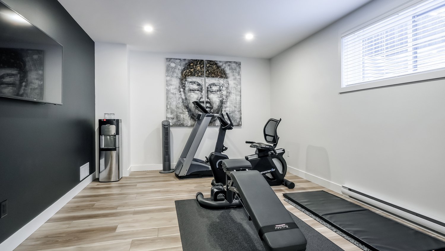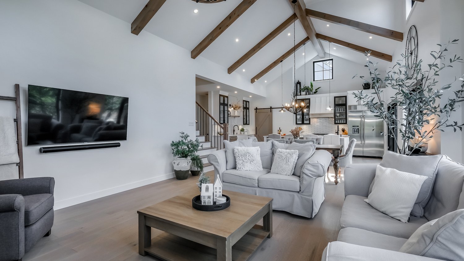 - Barre de son Sonos, micro ondes, tabourets, 4 téléviseurs, laveuse, sécheuse, borne électrique