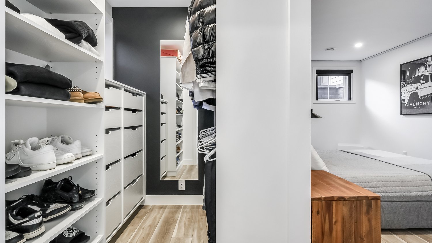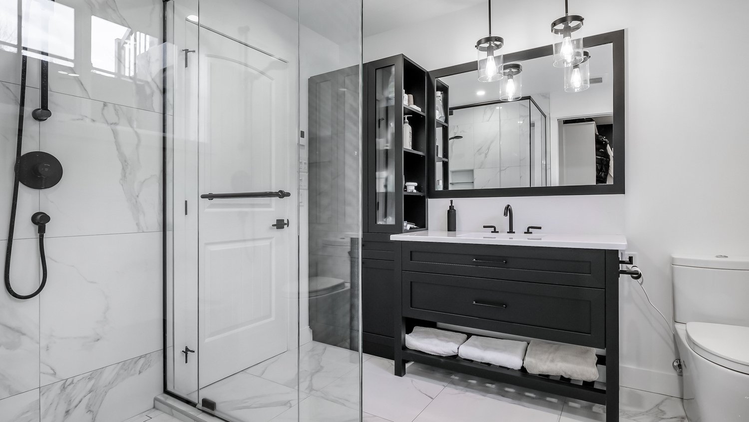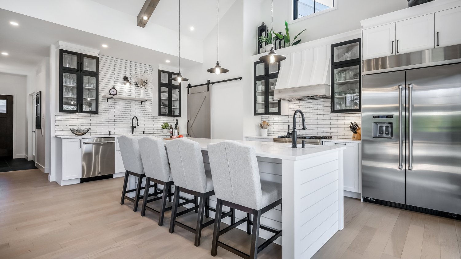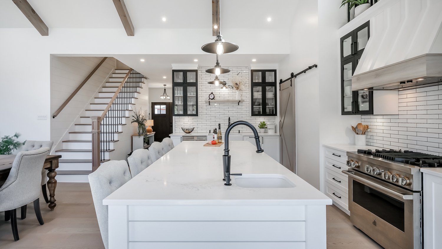 La cuisine moderne séduit par ses matériaux de qualité et son vaste garde-manger (kitchen pantry), intégré de façon intelligente pour un rangement optimisé et discret.