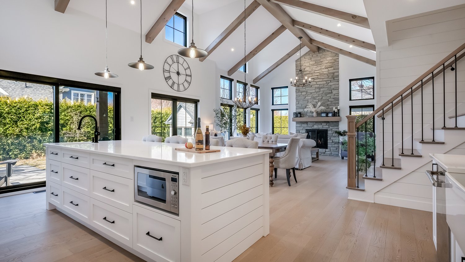 Construite avec des matériaux de premier choix, cette demeure se distingue par ses finitions impeccables et son design intérieur digne des plus belles inspirations Pinterest. L'aire de vie principale offre un spectaculaire plafond cathédrale, une luminosité abondante grâce à ses vastes fenêtres et des toiles motorisées pour un confort au quotidien. Le salon, la salle à manger et la cuisine s'intègrent dans un espace ouvert, fluide et convivial, parfait pour recevoir avec élégance.