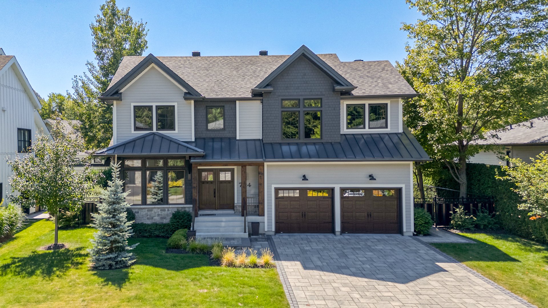 Dès votre arrivée, vous serez charmé par l'entrée en pavé uni et les détails soignés : fenêtres noires intérieures/extérieures, portes avant et de garage de qualité supérieure, ainsi que deux prises prêtes à accueillir des bornes de recharge électrique.