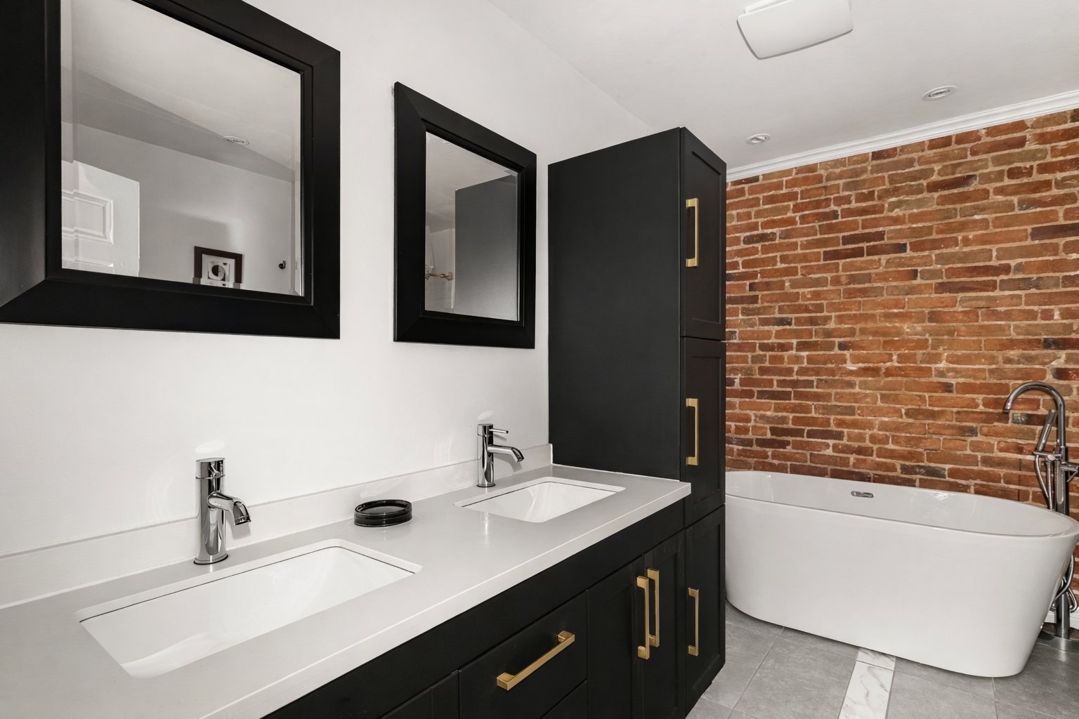*Chambre principale et deuxième chambre à l'avant avec mur de brique et excellente luminosité naturelle.