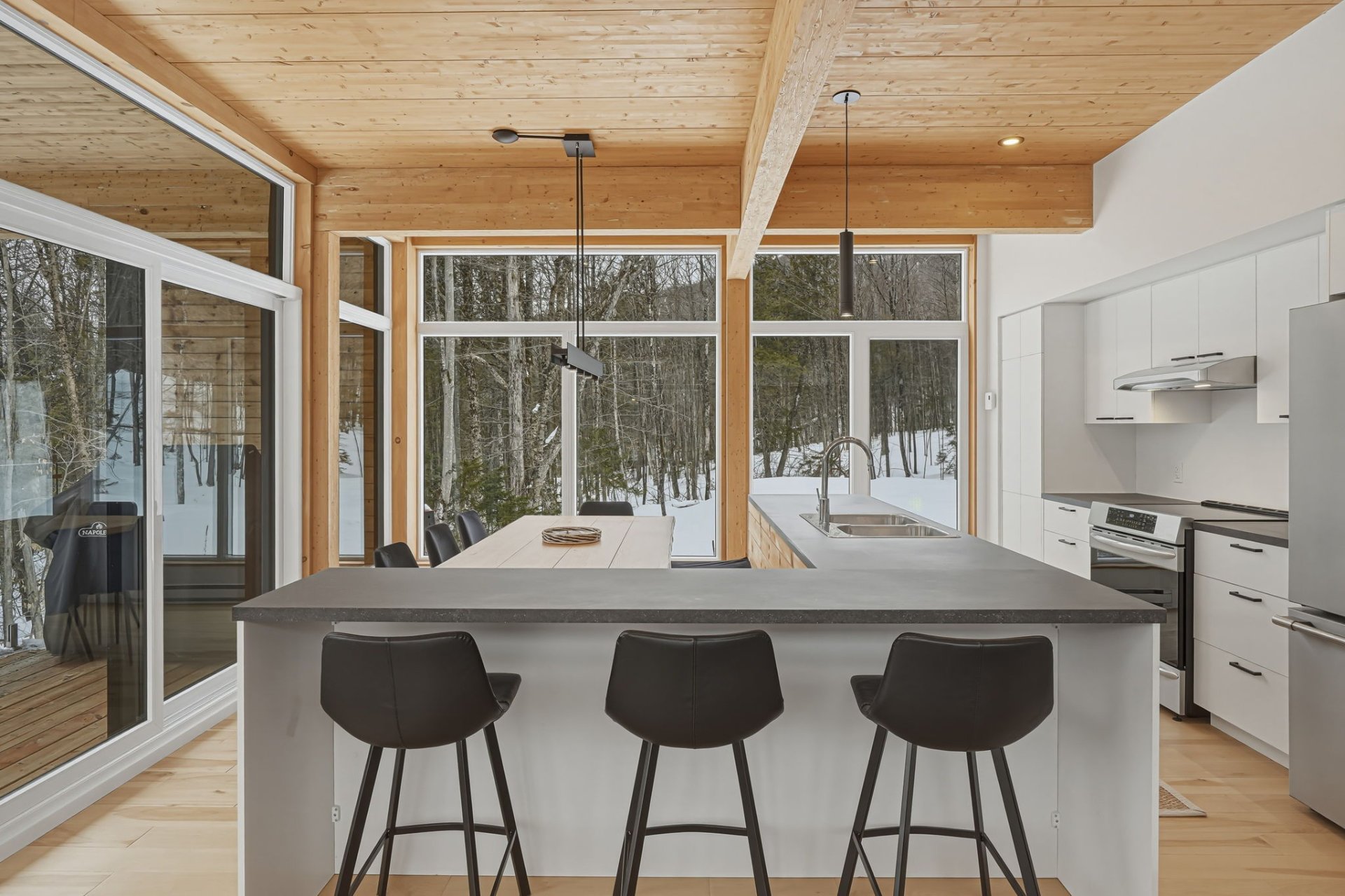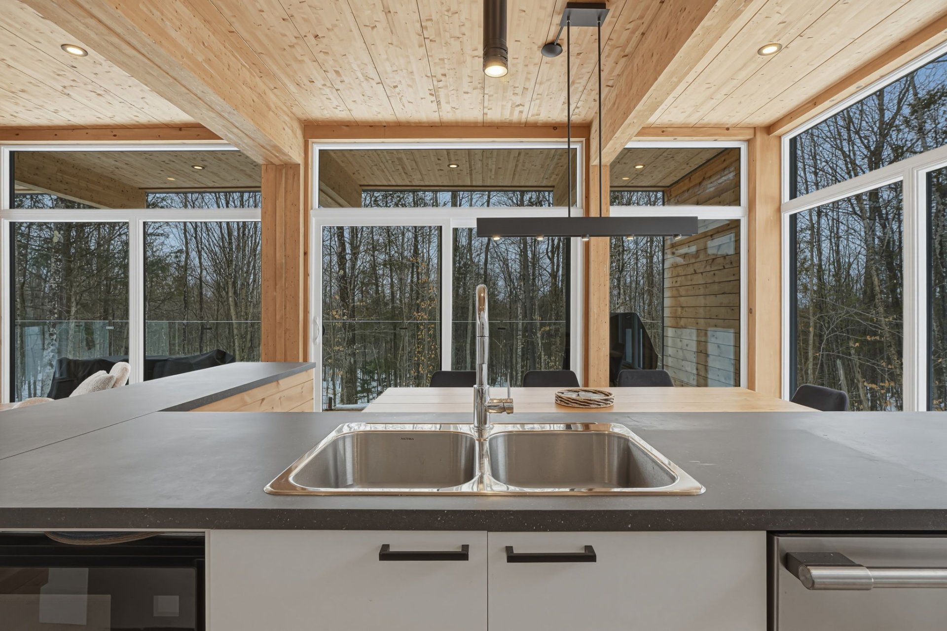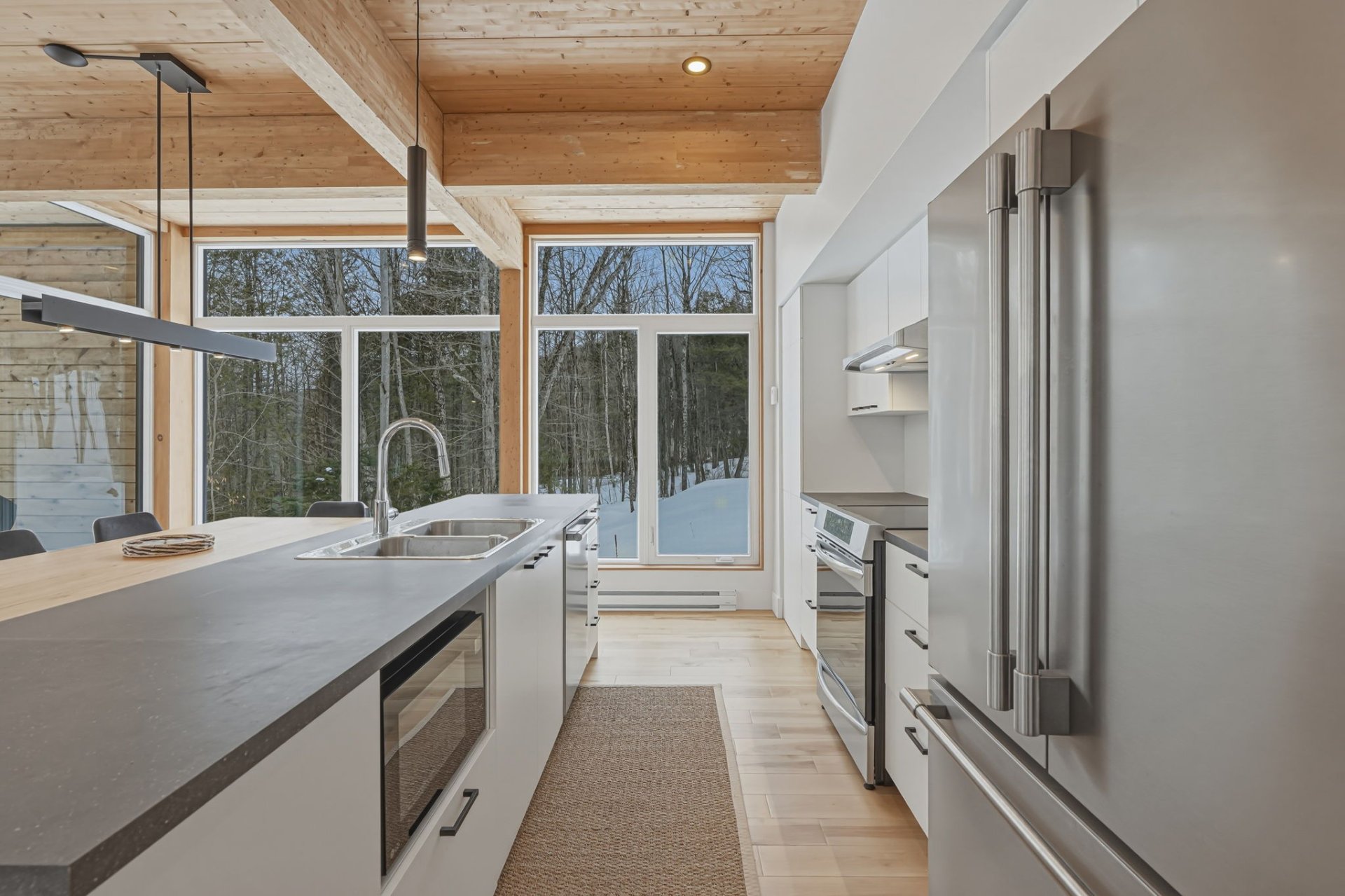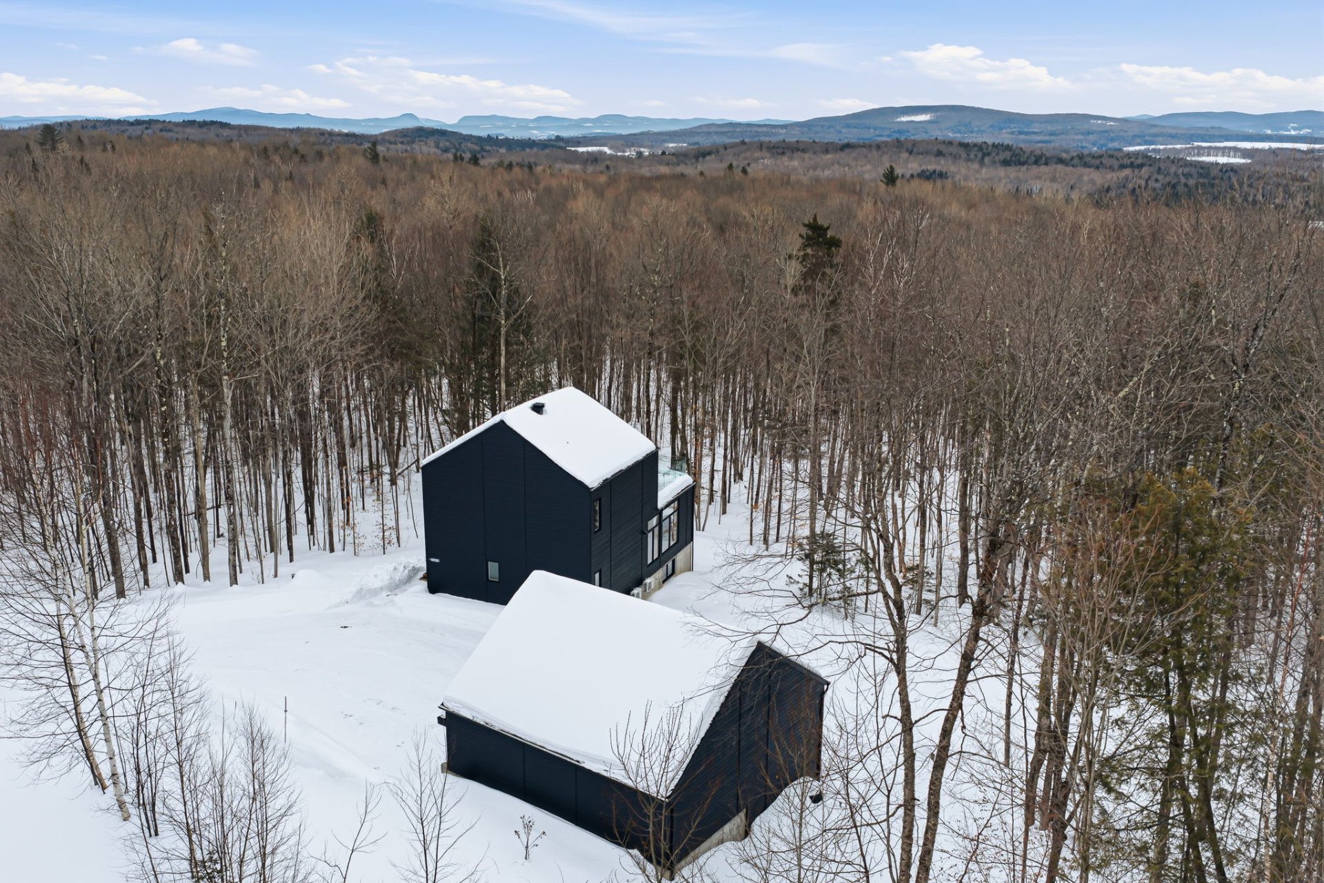Cantons-de-l'Est, à la frontière Canada--États-Unis. Construction scandinave Natur Evo (2022), toujours sous garantie GCR, avec garage double, implantée sur un site exceptionnel de 79,6 acres boisés privés, voisin du Owl's Head Ski & Golf. Un véritable repère de tranquillité offrant près de 3,4 millions de pi² de nature. Propriété située hors périmètre de la Loi sur l'interdiction d'achat d'immeubles résidentiels par des non-Canadiens. Bienvenue aux acheteurs américains et européens à la recherche d'un investissement immobilier unique au Canada.