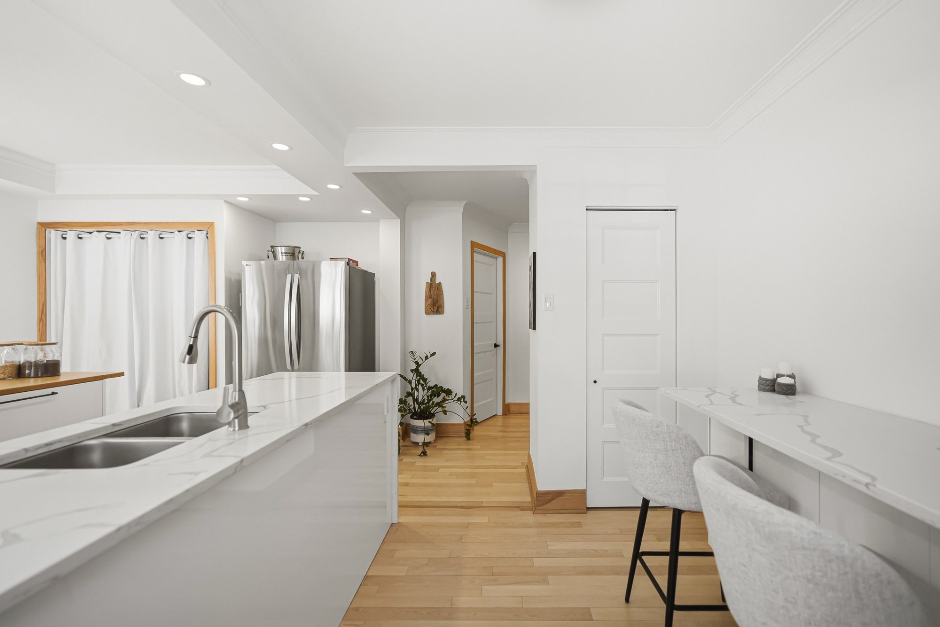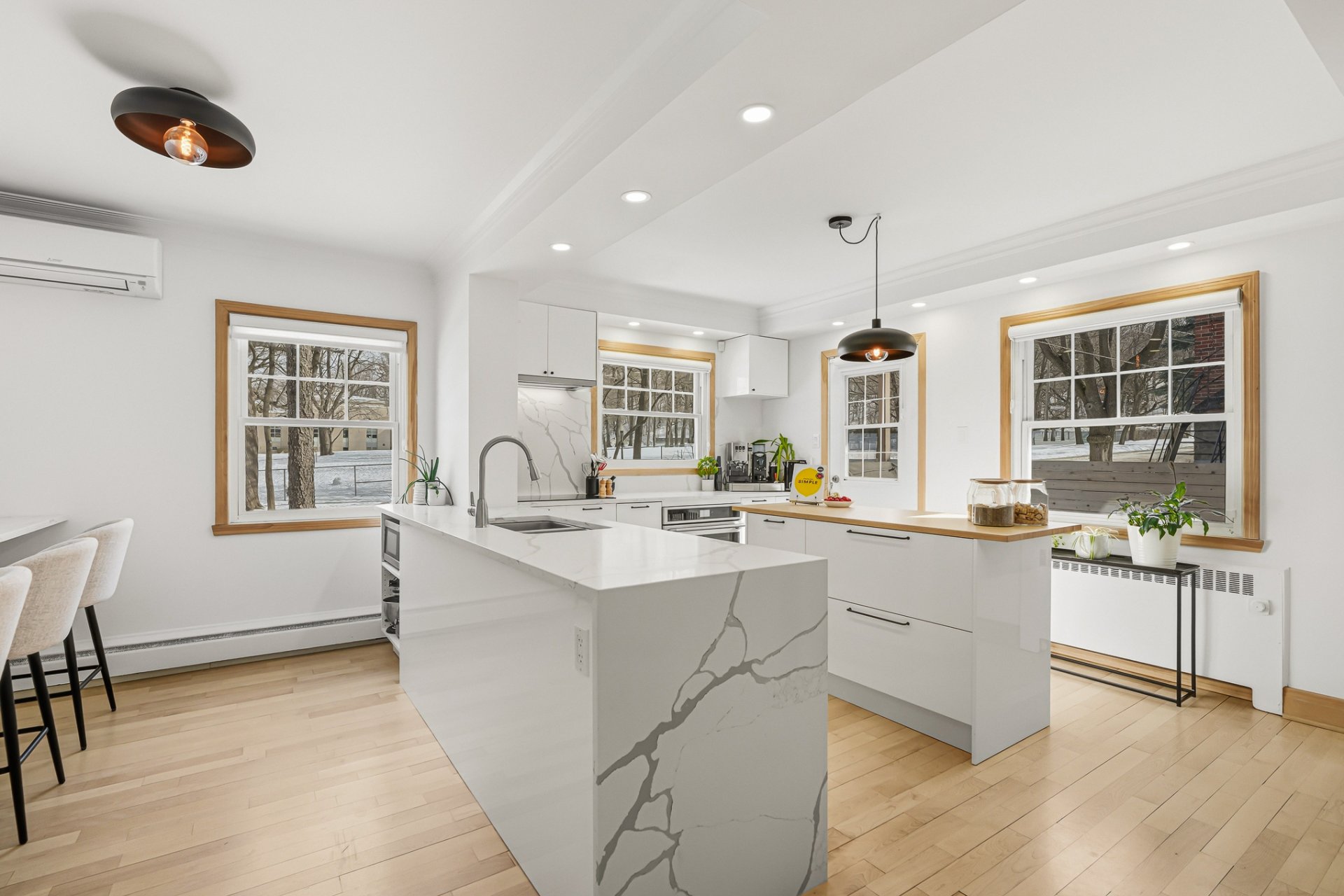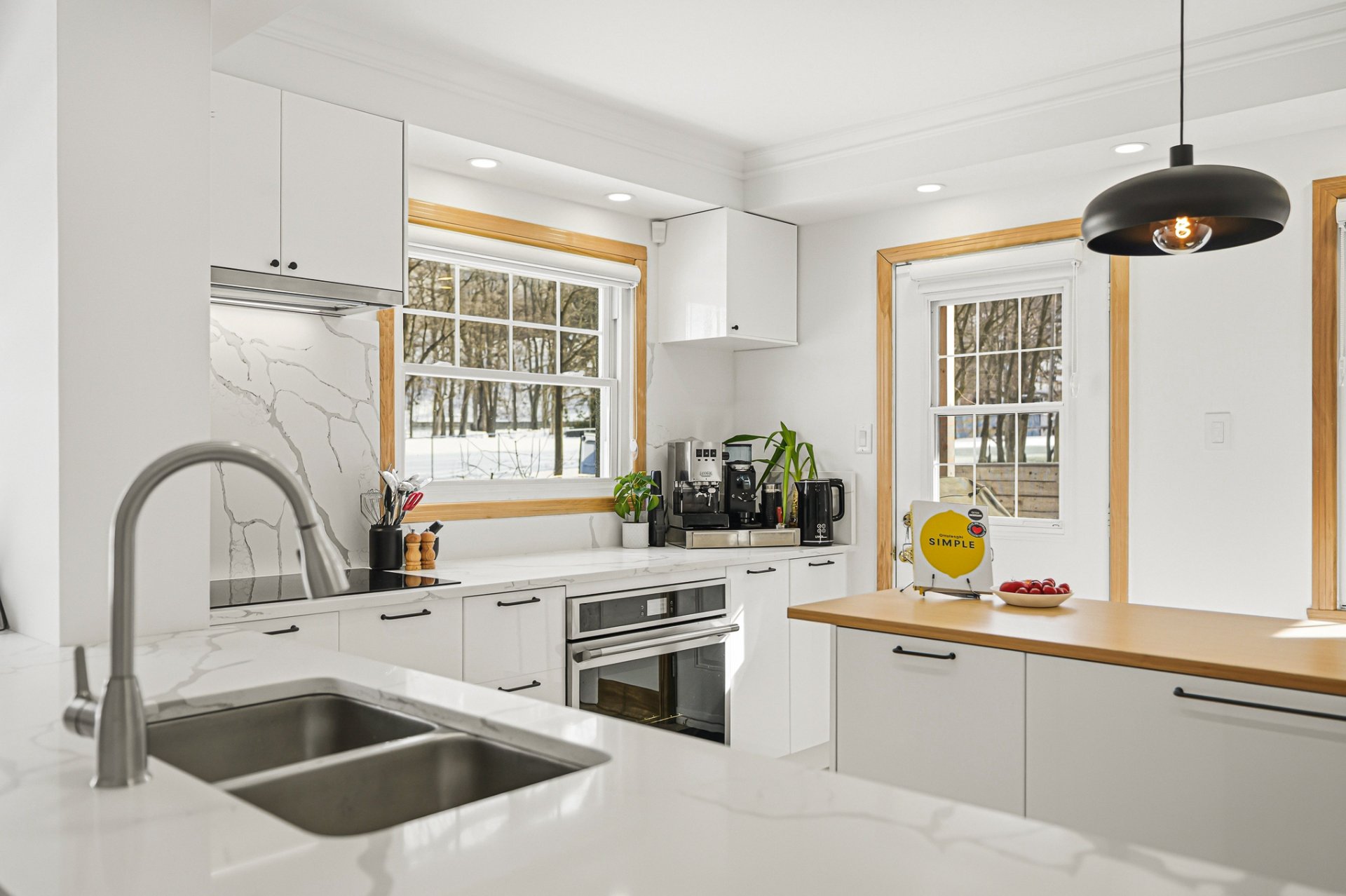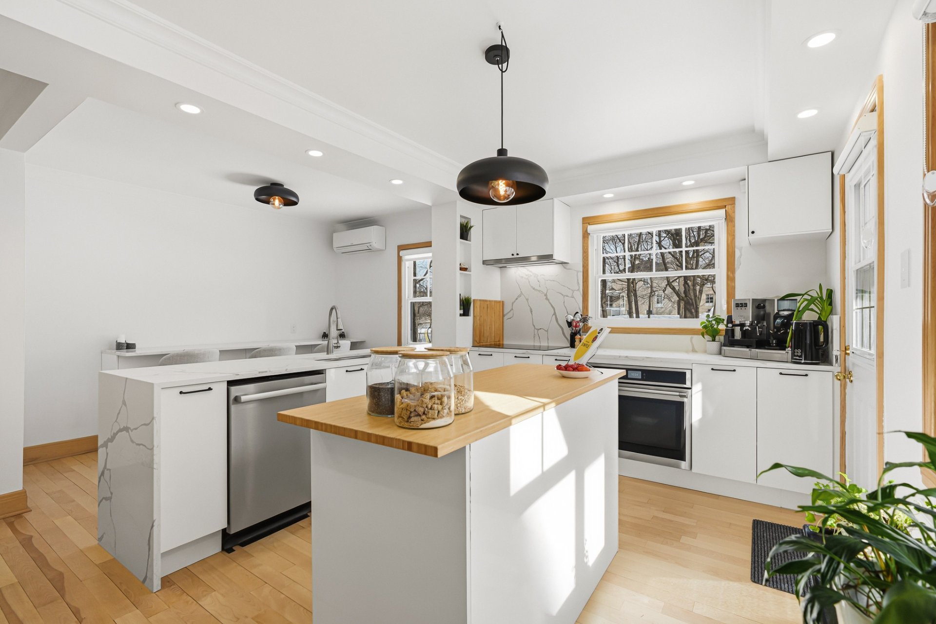 + Cuisine avec grand îlot, comptoir lunch, comptoir de quartz, garde-manger et électroménagers de qualité