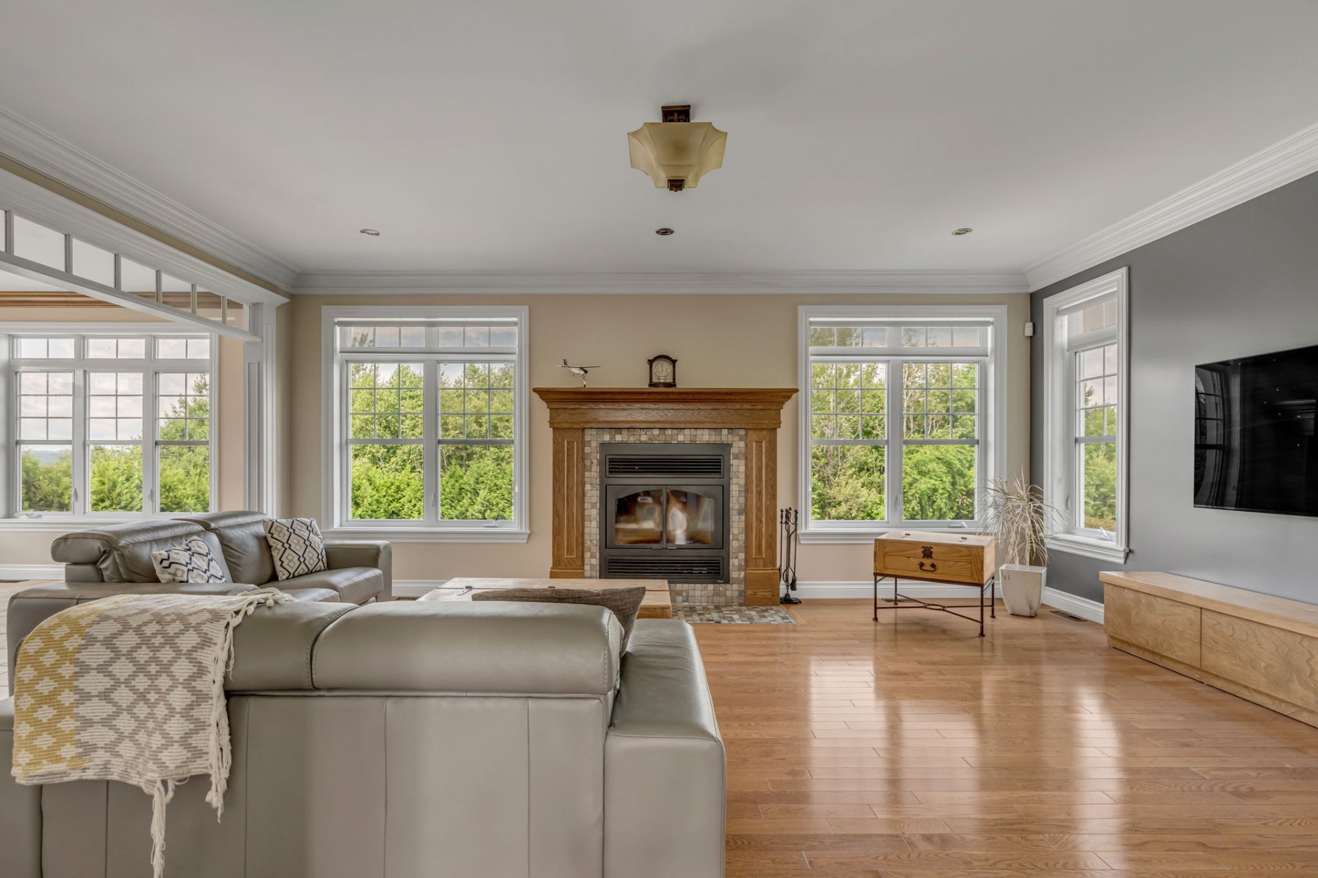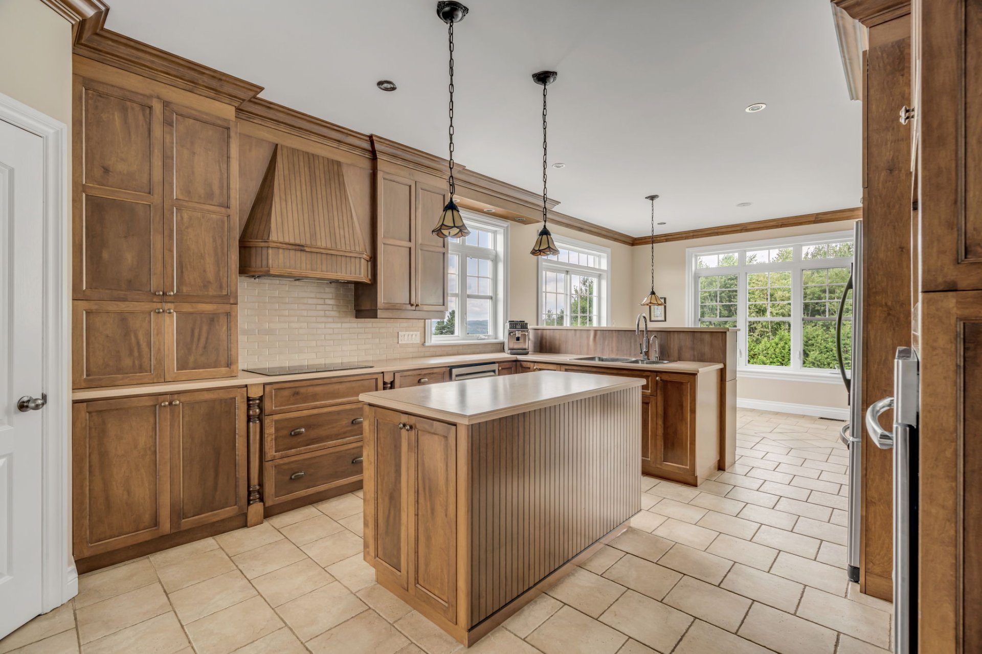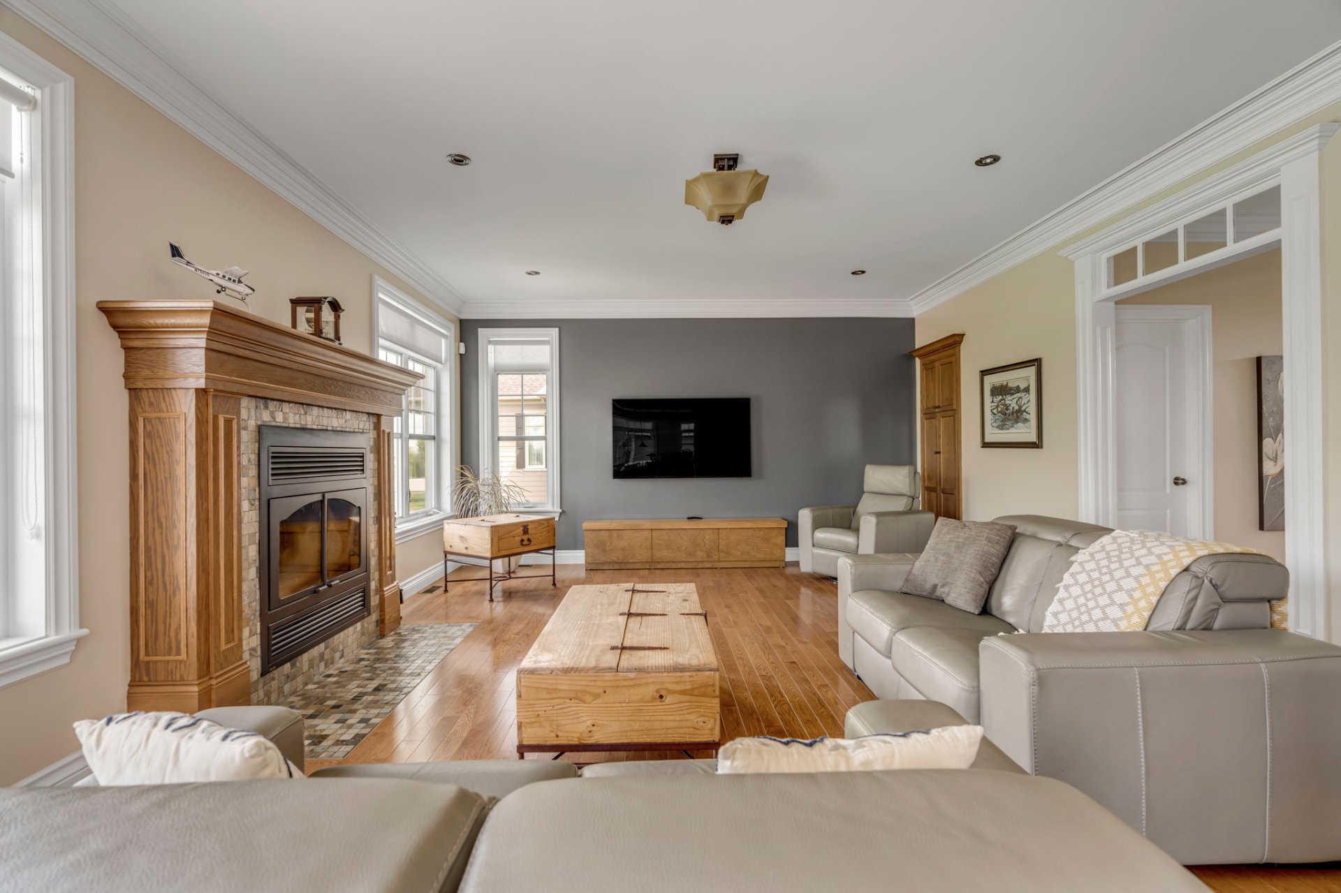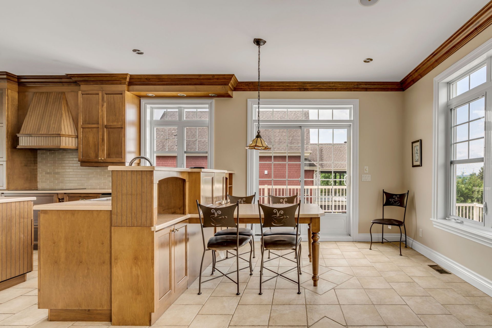 Spacieuse propriété familiale comprenant une grande cuisine conviviale, une salle à manger, un salon chaleureux avec foyer au bois et une vaste fenestration. Salle d'eau, salle de lavage et accès direct à la terrasse.