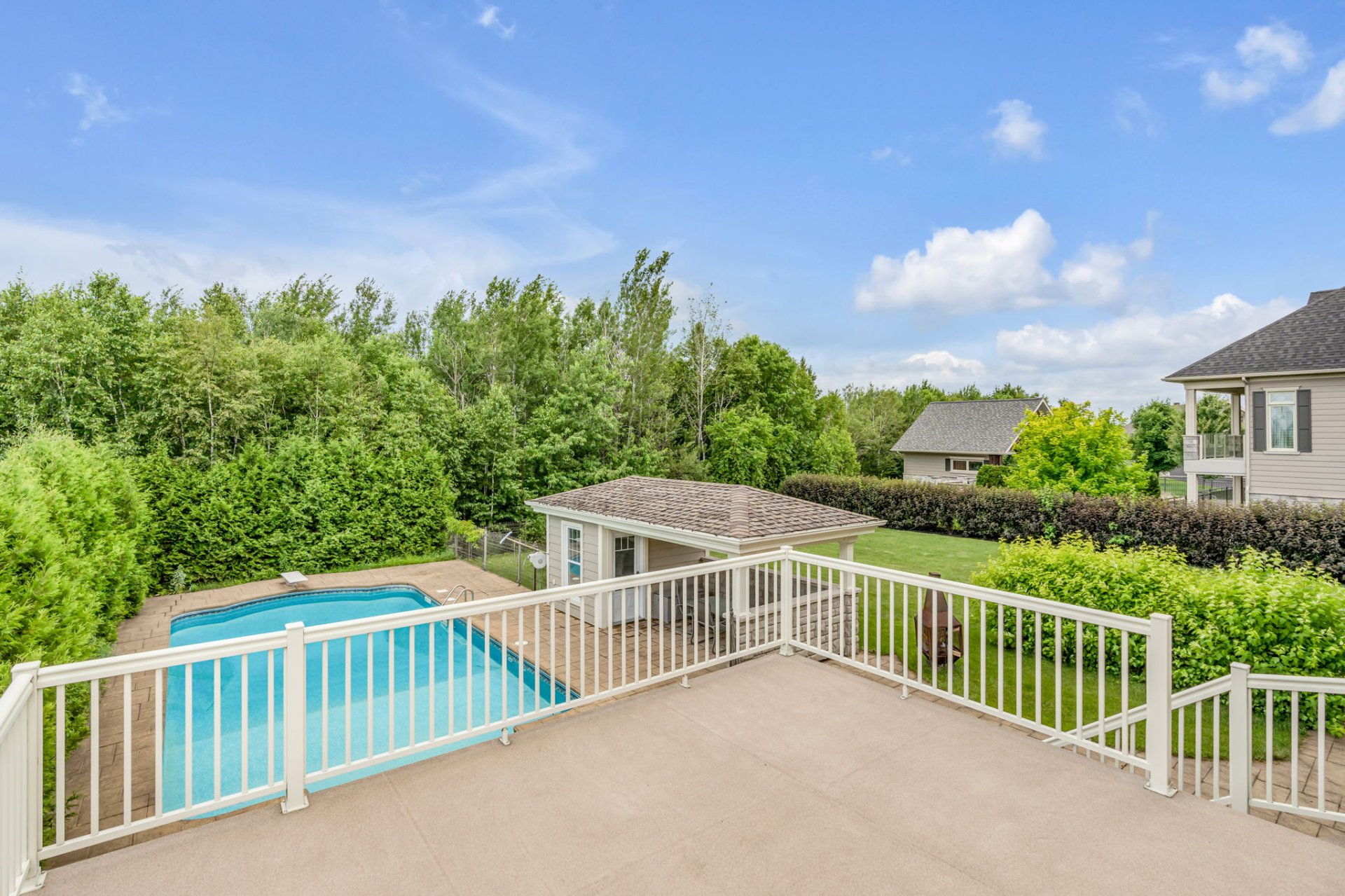 Aménagé avec soin, incluant une piscine creusée chauffée et un pool house offrant confort, vue et intimité.