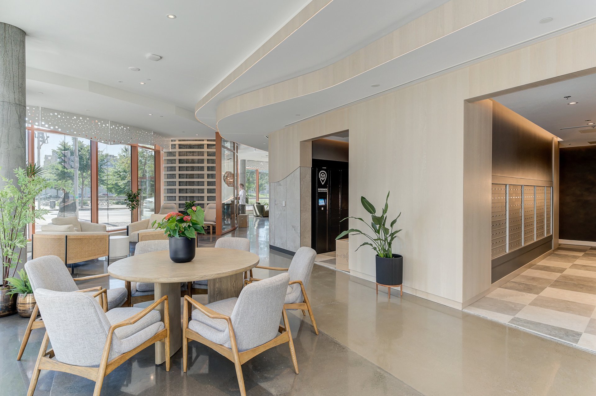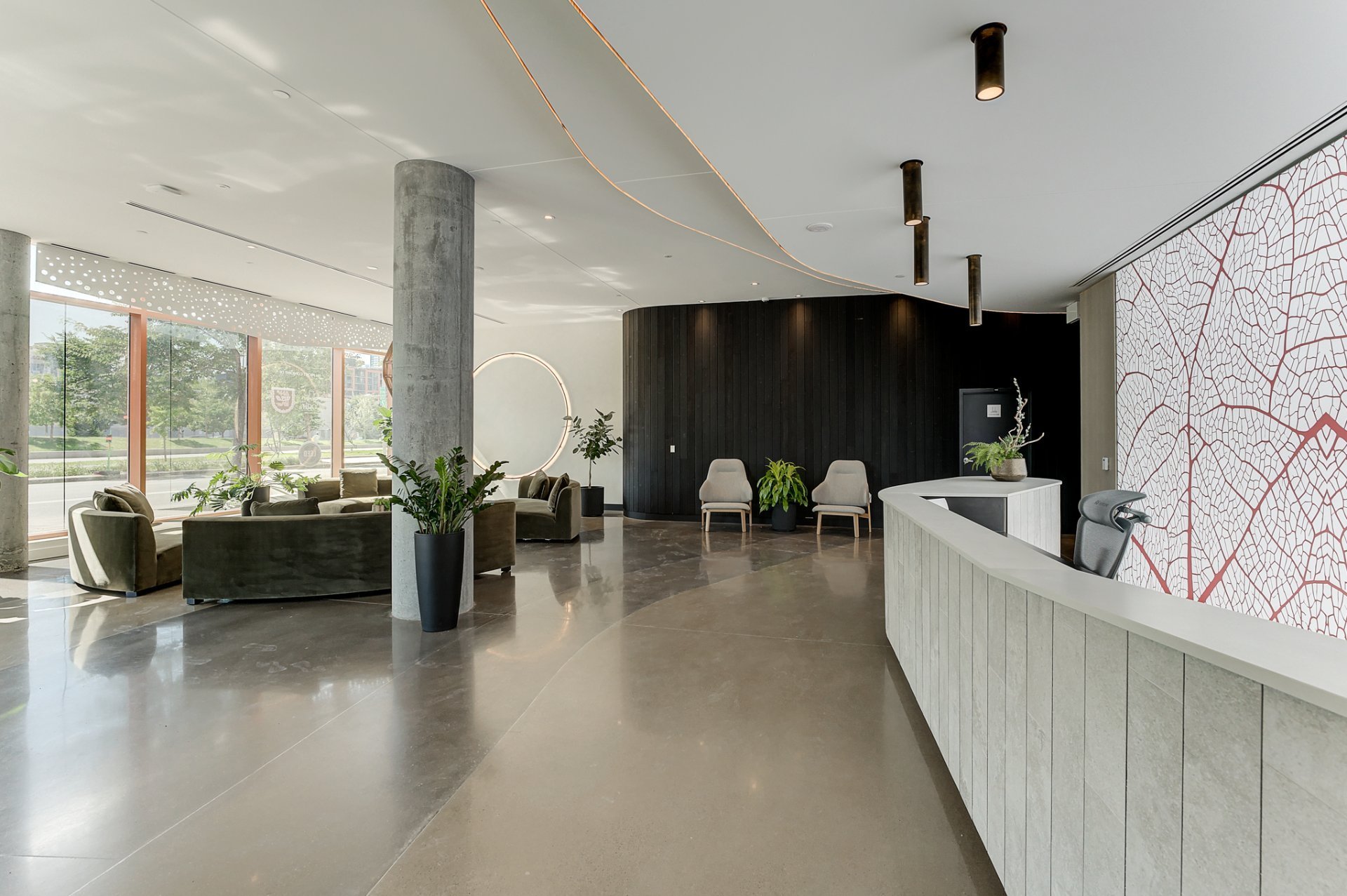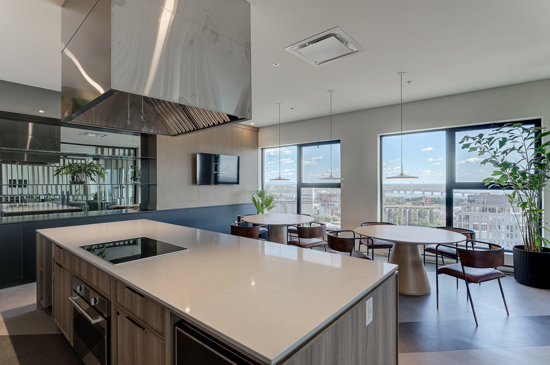 Lounge, Gym multifonctionnel, Espace détente & yoga, Salon panoramique, Toit vert, 1 piscine avec jet pour entraînement sur la terrasse au 7e, 1 piscine détente sur la terrasse sur le toit au 26, BBQ, Cour intérieure, Cuisine communautaire & salle à manger, Espace de co-working, Rangement (casiers), 2 voitures en autopartage, Stationnement intérieur, Bornes de recharge pour véhicules électriques, Lave-auto libre-service, Espaces vélos avec atelier de réparation et d'entretien, salle de toilettage pour chiens, administration et conciergerie sur site.