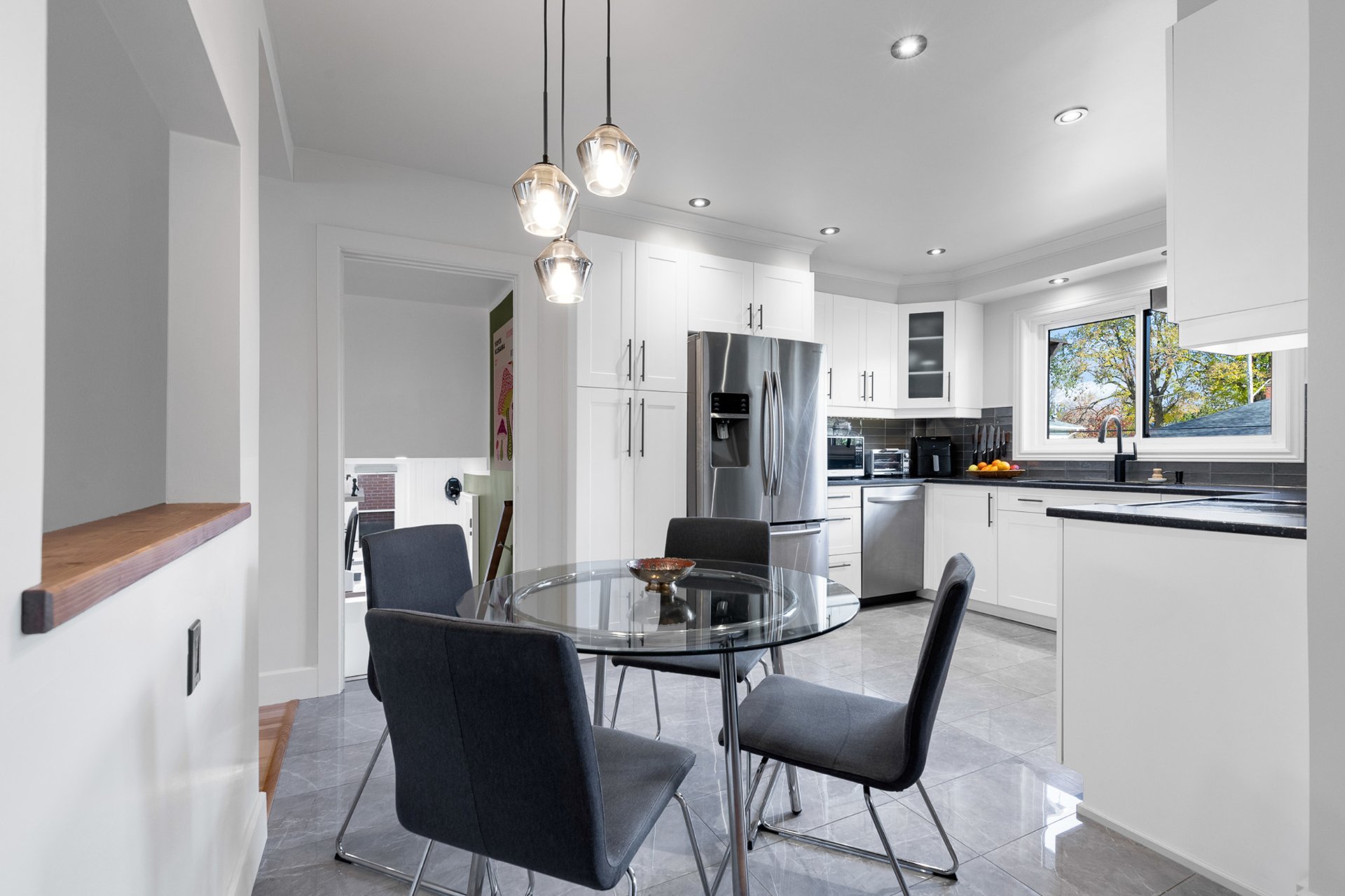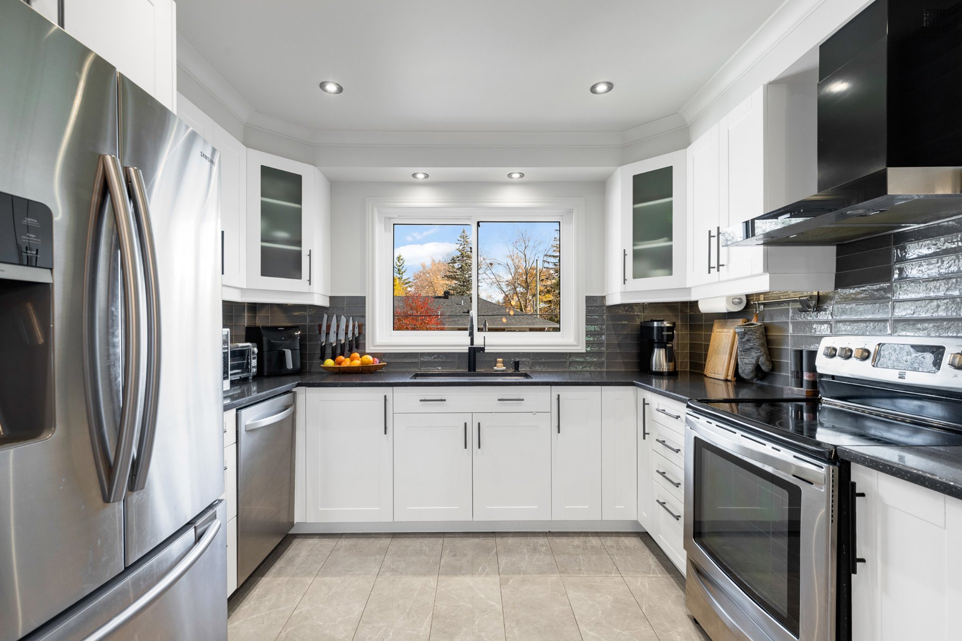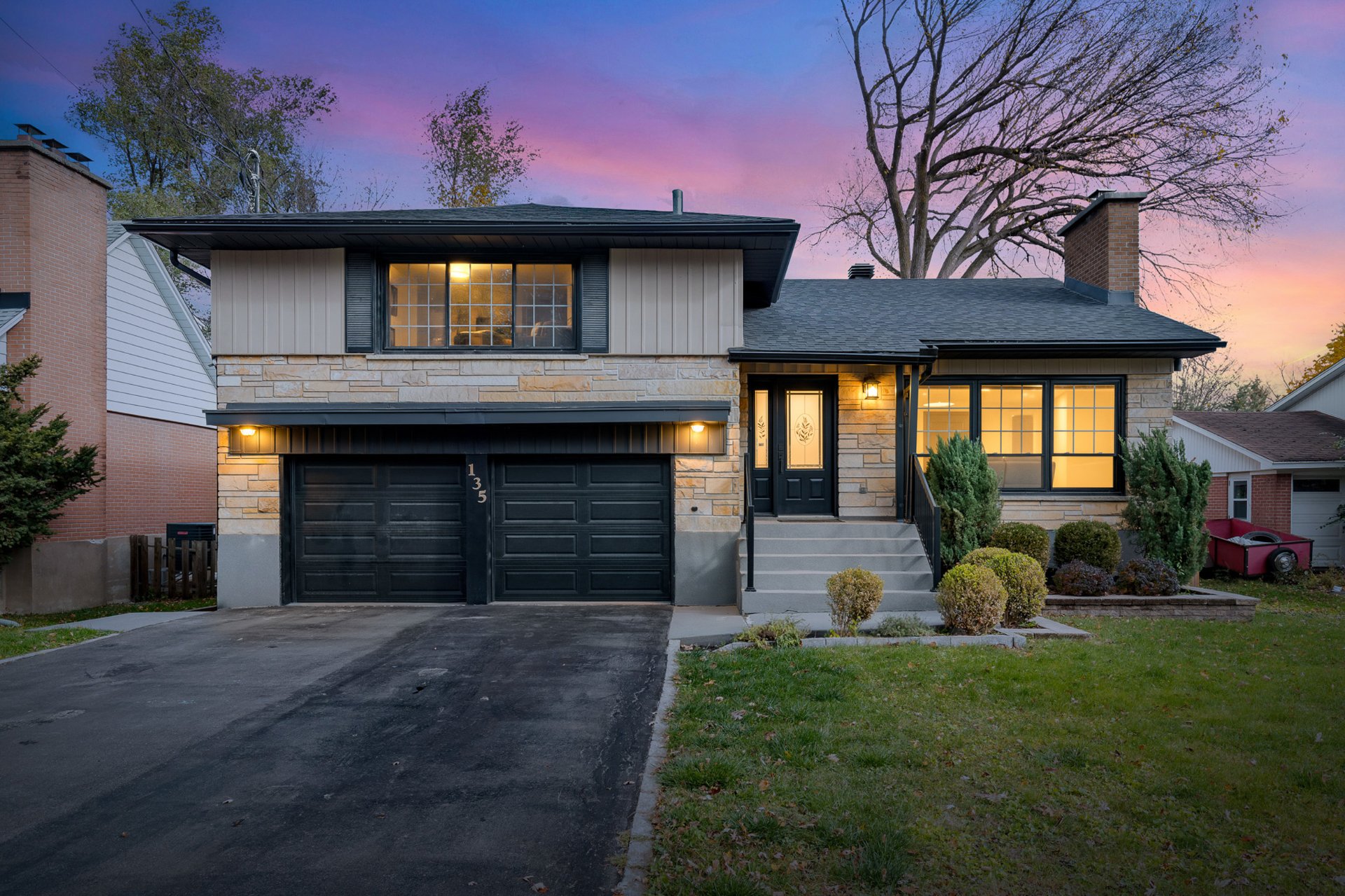 CLÉ EN MAIN! Superbe maison individuelle à paliers rénovée, offrant quatre chambres et deux salles de bain à l'étage. Le rez-de-chaussée propose un espace lumineux à aire ouverte avec des meubles intégrés sur mesure, un foyer, une élégante salle à manger et une cuisine moderne. Le niveau inférieur comprend un boudoir et une salle de bain complète avec entrée indépendante-parfait pour invités ou cohabitation intergénérationnelle. Le sous-sol dispose d'une spacieuse cinquième chambre avec walk-in, d'un studio de musique/bureau et de beaucoup de rangement. À l'extérieur : jardin clôturé, terrasse à paliers, cabanon et garage double.