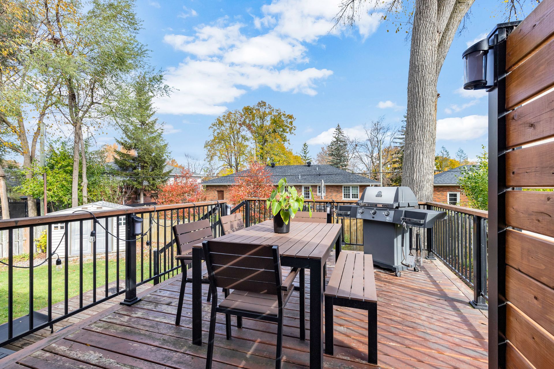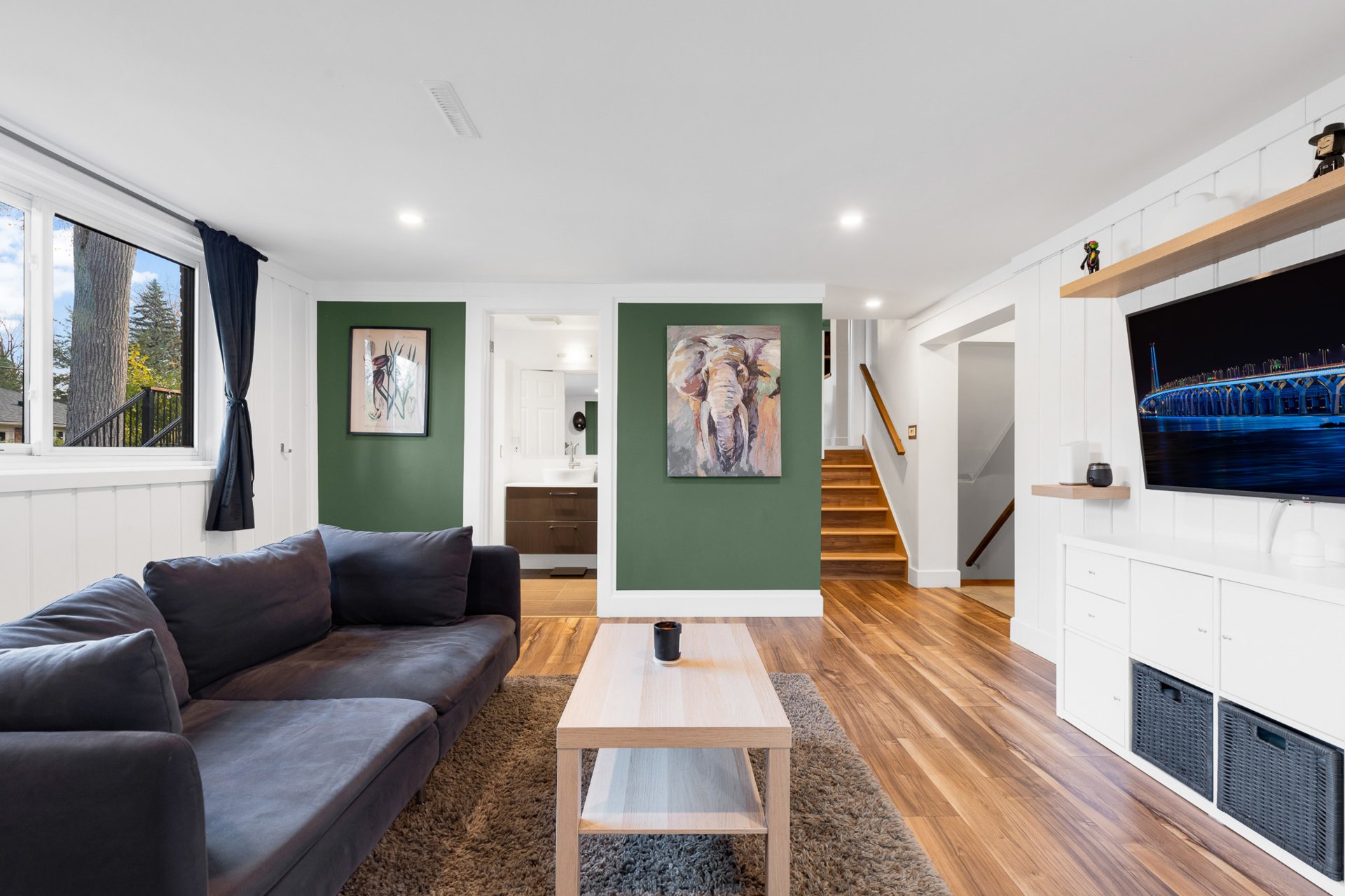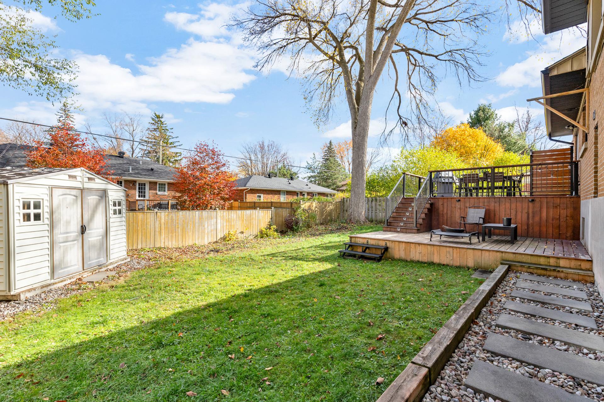 CLÉ EN MAIN! Superbe maison individuelle à paliers rénovée, offrant quatre chambres et deux salles de bain à l'étage. Le rez-de-chaussée propose un espace lumineux à aire ouverte avec des meubles intégrés sur mesure, un foyer, une élégante salle à manger et une cuisine moderne. Le niveau inférieur comprend un boudoir et une salle de bain complète avec entrée indépendante-parfait pour invités ou cohabitation intergénérationnelle. Le sous-sol dispose d'une spacieuse cinquième chambre avec walk-in, d'un studio de musique/bureau et de beaucoup de rangement. À l'extérieur : jardin clôturé, terrasse à paliers, cabanon et garage double.