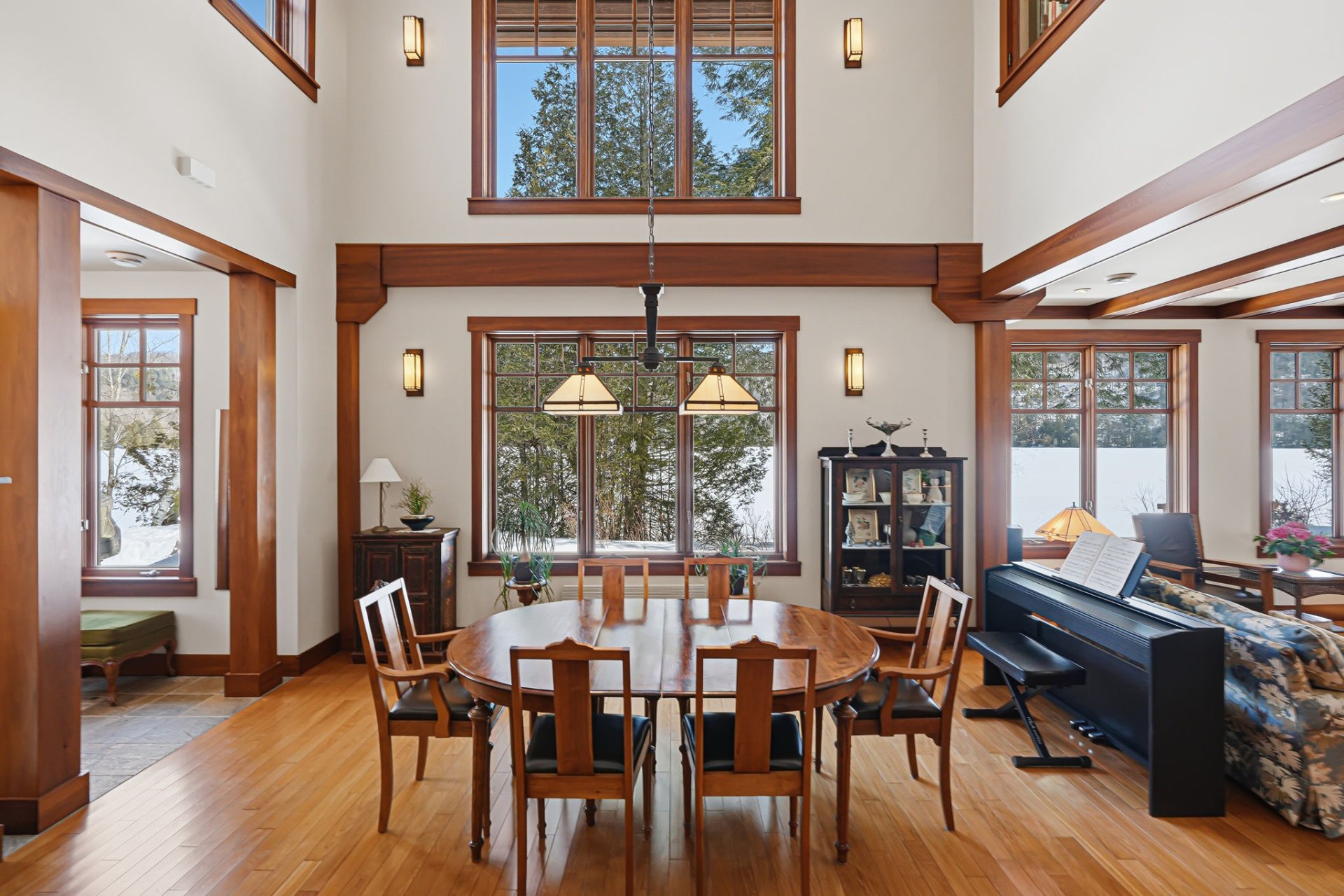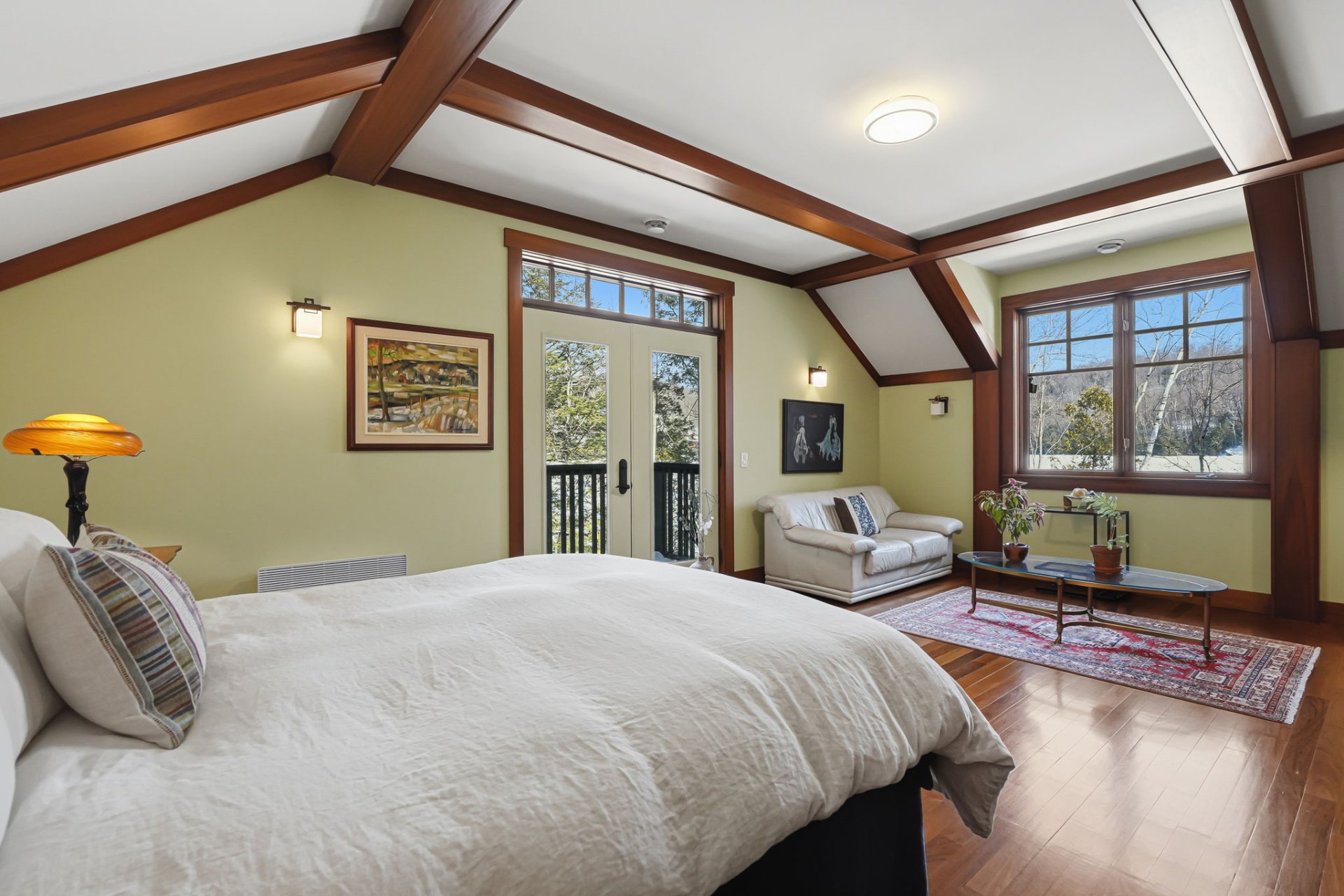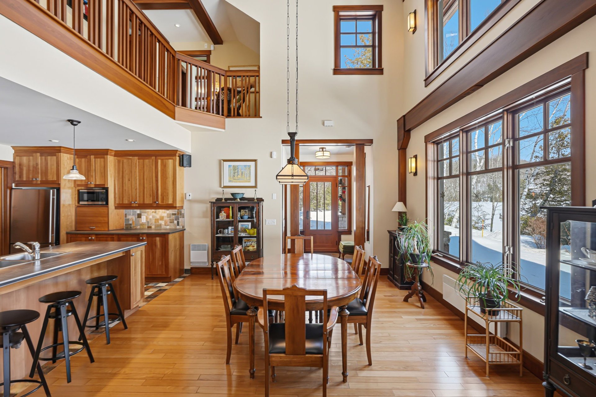 Dès votre arrivée, vous serez séduit par les espaces lumineux et aérés, avec un plafond cathédrale qui crée une sensation d'espace et de liberté. La maison dispose d'un vaste salon avec foyer au bois, d'une élégante salle à manger et d'une cuisine conviviale, idéale pour les repas en famille ou entre amis. Une belle suite parentale, 5 chambres à coucher en tout, ainsi qu'un bureau-bibliothèque apportent confort et fonctionnalité.