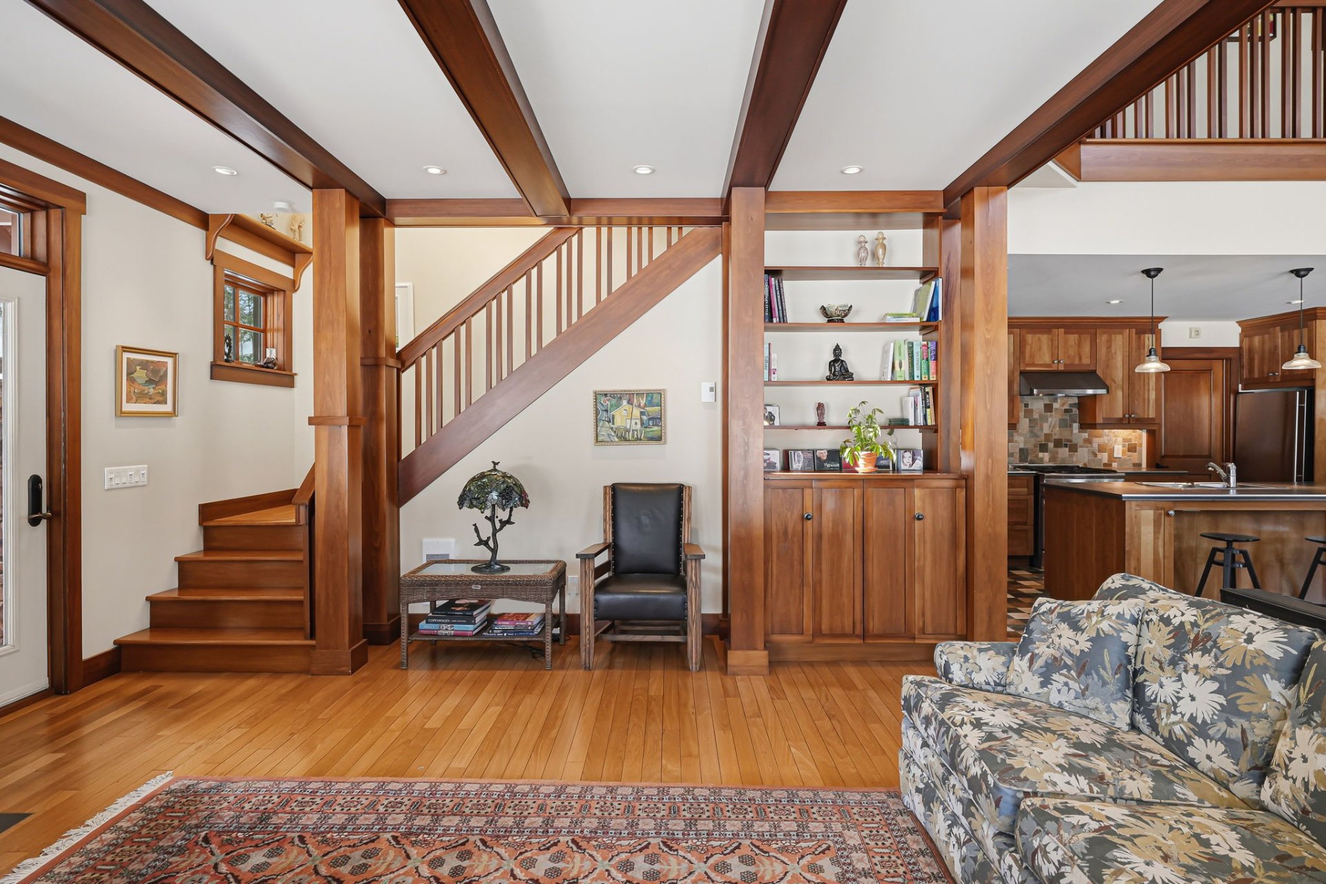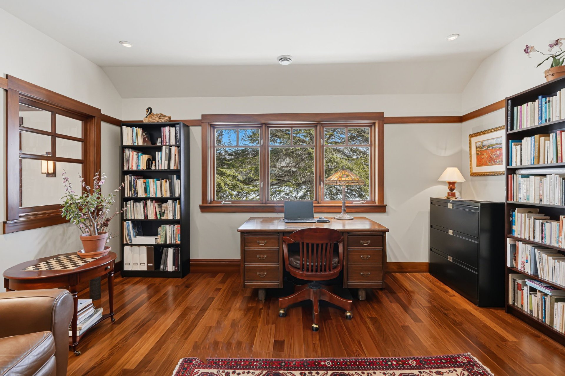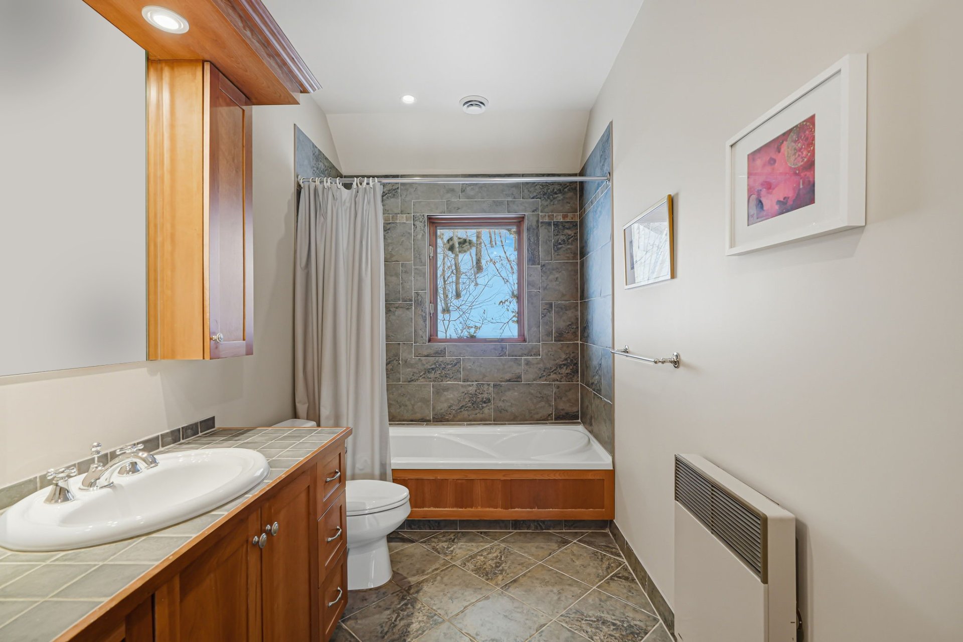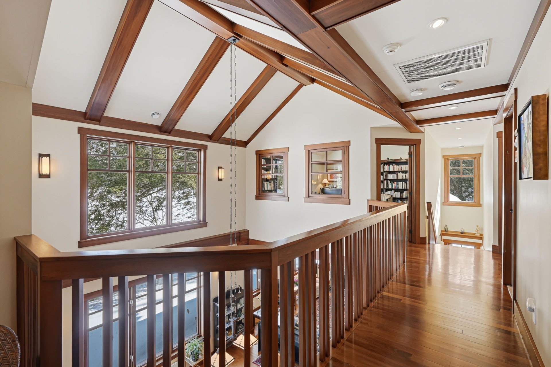 Dès votre arrivée, vous serez séduit par les espaces lumineux et aérés, avec un plafond cathédrale qui crée une sensation d'espace et de liberté. La maison dispose d'un vaste salon avec foyer au bois, d'une élégante salle à manger et d'une cuisine conviviale, idéale pour les repas en famille ou entre amis. Une belle suite parentale, 5 chambres à coucher en tout, ainsi qu'un bureau-bibliothèque apportent confort et fonctionnalité.