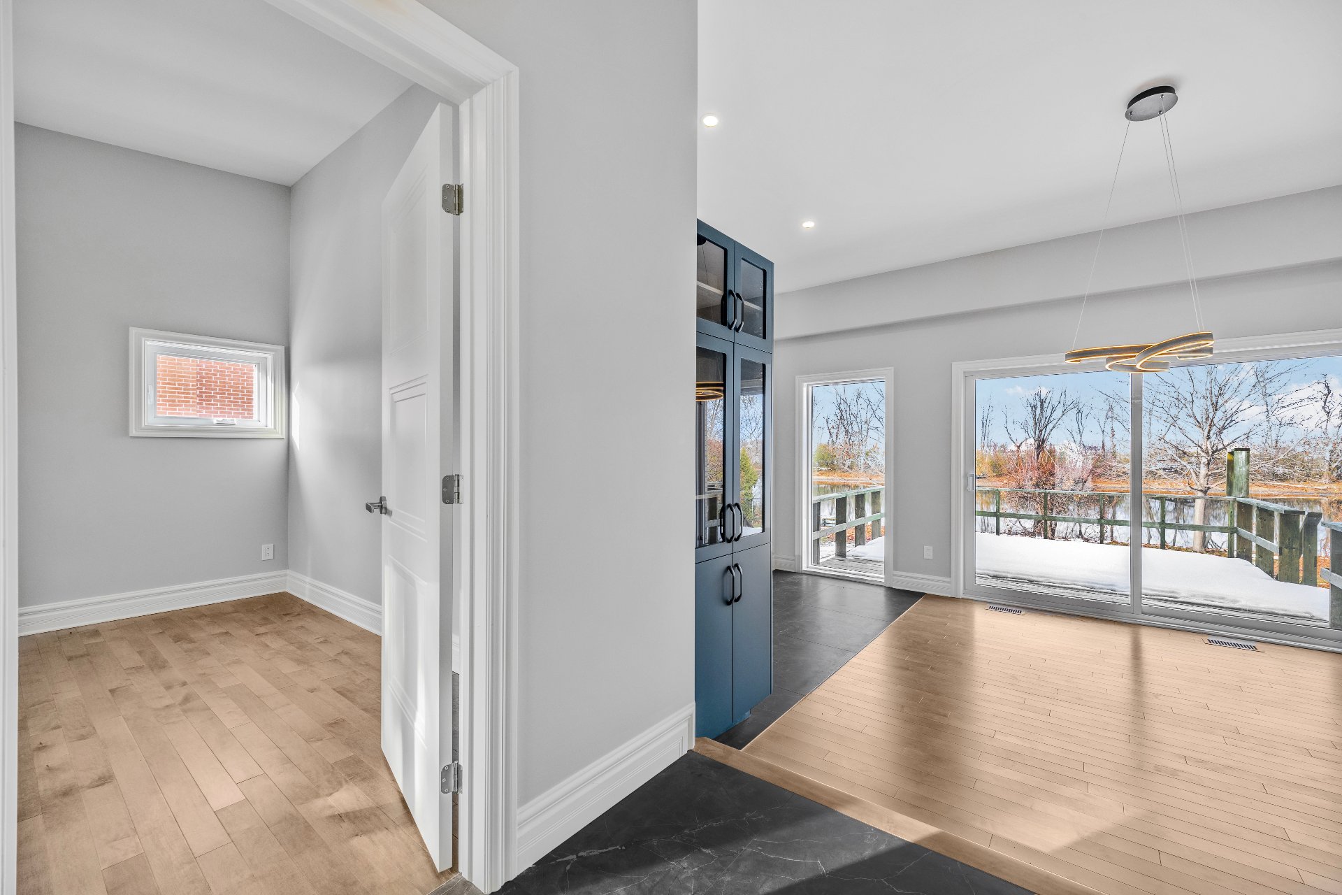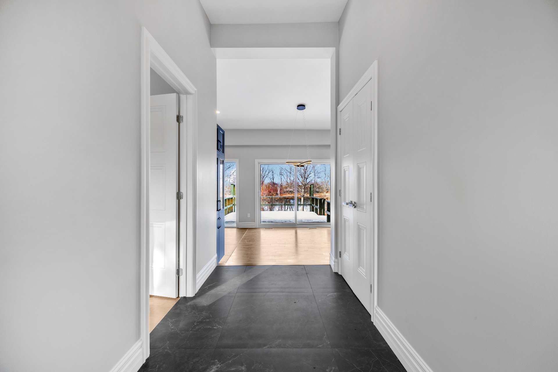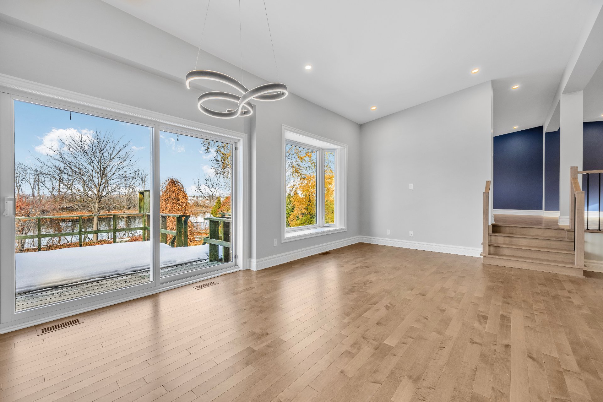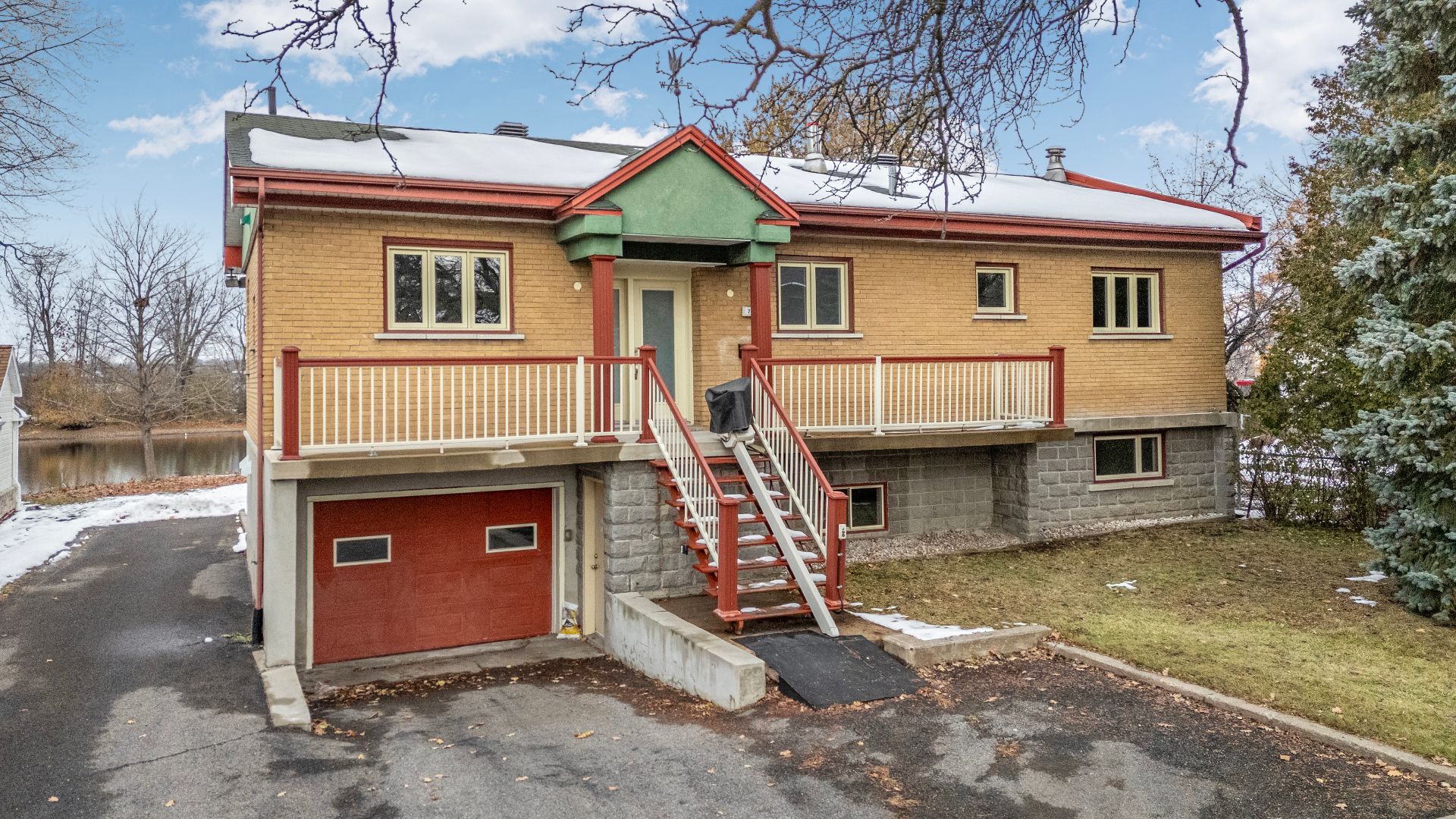 BORD DE L'EAU & HORS ZONE INONDABLE! Site exceptionnel de 10 730pi² voisin d'un parc nature contemplatif (sans jeux bruyants). Intimité totale, aucun voisin à droite. Rénovée 2024, l'aire ouverte lumineuse permet l'ajout facile de 2 chambres (voir projections) et l'extérieur offre un superbe potentiel de relooking à faible coût (voir photos). Rue Gouin à sens unique, très tranquille. À 2 min du pont A25, 5 min Anjou, 7 min Laval. 6 stationnements. La campagne à la ville.