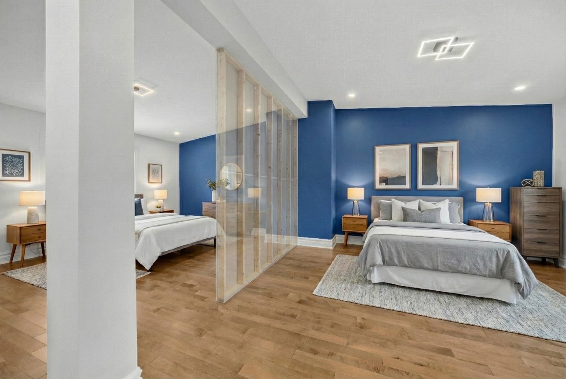La Maison et le Potentiel (Intérieur et Extérieur) : L'intérieur vous accueille dans une magnifique aire ouverte, moderne et lumineuse. Cet espace offre une flexibilité rare : bien que conçu à aire ouverte, il est possible d'y aménager facilement deux chambres fermées selon vos besoins (voir les projections d'aménagement dans les photos). 3 chambres à l'étage possible, 2 salle de bain complète.