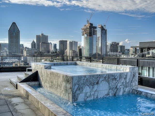 * Les résidents ont accès à deux superbes piscines à débordement sur le toit, des loggias, un espace barbecue, à un coin repas et à une terrasse ensoleillée avec vue sur le canal, la ville et les montagnes.