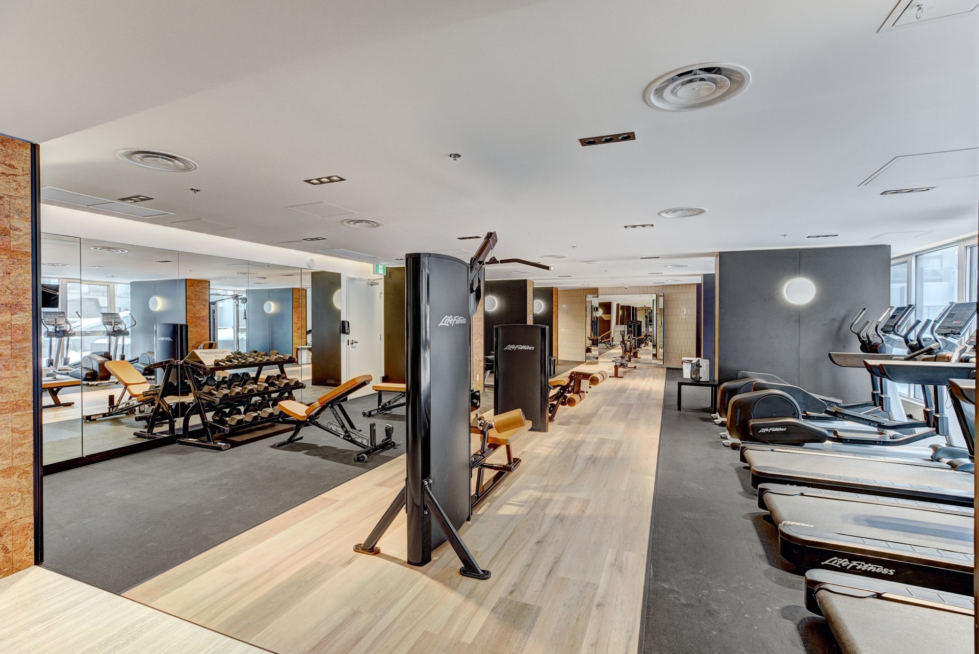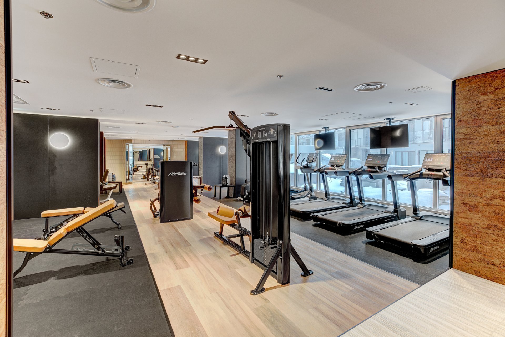 * Au 2e étage, les résidents peuvent profiter d'un spa intérieur et extérieur, de saunas, d'un espace détente, de bassins d'eau tempérée, d'une salle d'exercice et d'une cour intérieure privée sur l'ensemble du bâtiment.