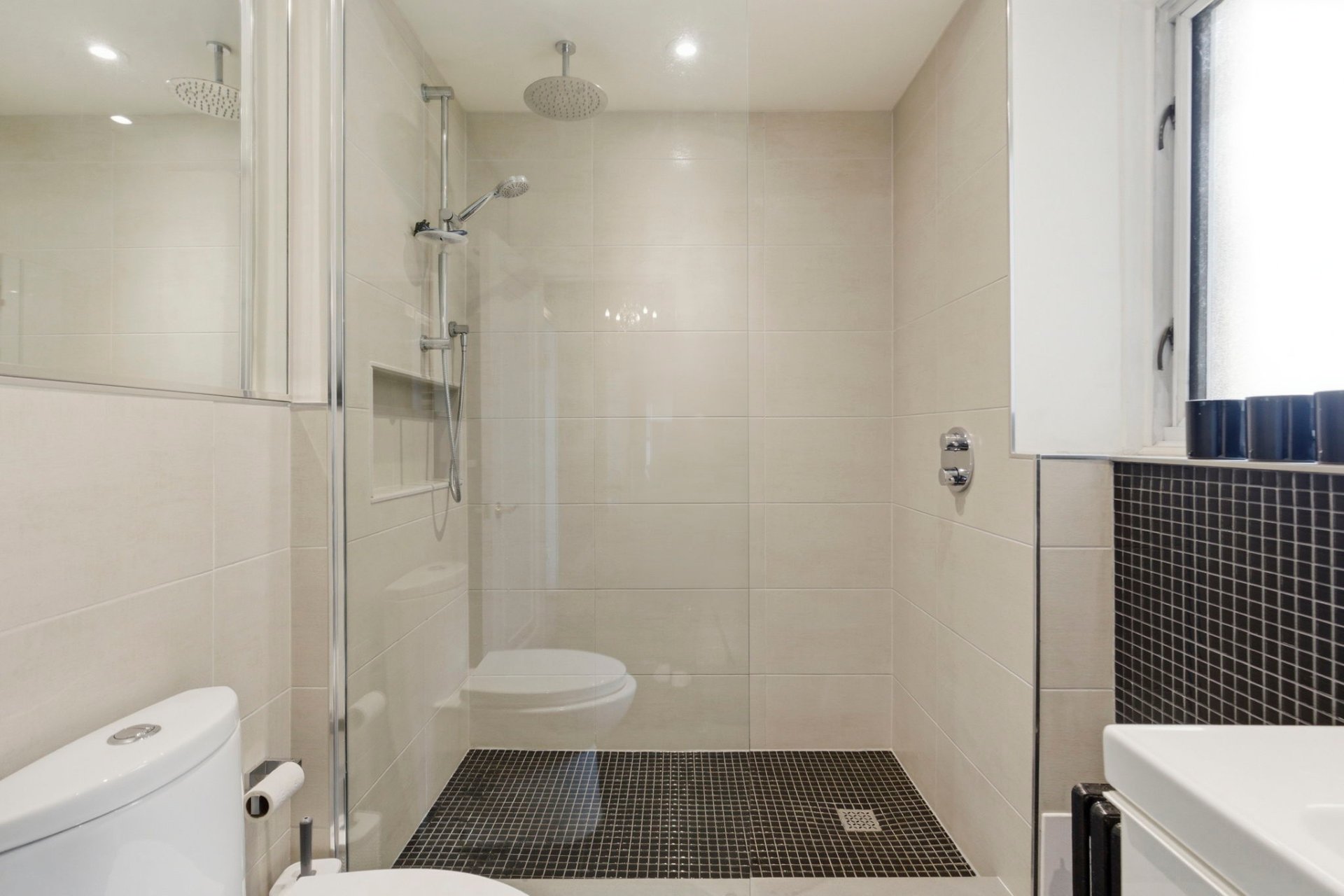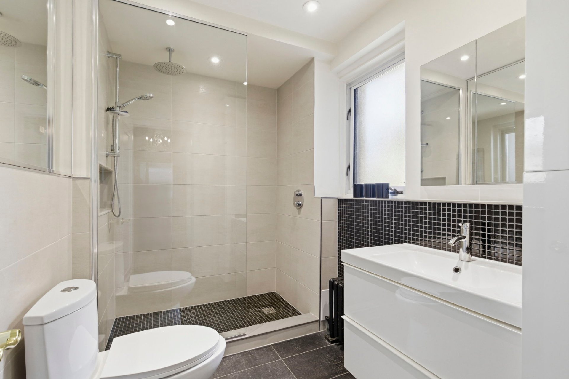 Salles de bain : Salle de bain principale moderne avec douche vitrée indépendante (rénovée en 2022) et salle d'eau design additionnelle pour les invités.