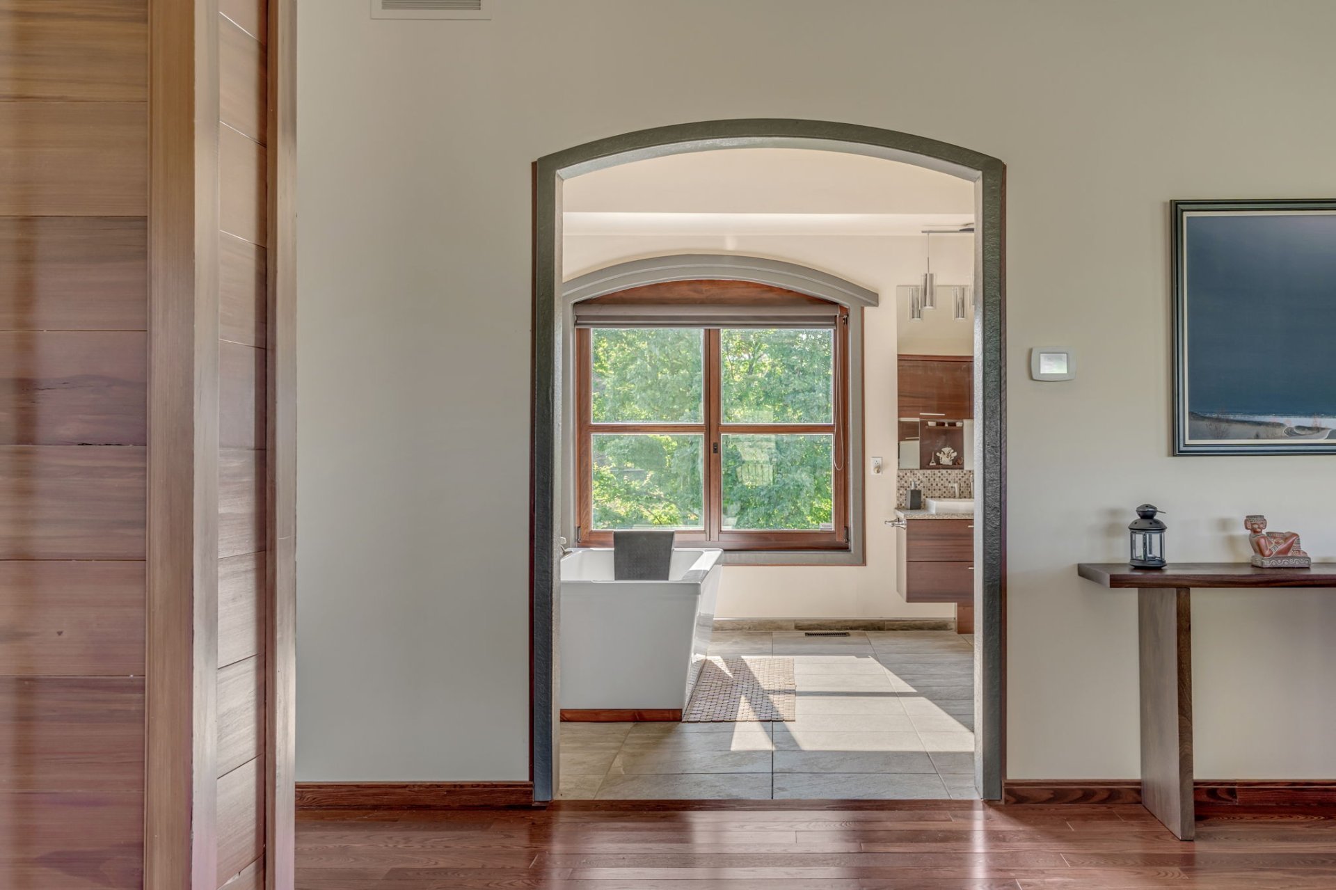 - Portes et fenêtres sur mesure en acajou africain de **Prodomo Montréal**, conçues avec le bois du propriétaire.