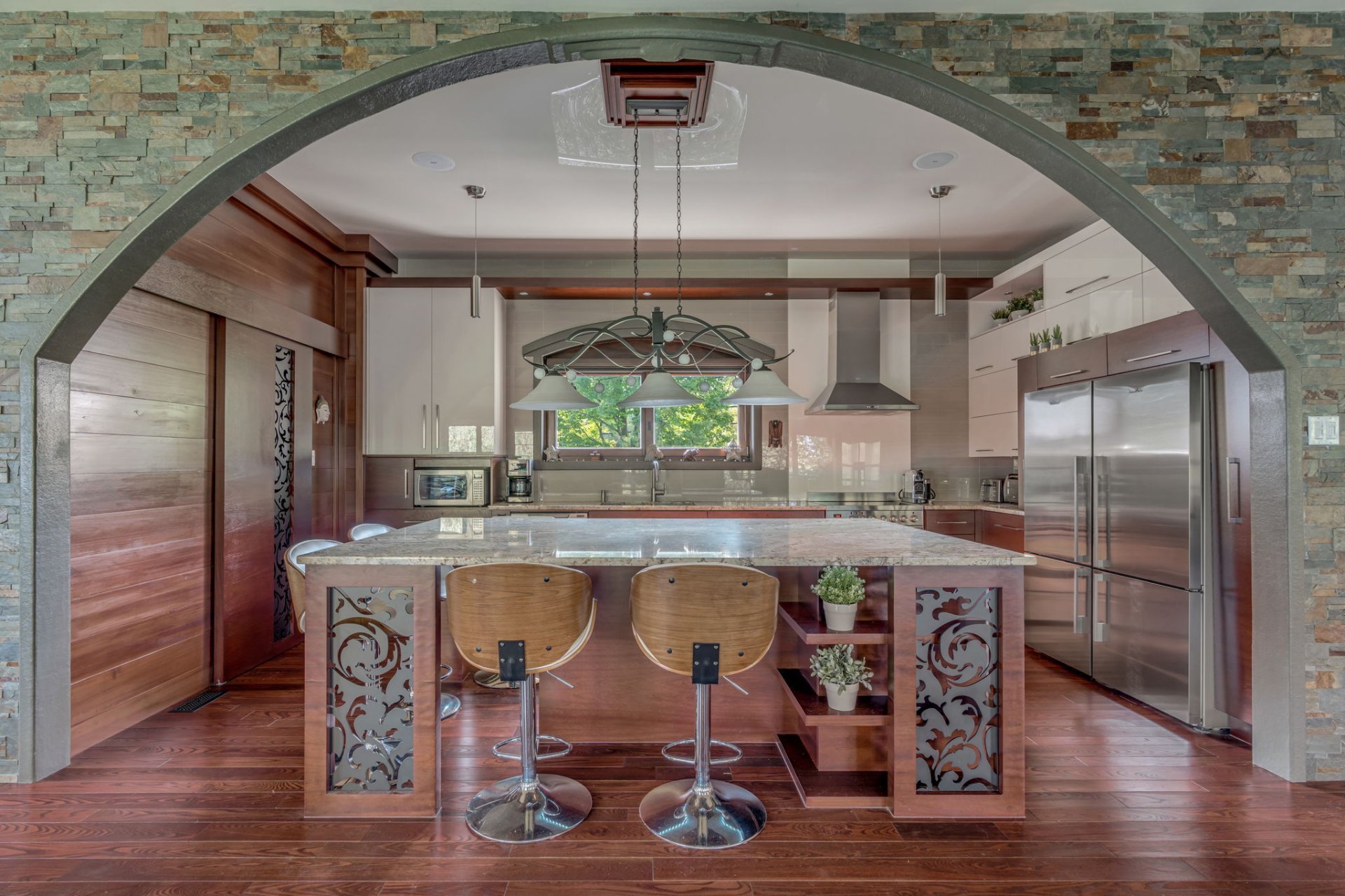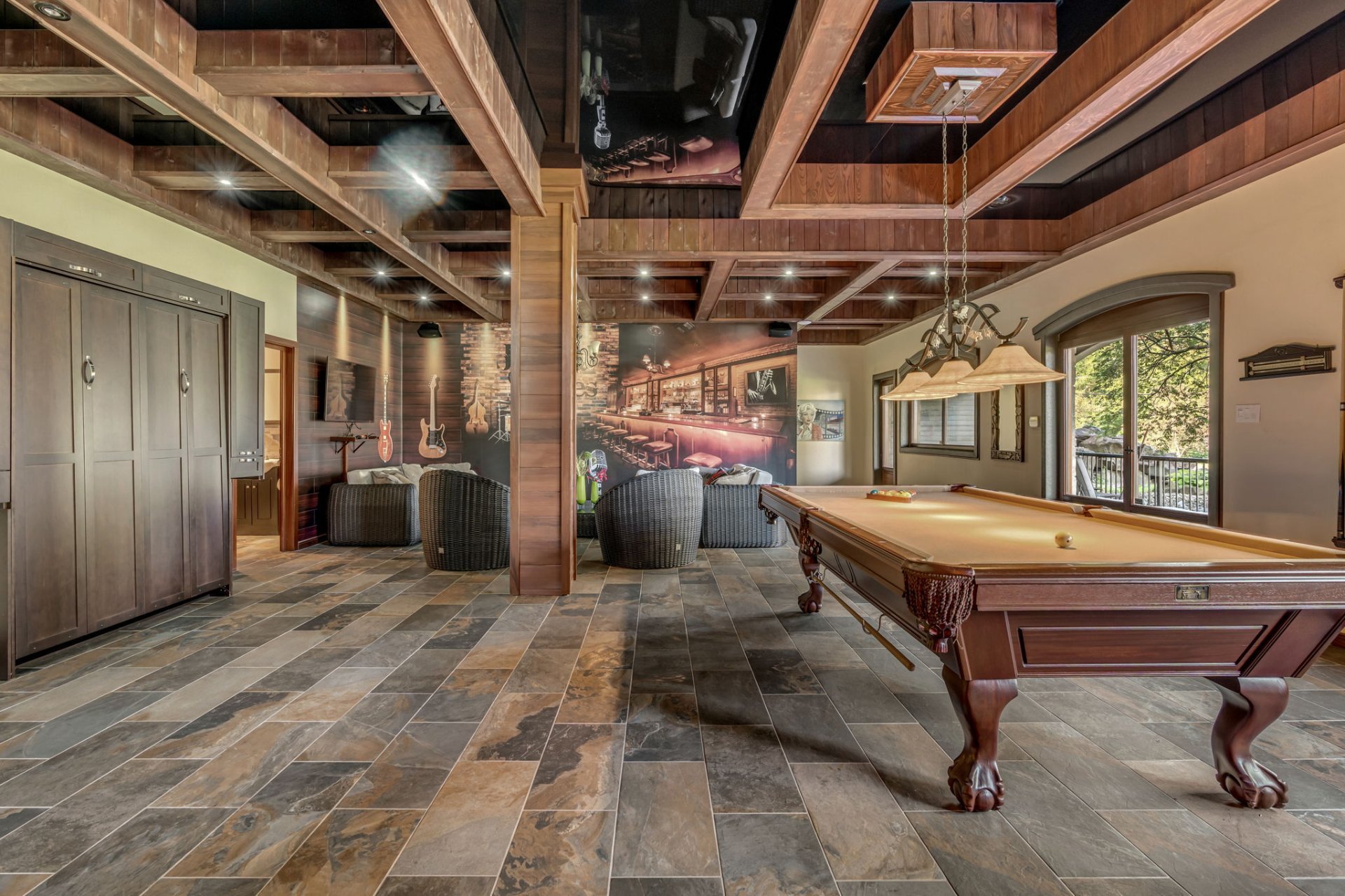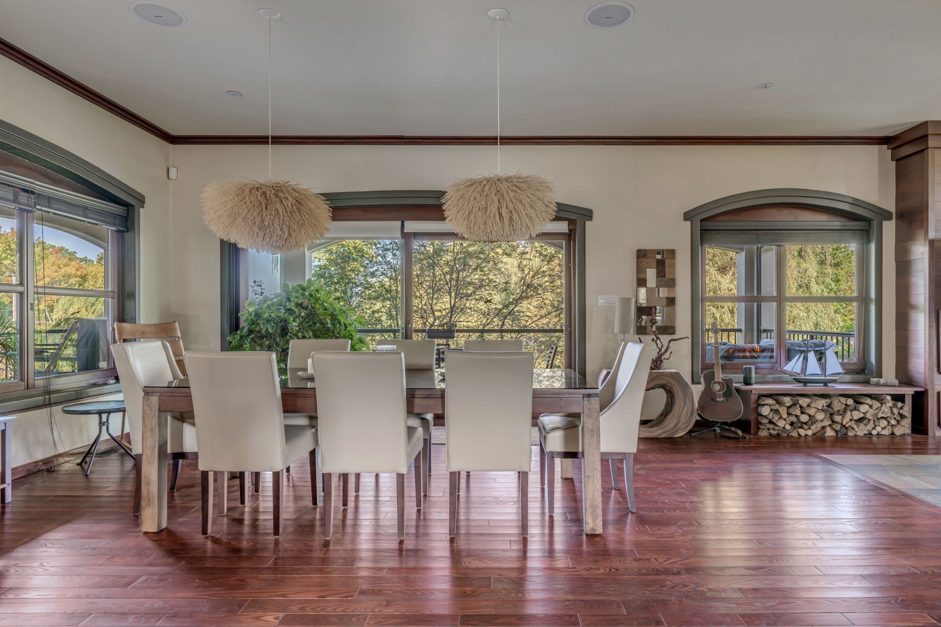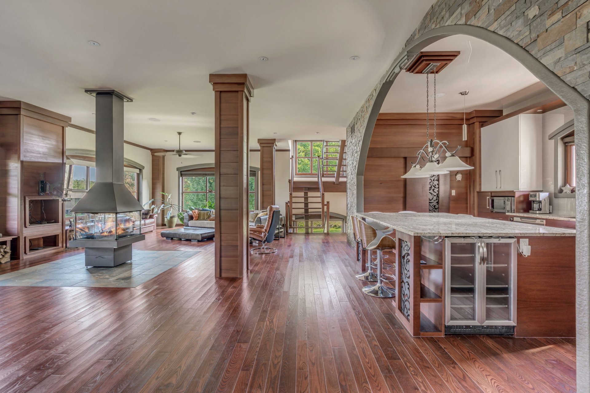 - Habillage de fenêtre, ouvre-porte de garage électrique, luminaires, hôtte, poêle, réfrigérateur, lave-vaisselle, cellier intégré, 2 bancs ilots de cuisine, foyer au bois et au gaz, 2 supports à tv, 5 bancs de bar au sous-sol.