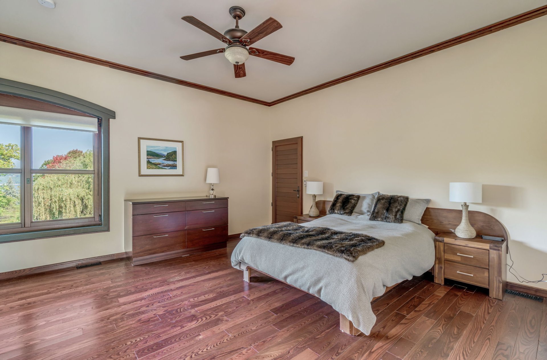 - Suite parentale avec terrasse privée, vue panoramique sur le Fleuve et mobilier intégré.