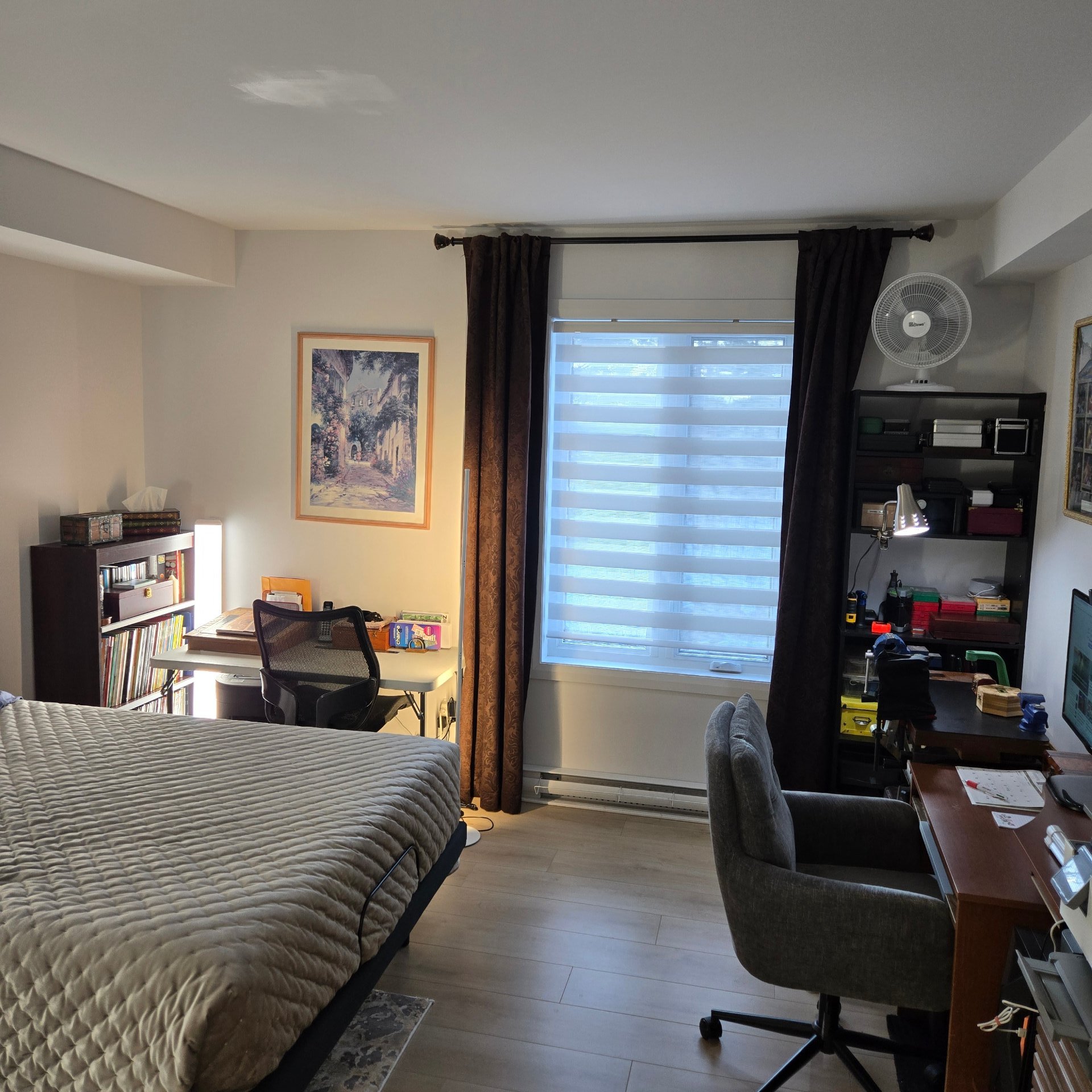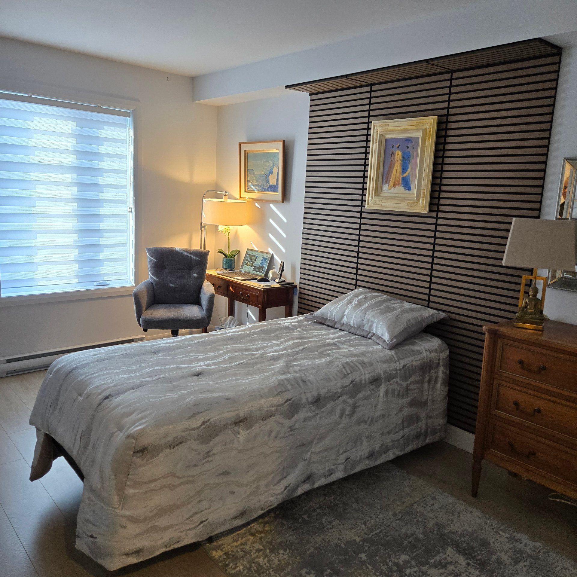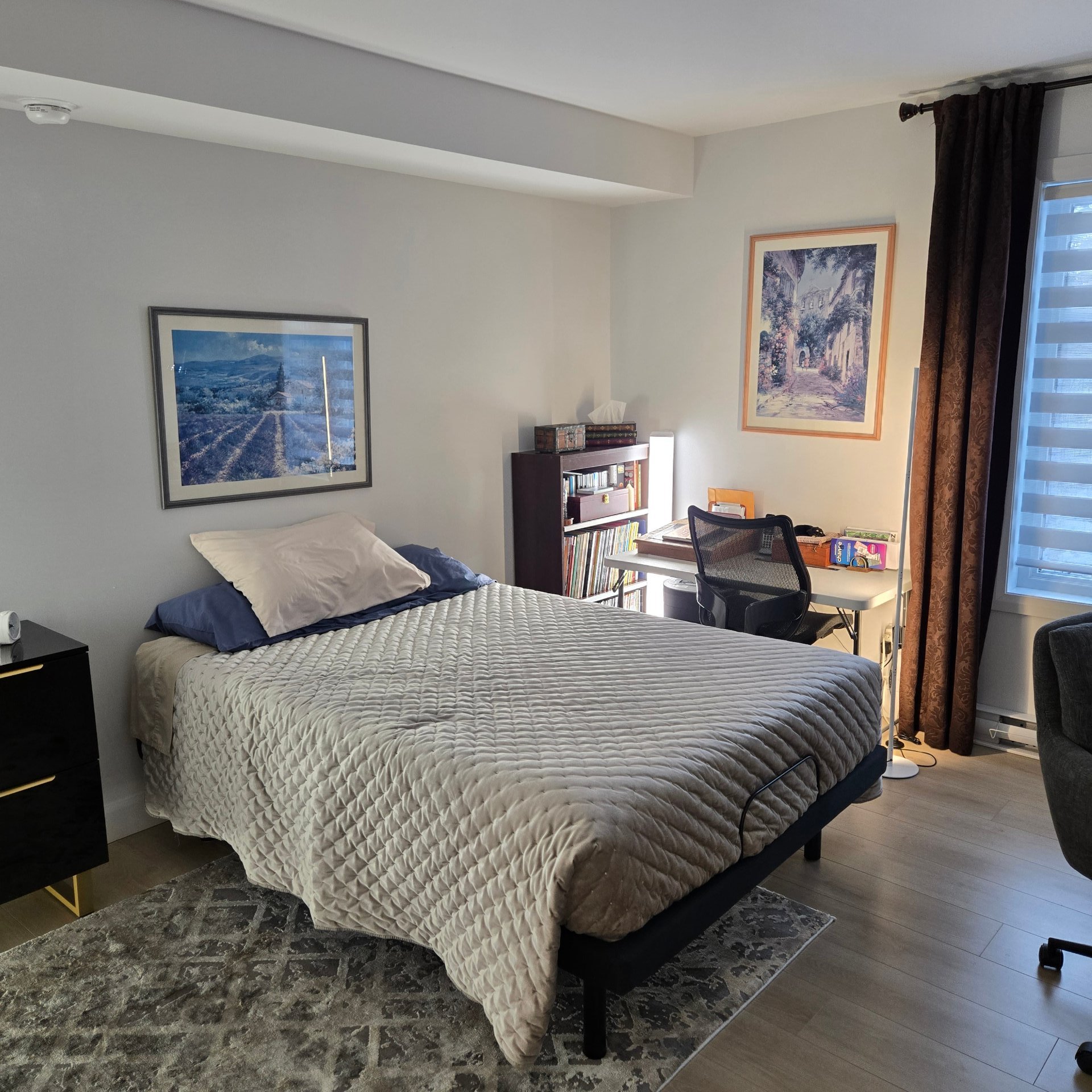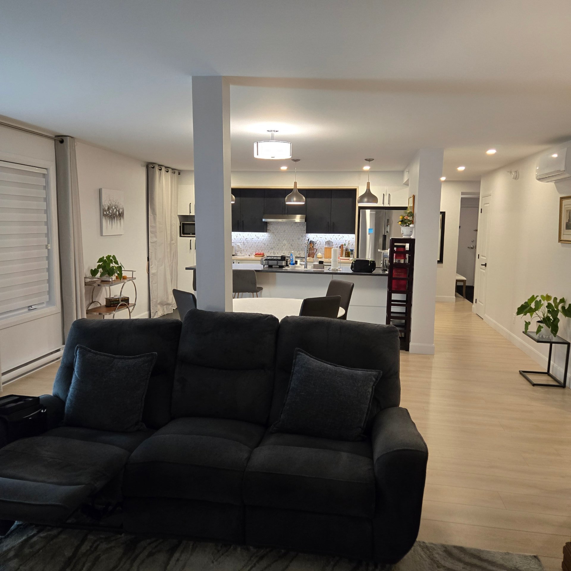 Cession de bail -- Superbe 4 ½ de 1 281 pi² dans le secteur recherché de Saint-Romuald, offrant un cadre de vie élégant avec un vaste balcon de coin donnant sur un boisé -- aucun vis-à-vis. Stationnement intérieur inclus, avec aire de lavage et rangement sécuritaire pour vélos. Possibilité de conserver des items de qualité tels que rideaux et stores sur mesure. Espaces communs d'exception : lounge sophistiqué, belvédère panoramique, terrasse aménagée, sentiers piétonniers, aire de jeux et jets d'eau pour enfants. 1er mois gratuit. Visite virtuelle disponible sur le site de Logisco (recherche : Amalgam).