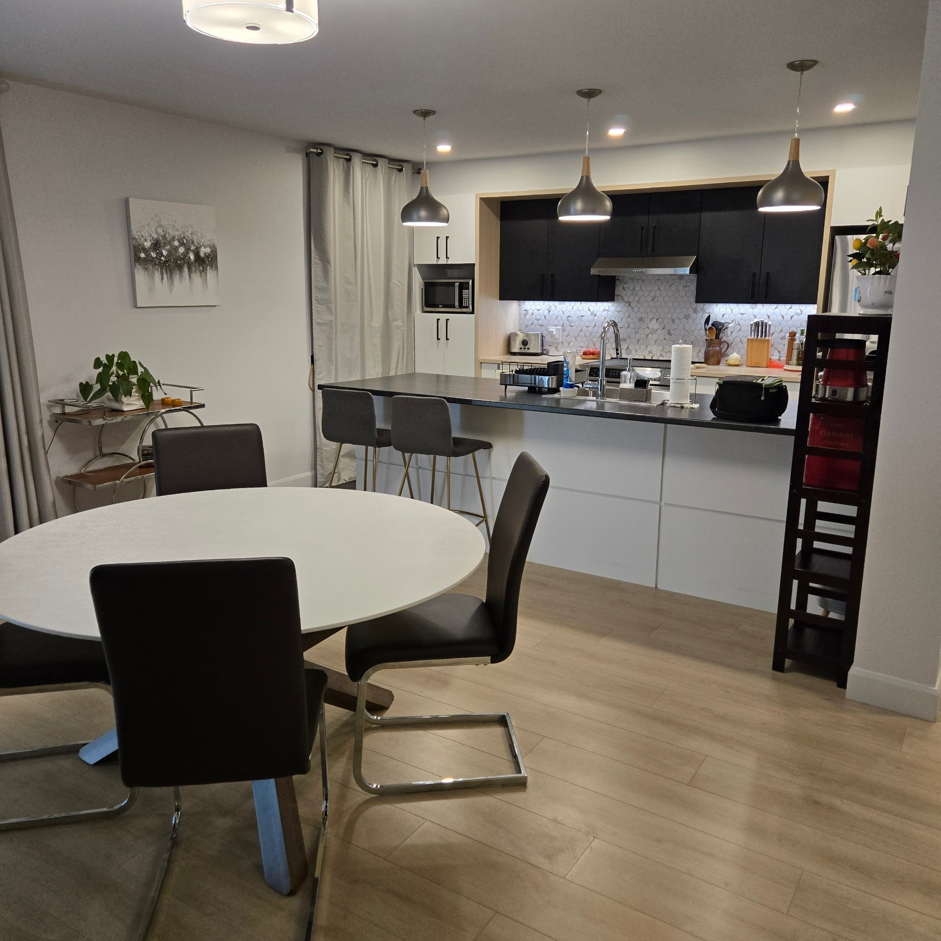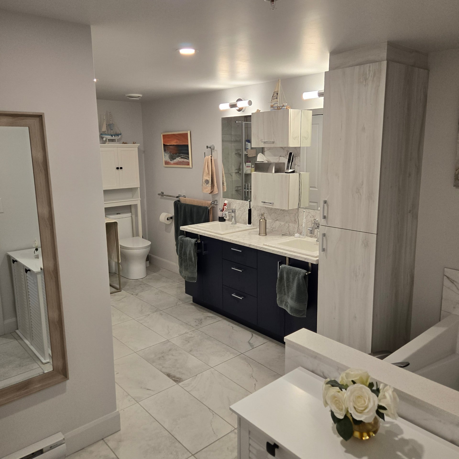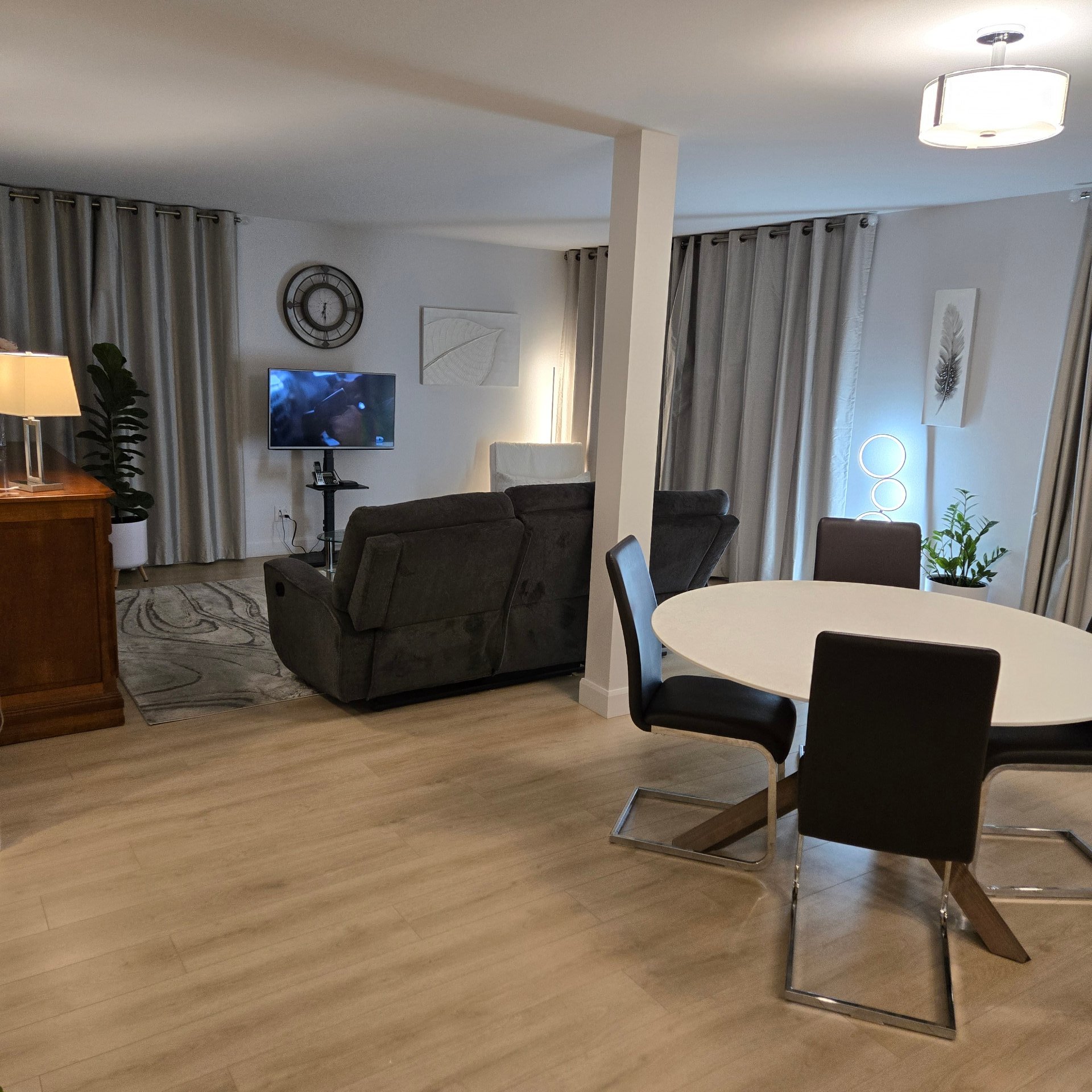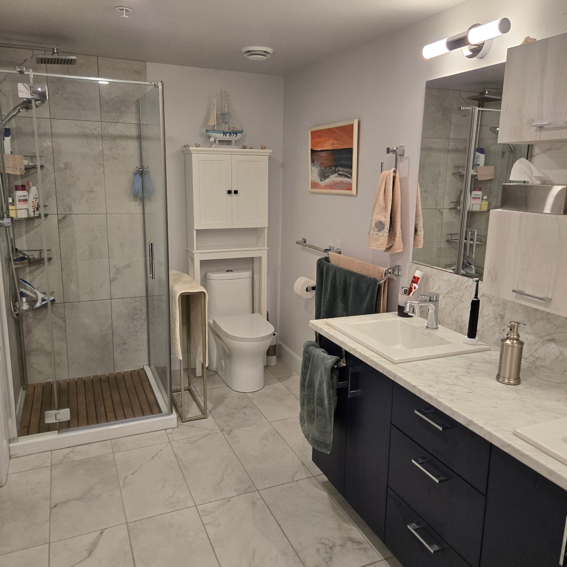 Cession de bail -- Superbe 4 ½ de 1 281 pi² dans le secteur recherché de Saint-Romuald, offrant un cadre de vie élégant avec un vaste balcon de coin donnant sur un boisé -- aucun vis-à-vis. Stationnement intérieur inclus, avec aire de lavage et rangement sécuritaire pour vélos. Possibilité de conserver des items de qualité tels que rideaux et stores sur mesure. Espaces communs d'exception : lounge sophistiqué, belvédère panoramique, terrasse aménagée, sentiers piétonniers, aire de jeux et jets d'eau pour enfants. 1er mois gratuit. Visite virtuelle disponible sur le site de Logisco (recherche : Amalgam).