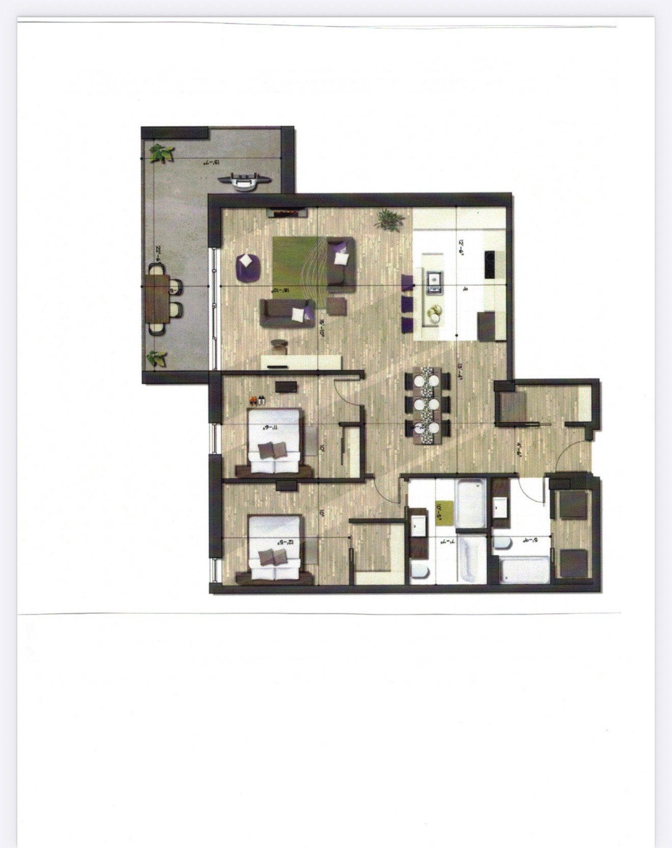 -Plancher en béton de 9 pouces avec membranes acoustique sous la porcelaine et les parquets de bois.