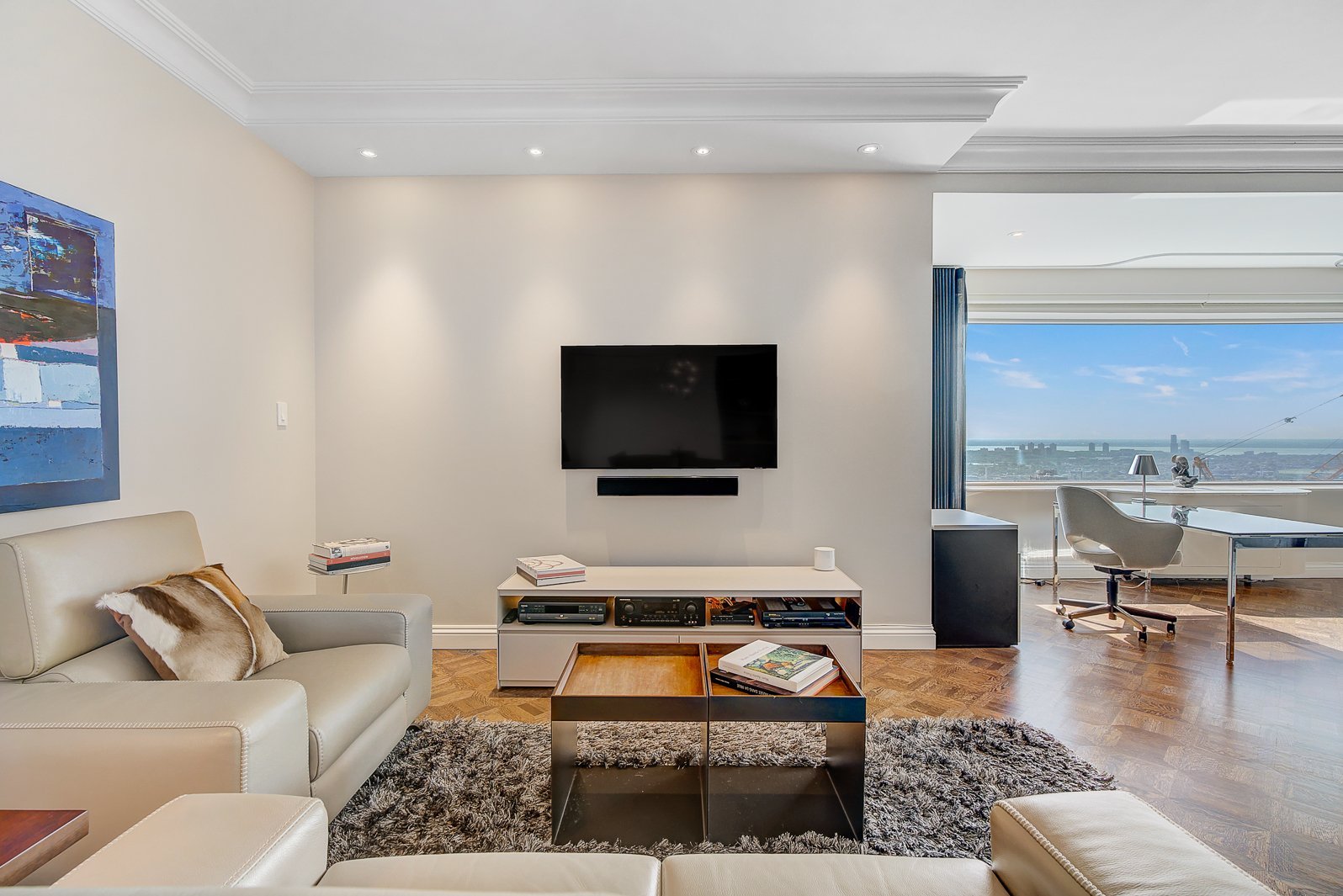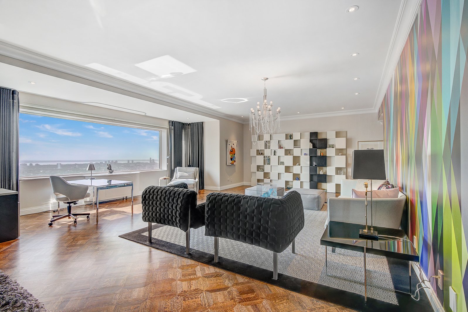 Spectaculaire appartement haut perché dans l'iconique Port-Royal, au coeur du Golden Square Mile. Vaste pièce de vie baignée de lumière grâce à sa généreuse fenestration et sa vue dégagée sur la ville. Alliance élégante entre cachet classique & design contemporain, matériaux luxueux et finitions haut de gamme. Cuisine d'inspiration «Mid-Century» récemment rénovée, 3 chambres avec SDB privée, air central, deux garages et rangement. Le Port-Royal; un immeuble avec services hôteliers 5 étoiles pour une vie luxueuse et sécuritaire dans le Golden Square Mile, près des meilleurs restaurants, universités, grands hôpitaux, musées & galeries d'art.