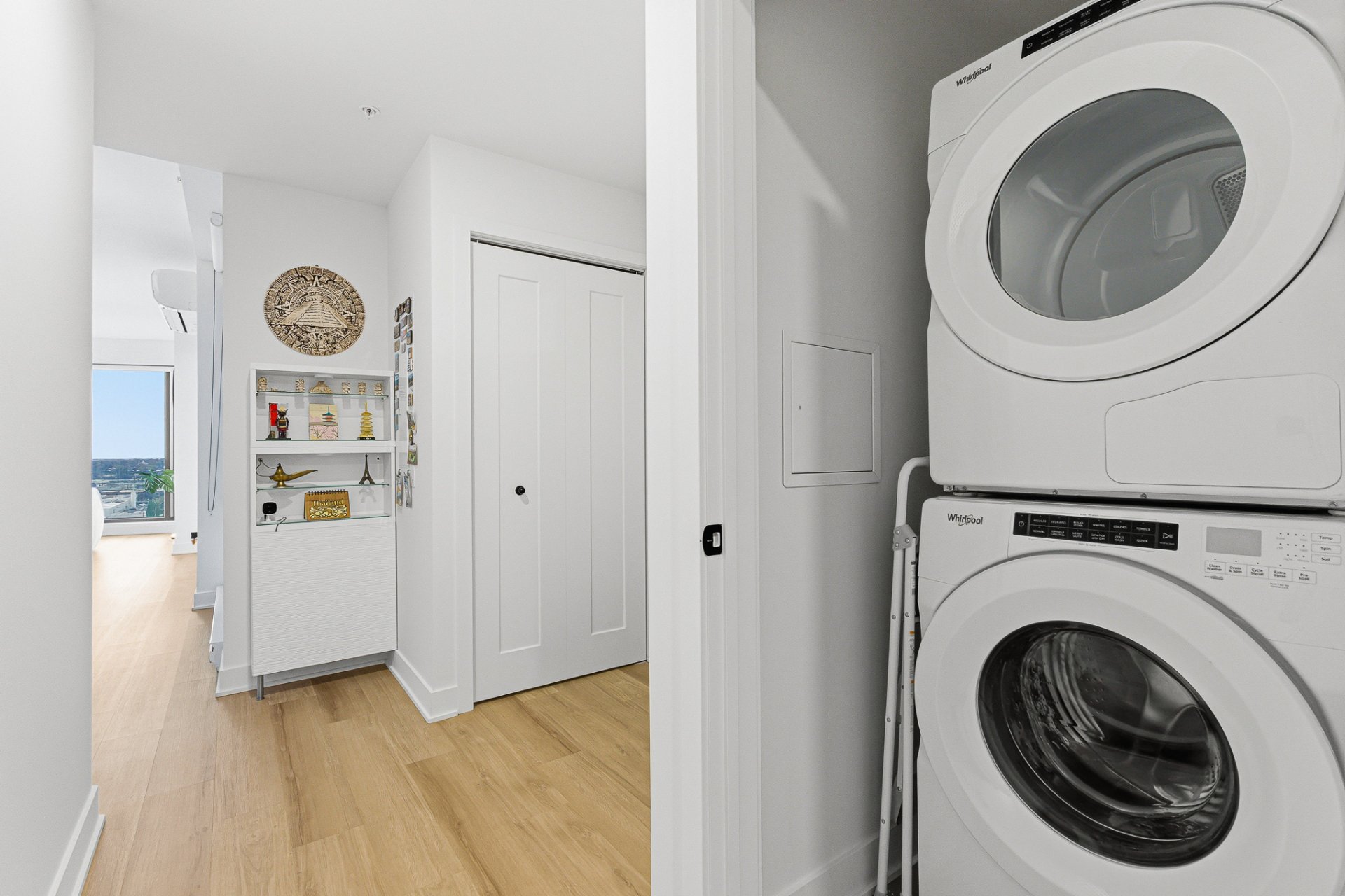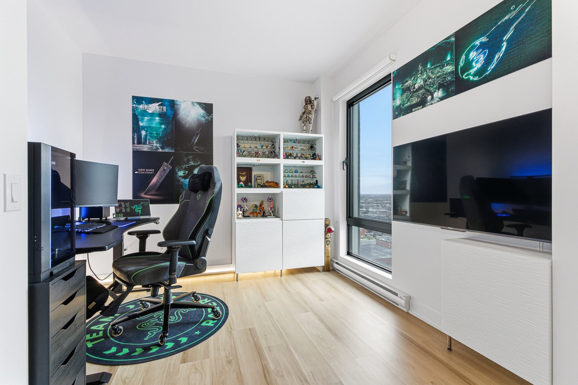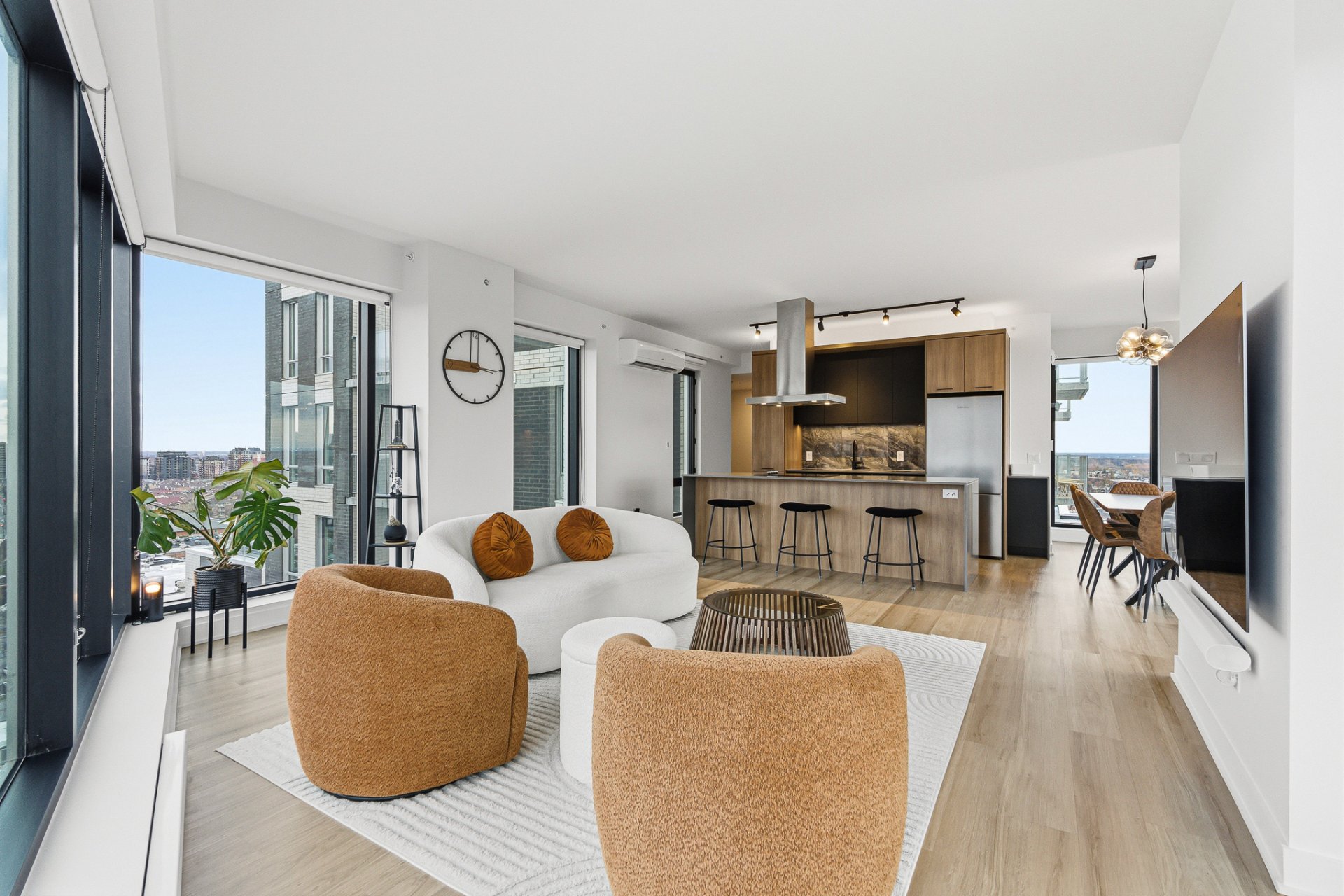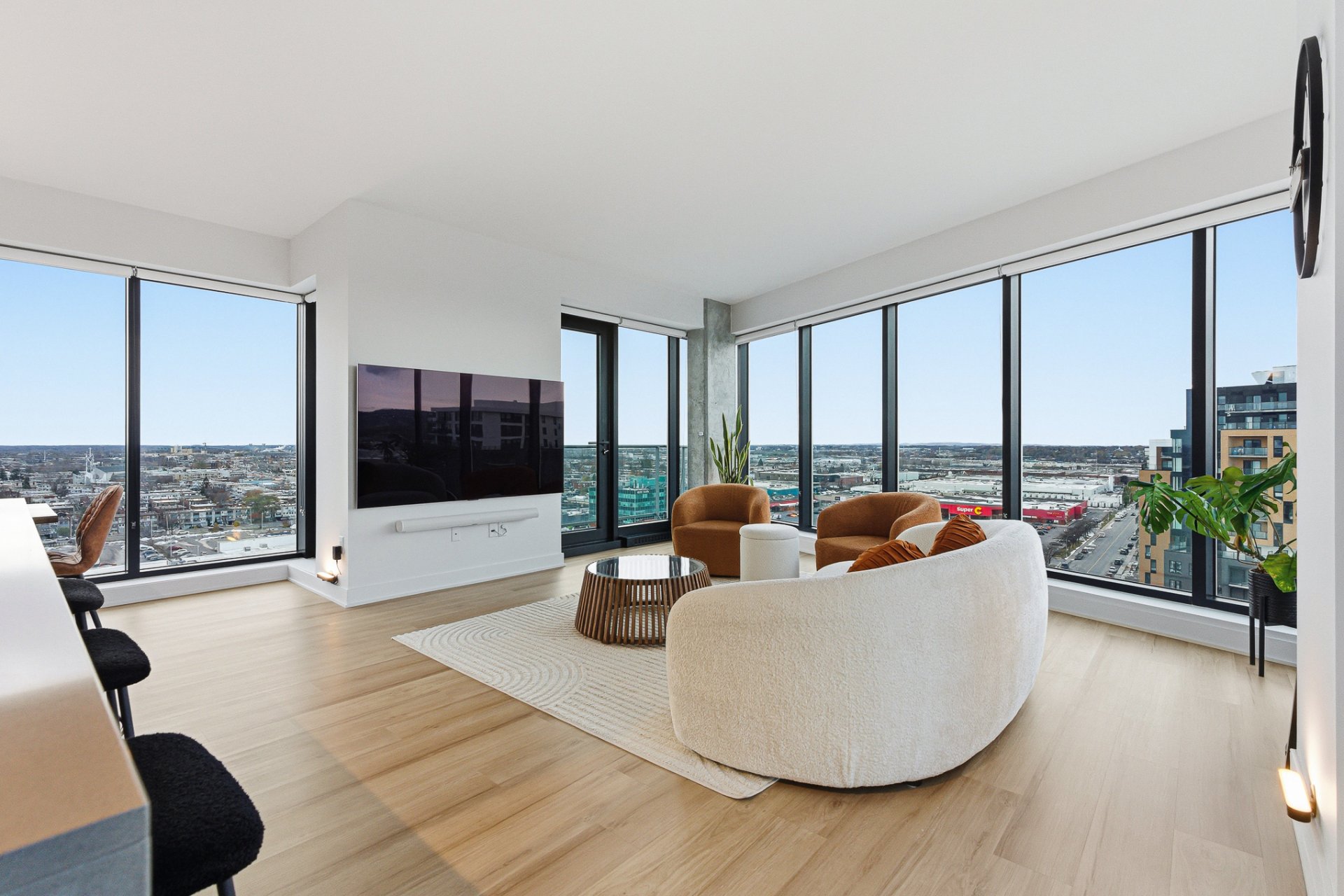 FLEMING SUR LE PARC-Superbe condo de coin de 2 C.À.C et 2 S.D.B, offrant une luminosité abondante grâce à ses grandes fenêtres pleine hauteur qui dévoilent de magnifiques vues dégagées sur le parc et les environs. L'aire de vie ouverte se distingue par ses finitions contemporaines, sa cuisine moderne bien équipée et son atmosphère chaleureuse. Situé au coeur du recherché Quartier Angrignon à LaSalle, à deux pas du parc, des sentiers, des commerces, du métro et des services, l'immeuble propose également des commodités haut de gamme telles qu'un gym, des espaces communs raffinés et une une terrasse sur le toit. Garage & rangement inclus.