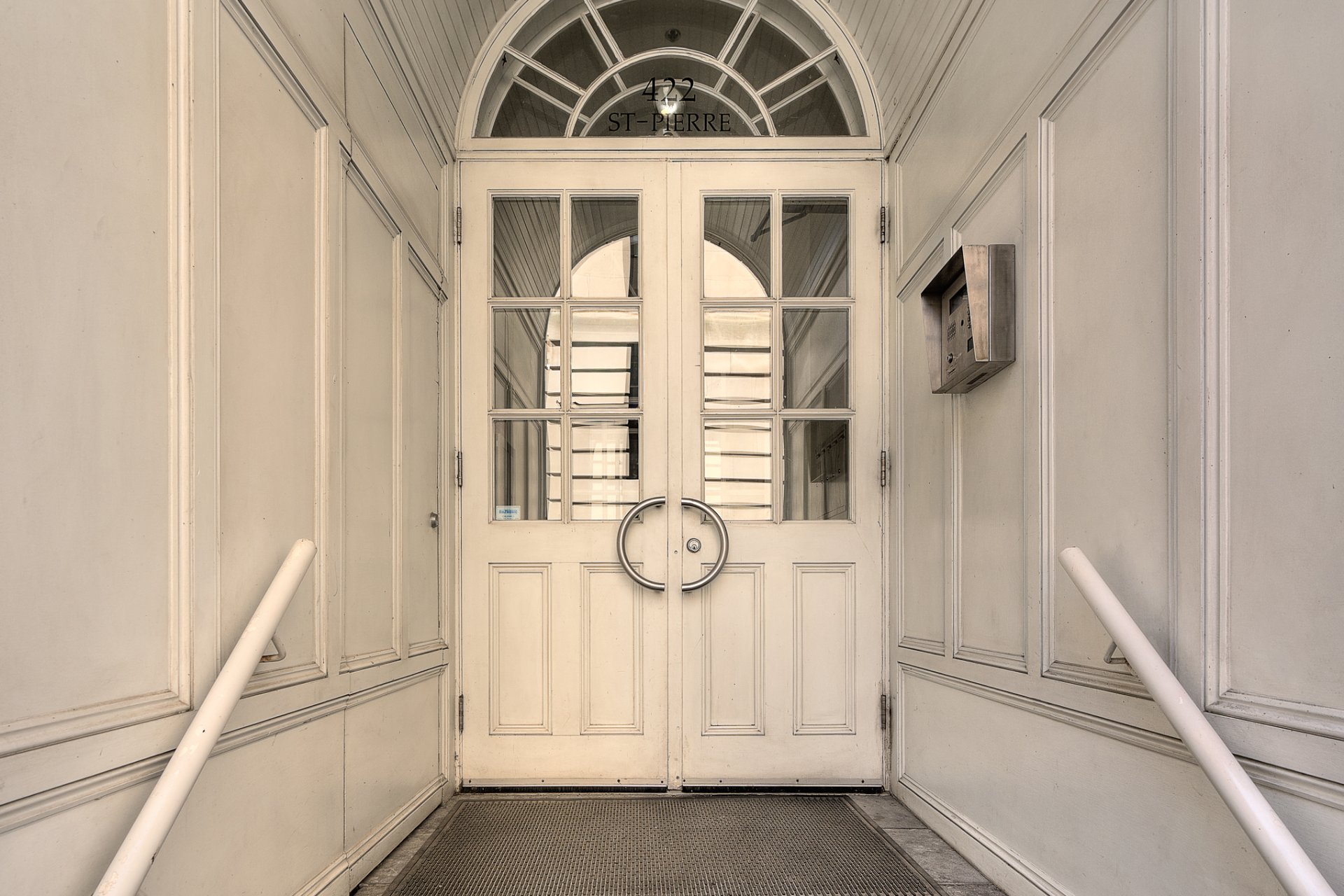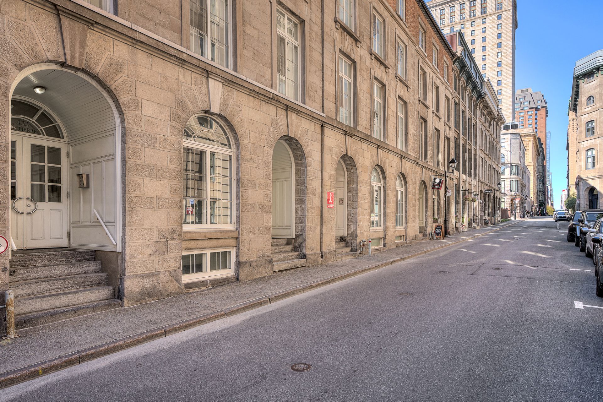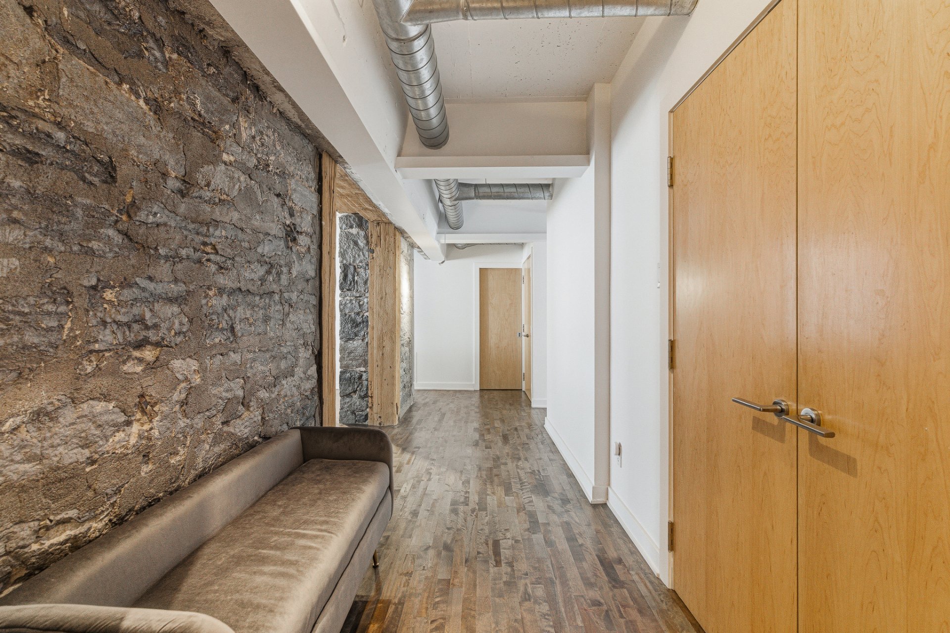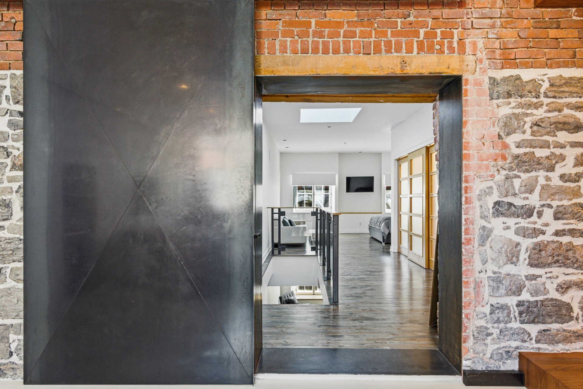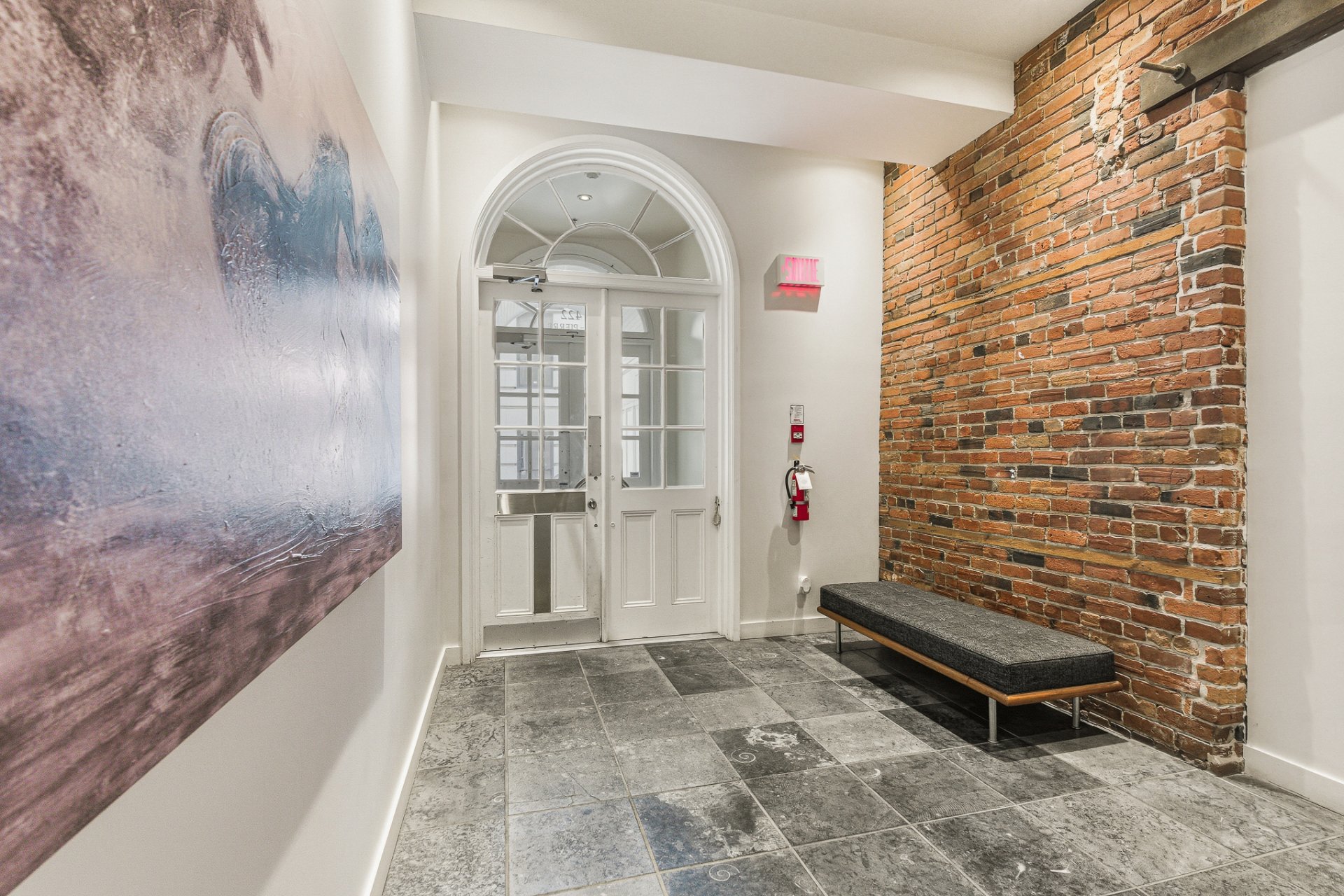 * Bâtiment historique avec façade en pierre et belle entrée voûtée avec emplacement privilégié dans le Vieux-Montréal.
