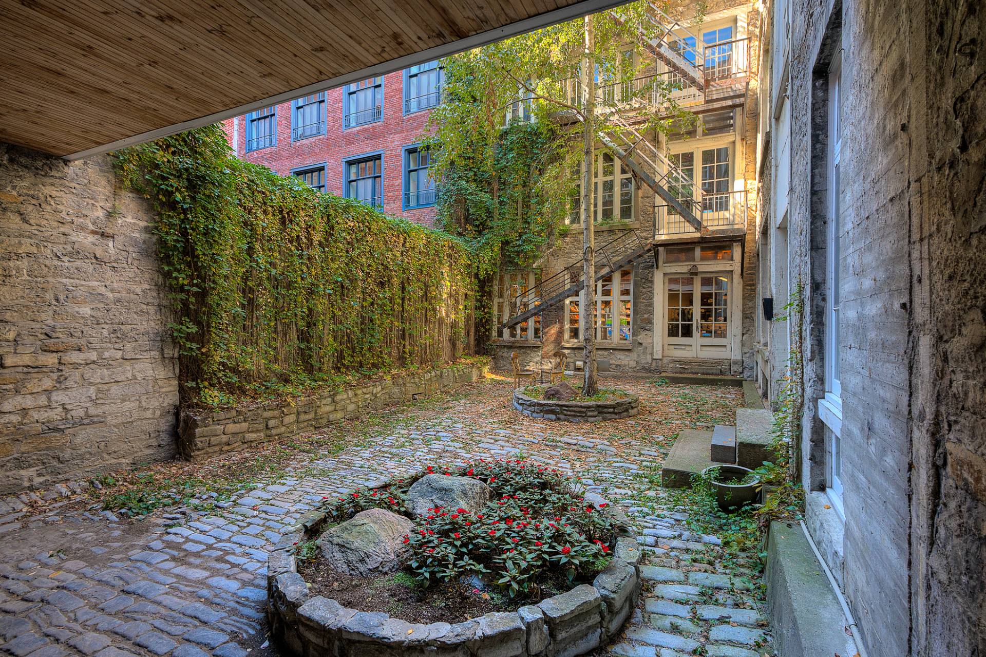 *Réputée pour sa fenestration unique, ses colonnes de bois d'origine, ses murs de pierre et de brique et sa cour intérieure avec végétation luxuriante