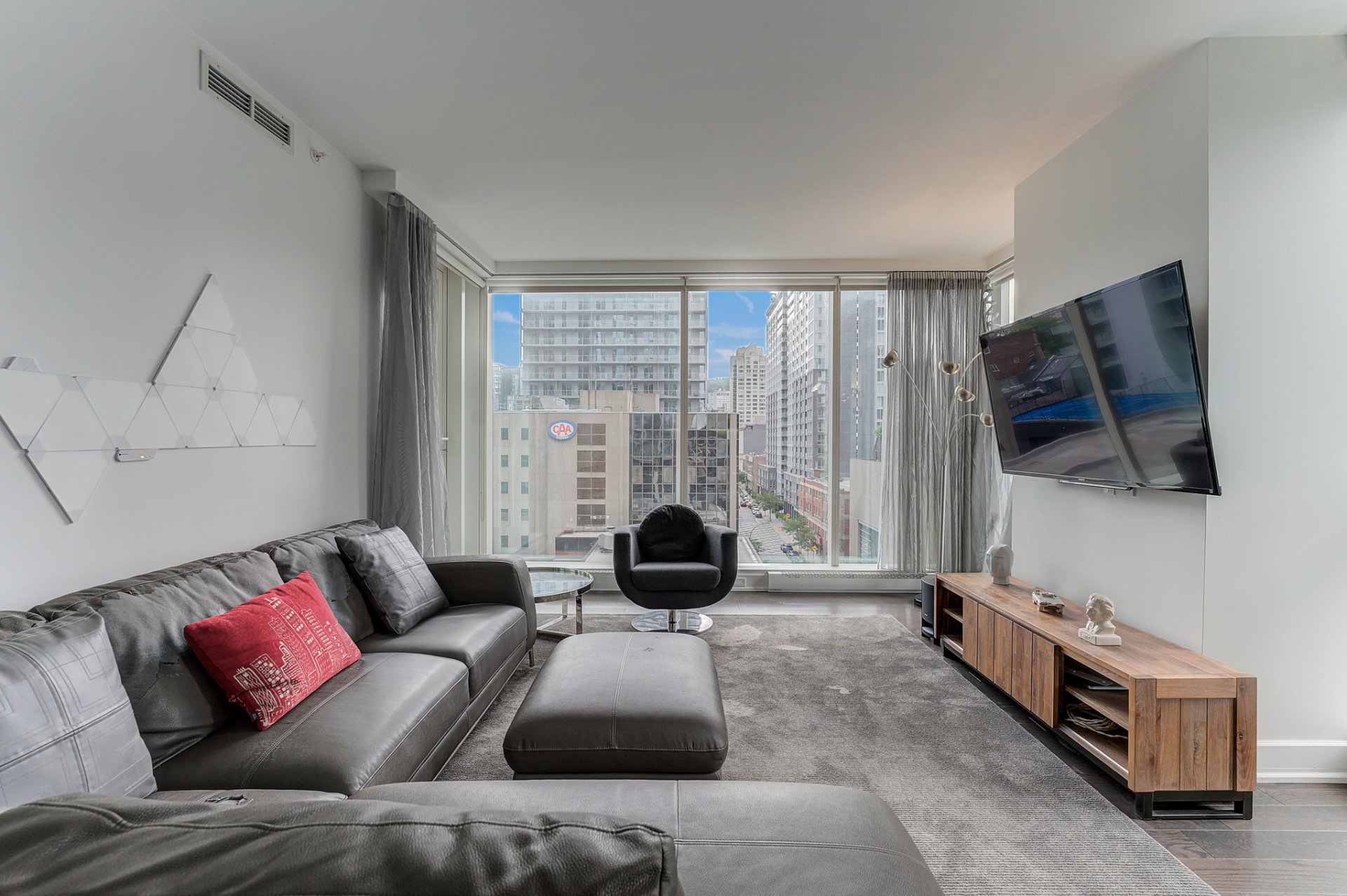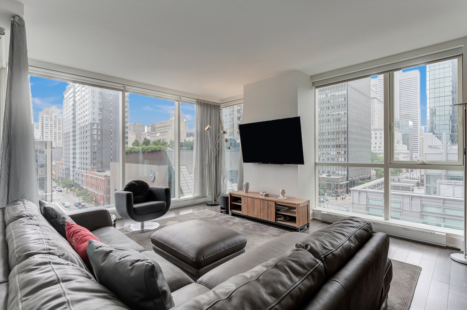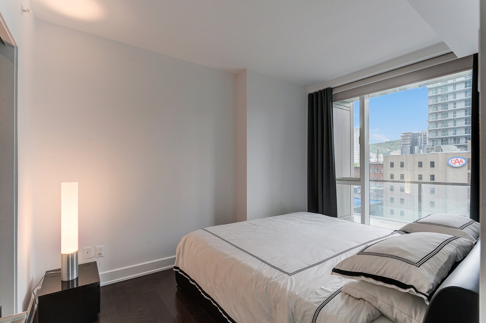 Luxurious 5th-floor condo in the Rocabella building, situated in the Golden Square Mile. This unit offers panoramic downtown views, an open concept living space, 2 bedrooms, and 2 bathrooms. It's close to shops, dining, universities, and metro stations. The building provides 24/7 security with a comprehensive camera system. Amenities include a fitness room, pool, yoga studio, and more. Includes garage and locker, blending luxury, security, and convenience in a prime location.