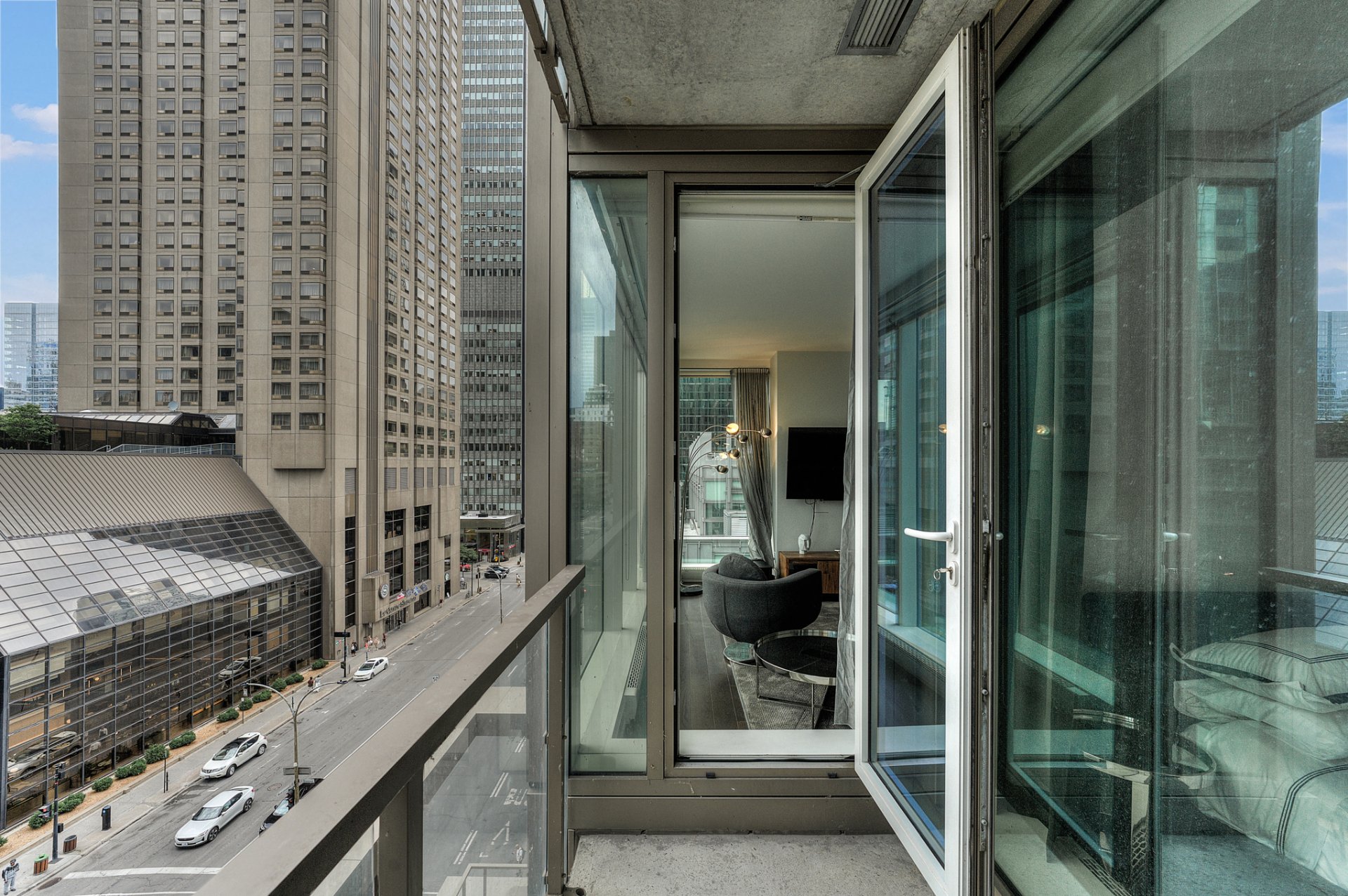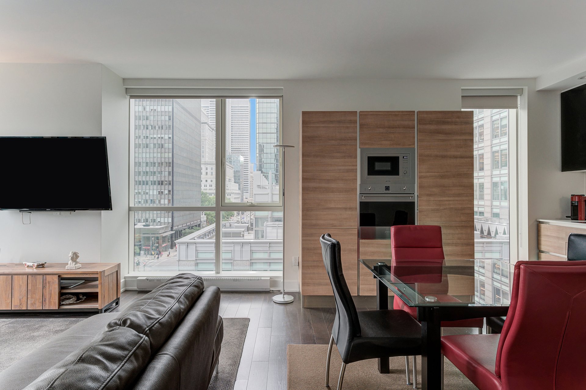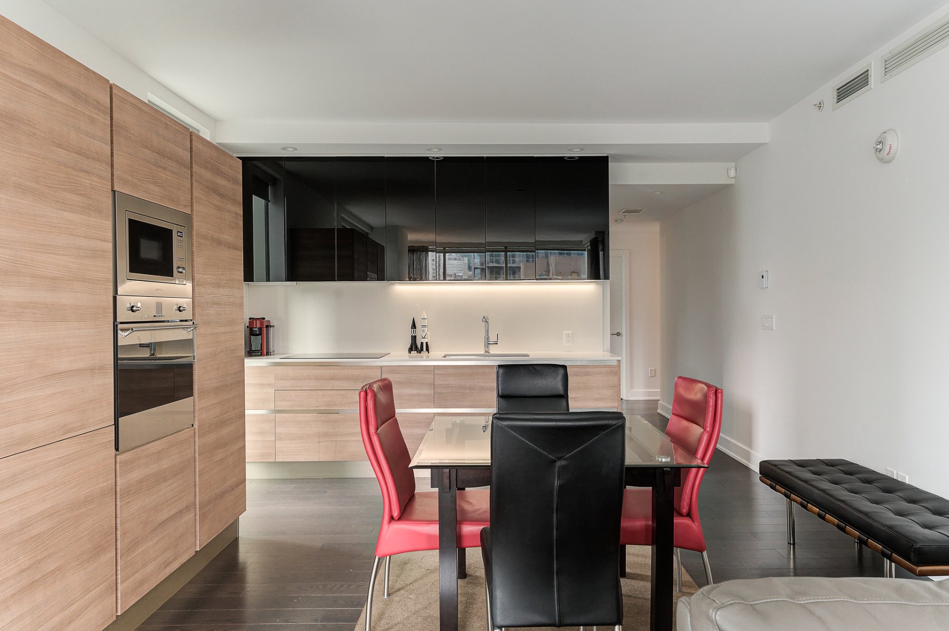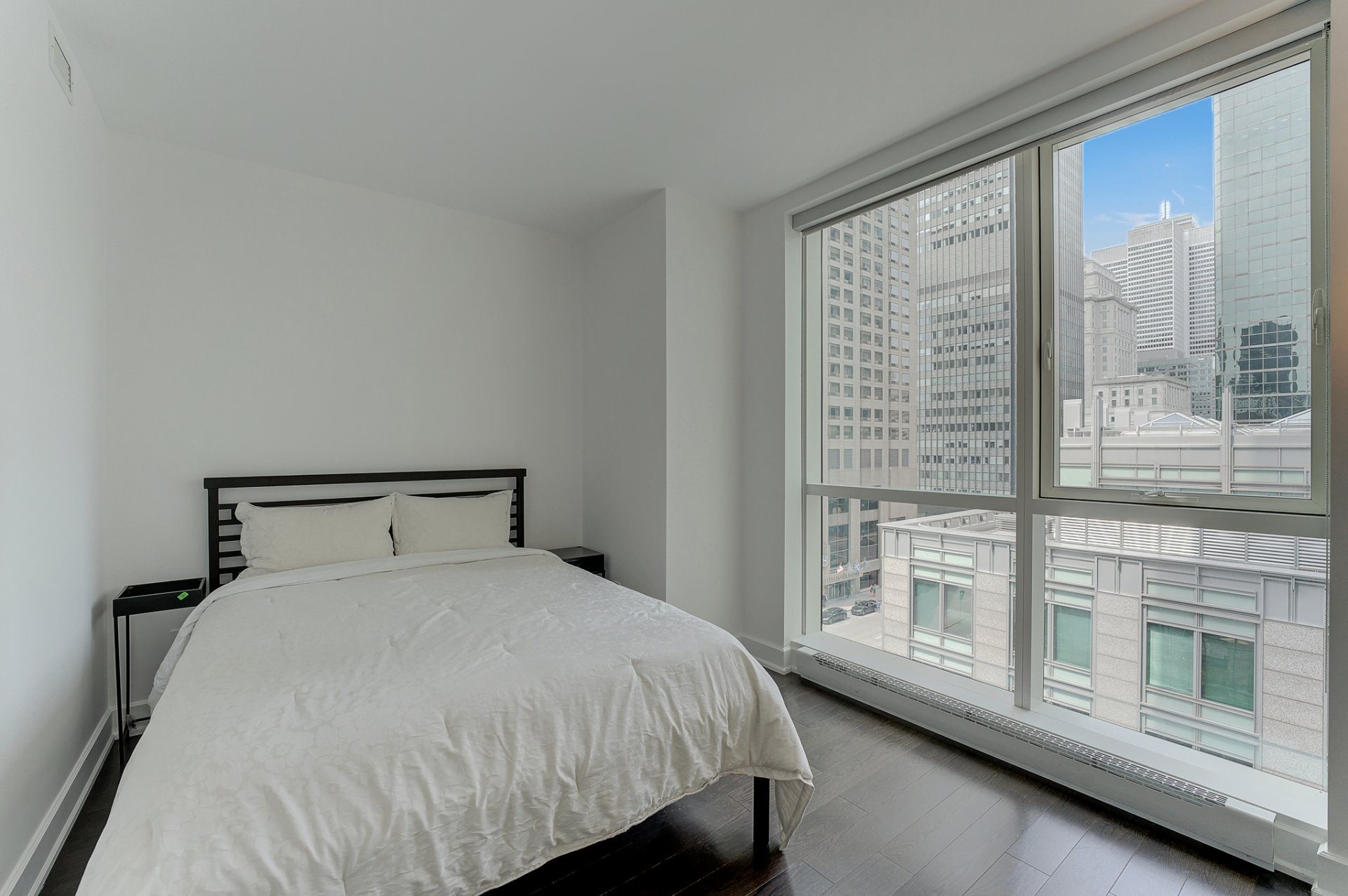 Luxurious 5th-floor condo in the Rocabella building, situated in the Golden Square Mile. This unit offers panoramic downtown views, an open concept living space, 2 bedrooms, and 2 bathrooms. It's close to shops, dining, universities, and metro stations. The building provides 24/7 security with a comprehensive camera system. Amenities include a fitness room, pool, yoga studio, and more. Includes garage and locker, blending luxury, security, and convenience in a prime location.