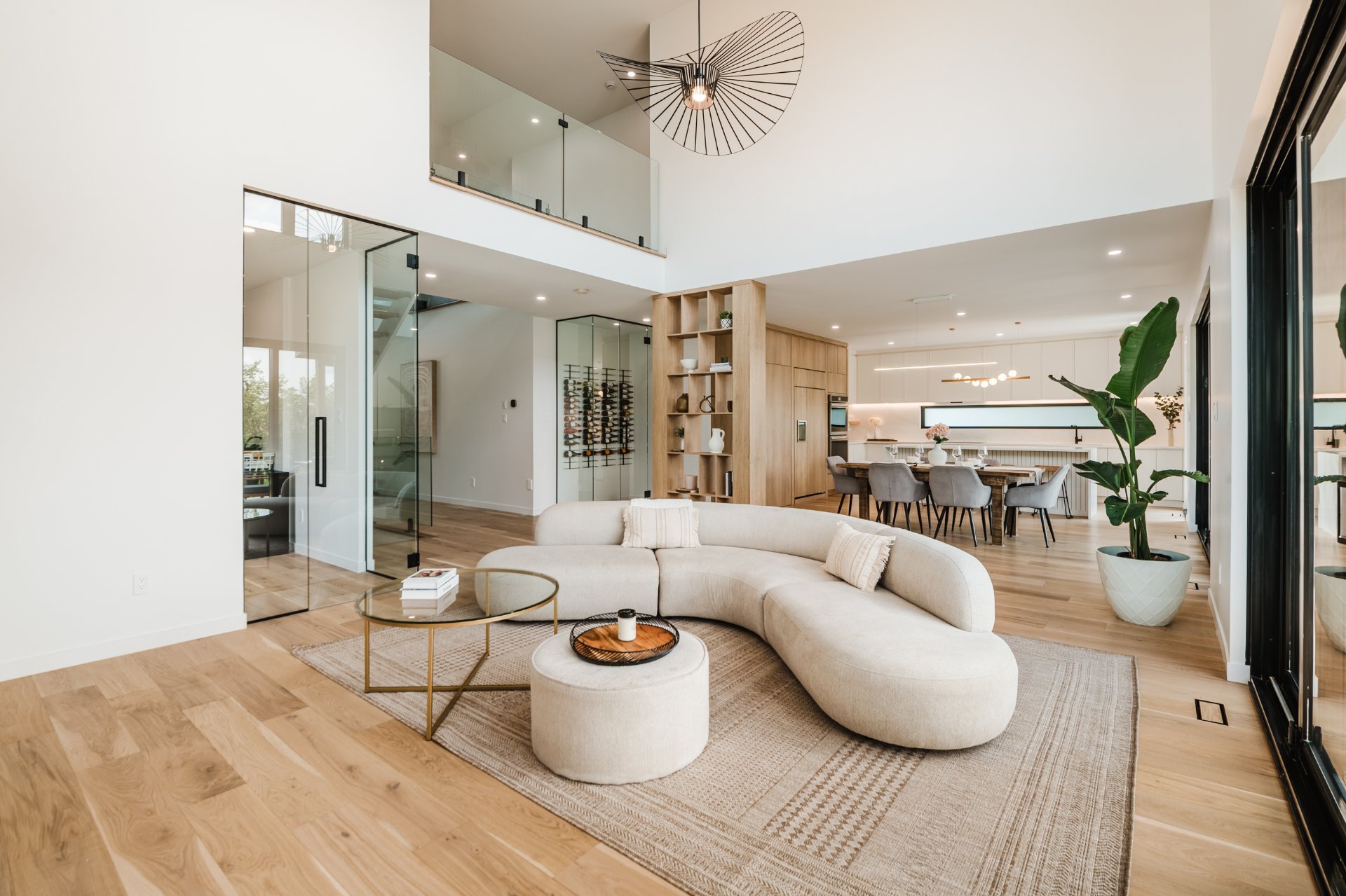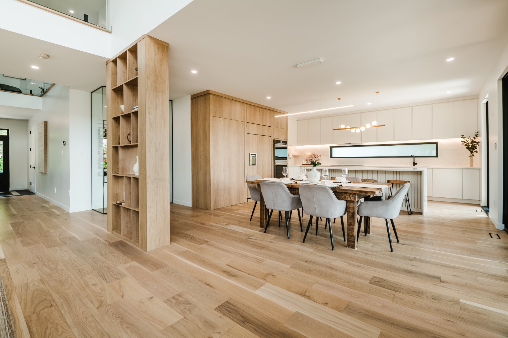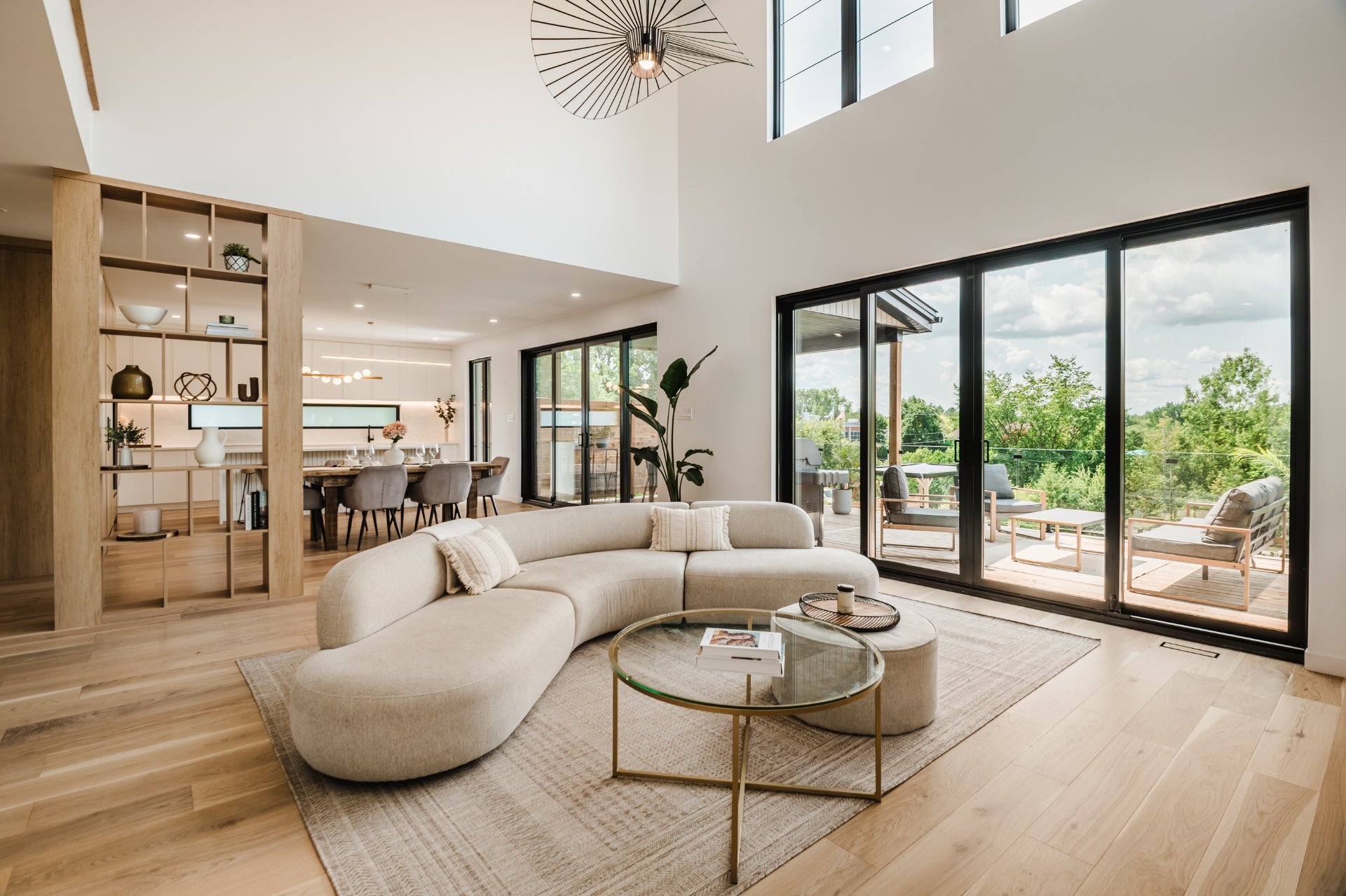 Dès l'entrée, un vaste hall mène à un élégant mudroom avec rangement intégré, annonçant le raffinement de toute la maison. Boiseries, garde-corps en verre, lignes épurées: chaque élément architectural a été soigneusement pensé.