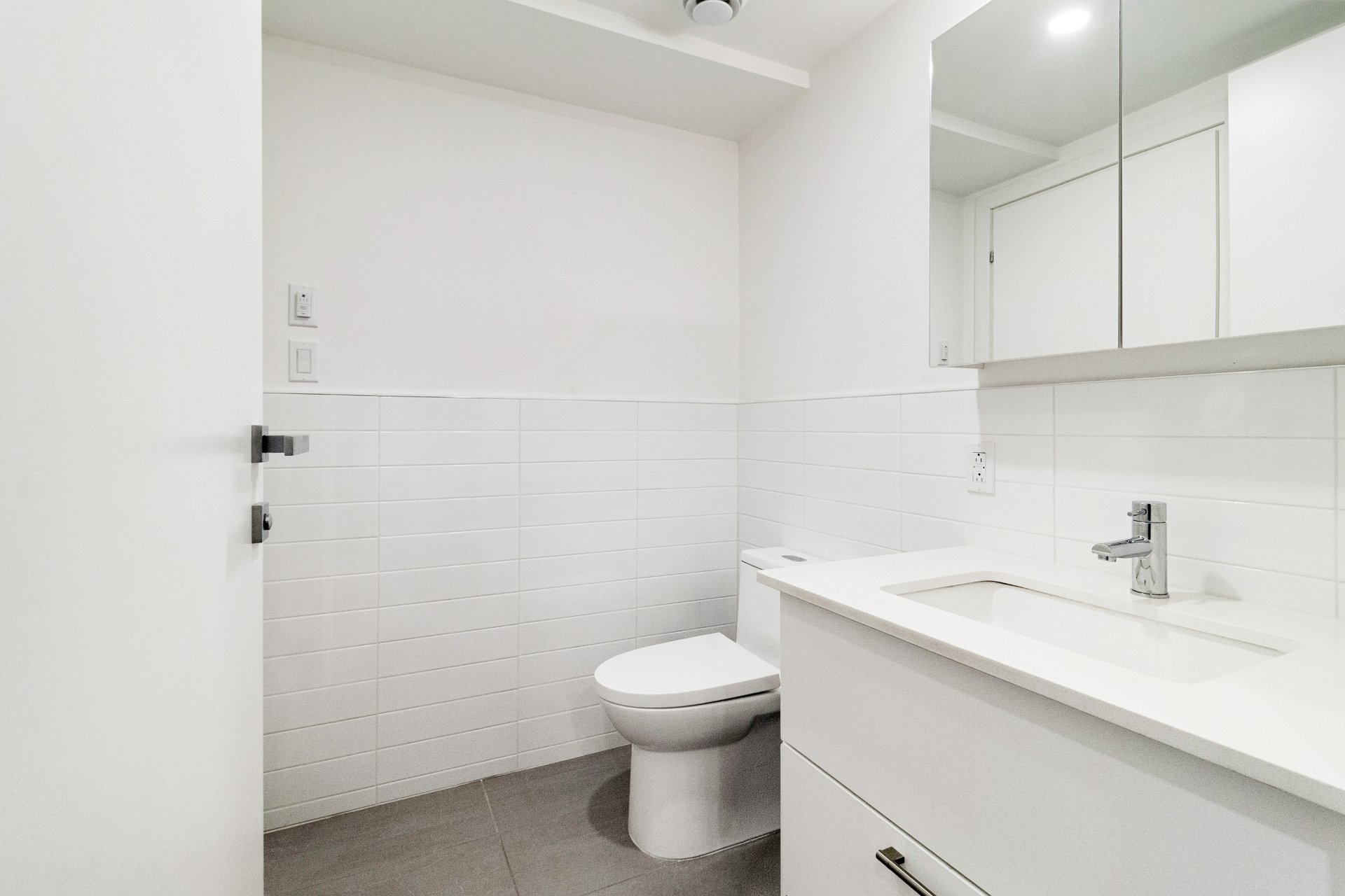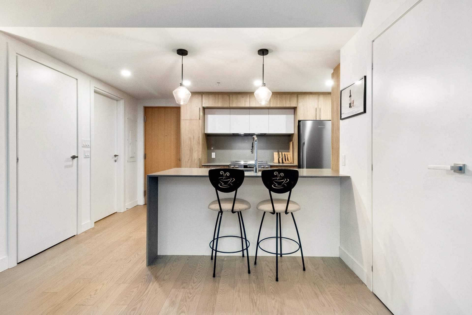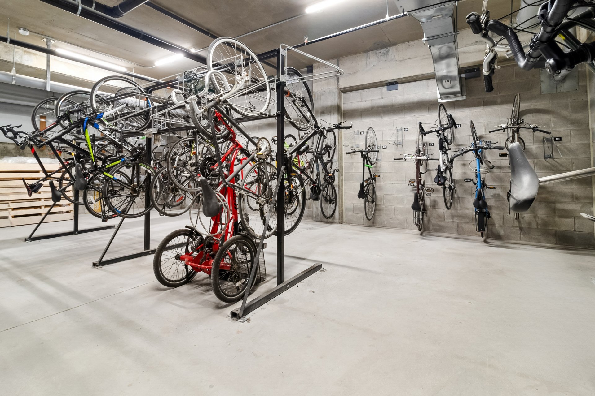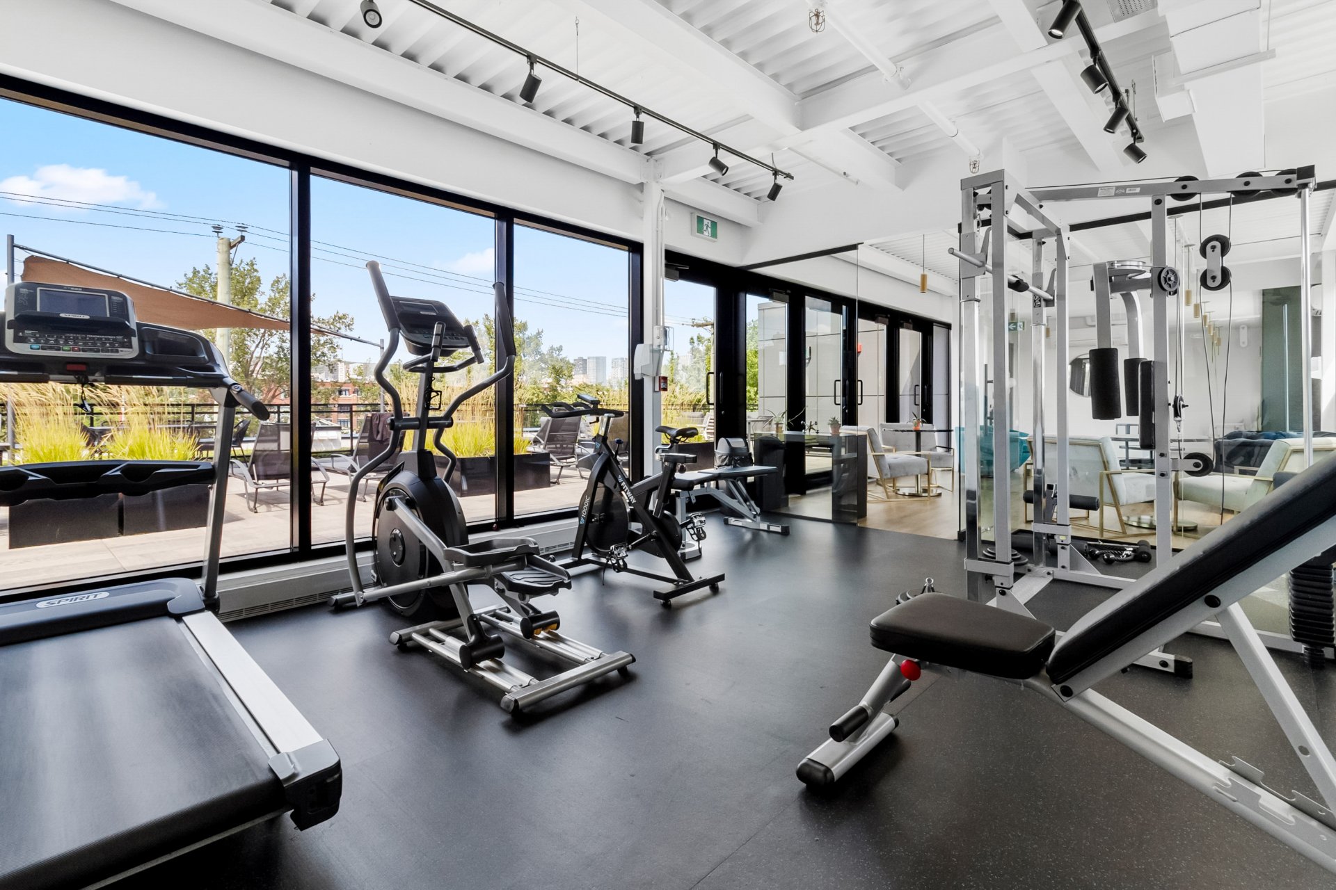 EDWIN | Immeuble de construction 2021 avec ascenseur. Terrasse commune sur le toit avec BBQ et vues panoramiques sur le canal, le centre-ville et le mont Royal. Salon lounge, salle d'exercice, chute à déchets à chaque étage, rangement à vélos, système de détection de fuites et interphone à l'entrée.