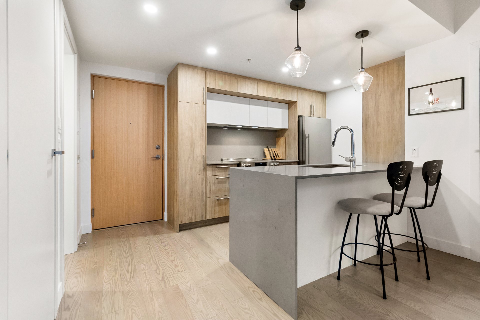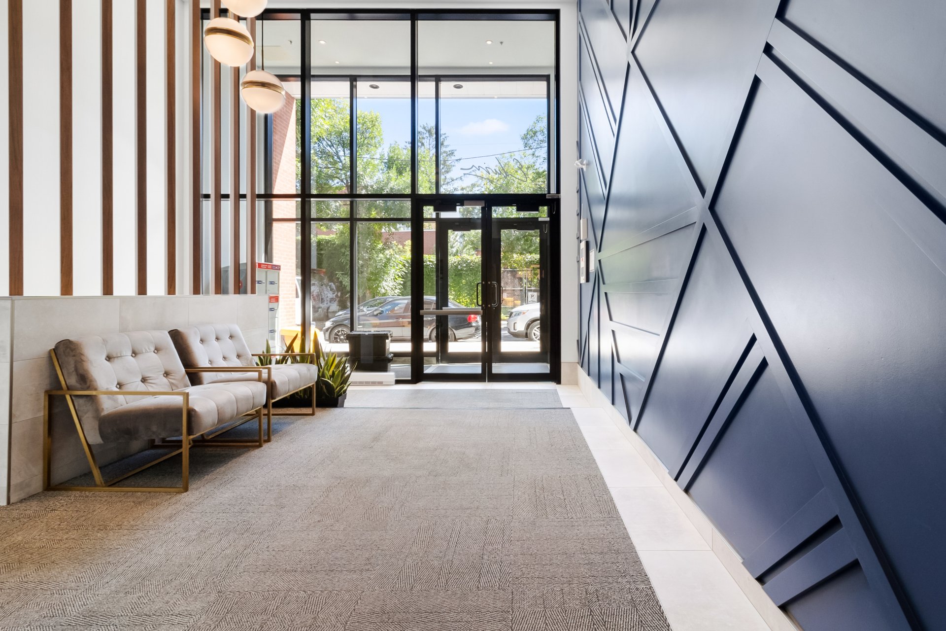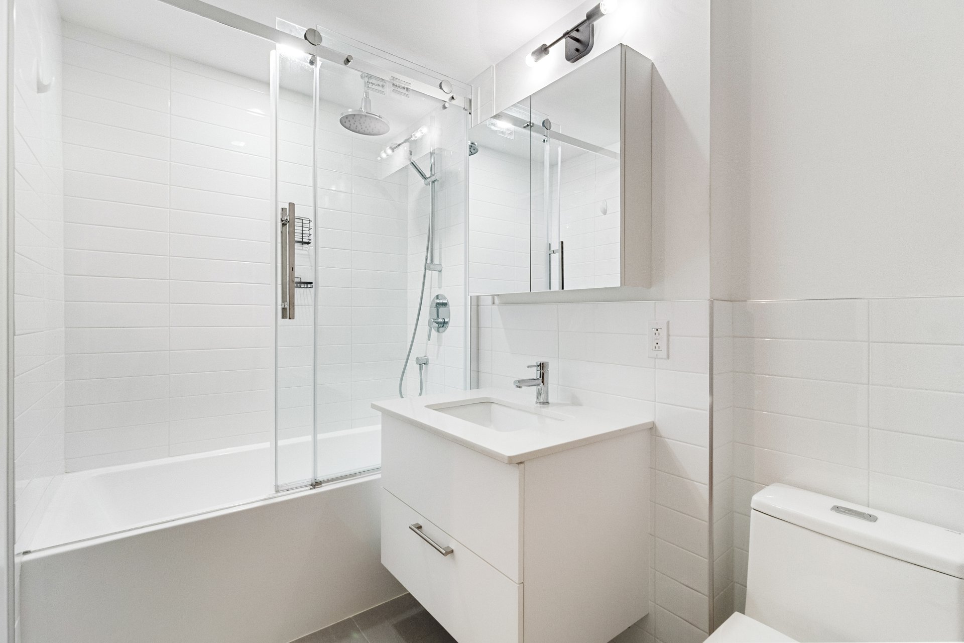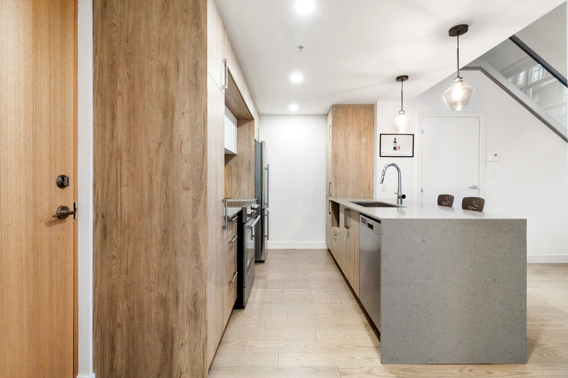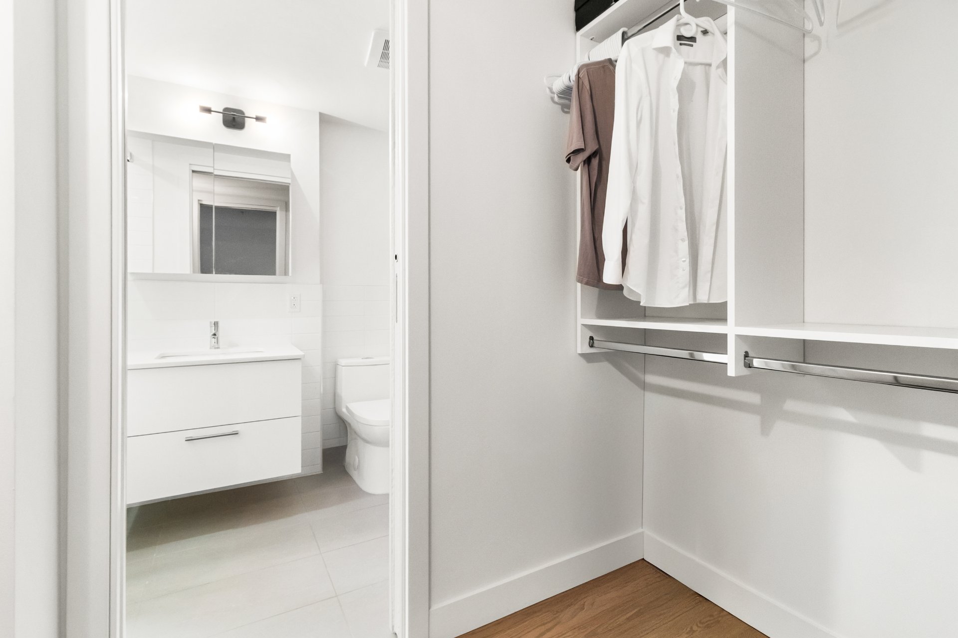 EDWIN | Immeuble de construction 2021 avec ascenseur. Terrasse commune sur le toit avec BBQ et vues panoramiques sur le canal, le centre-ville et le mont Royal. Salon lounge, salle d'exercice, chute à déchets à chaque étage, rangement à vélos, système de détection de fuites et interphone à l'entrée.