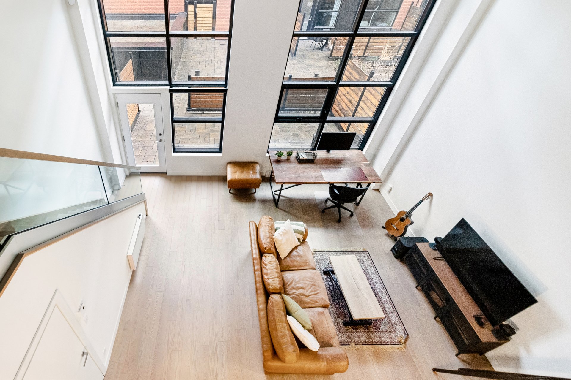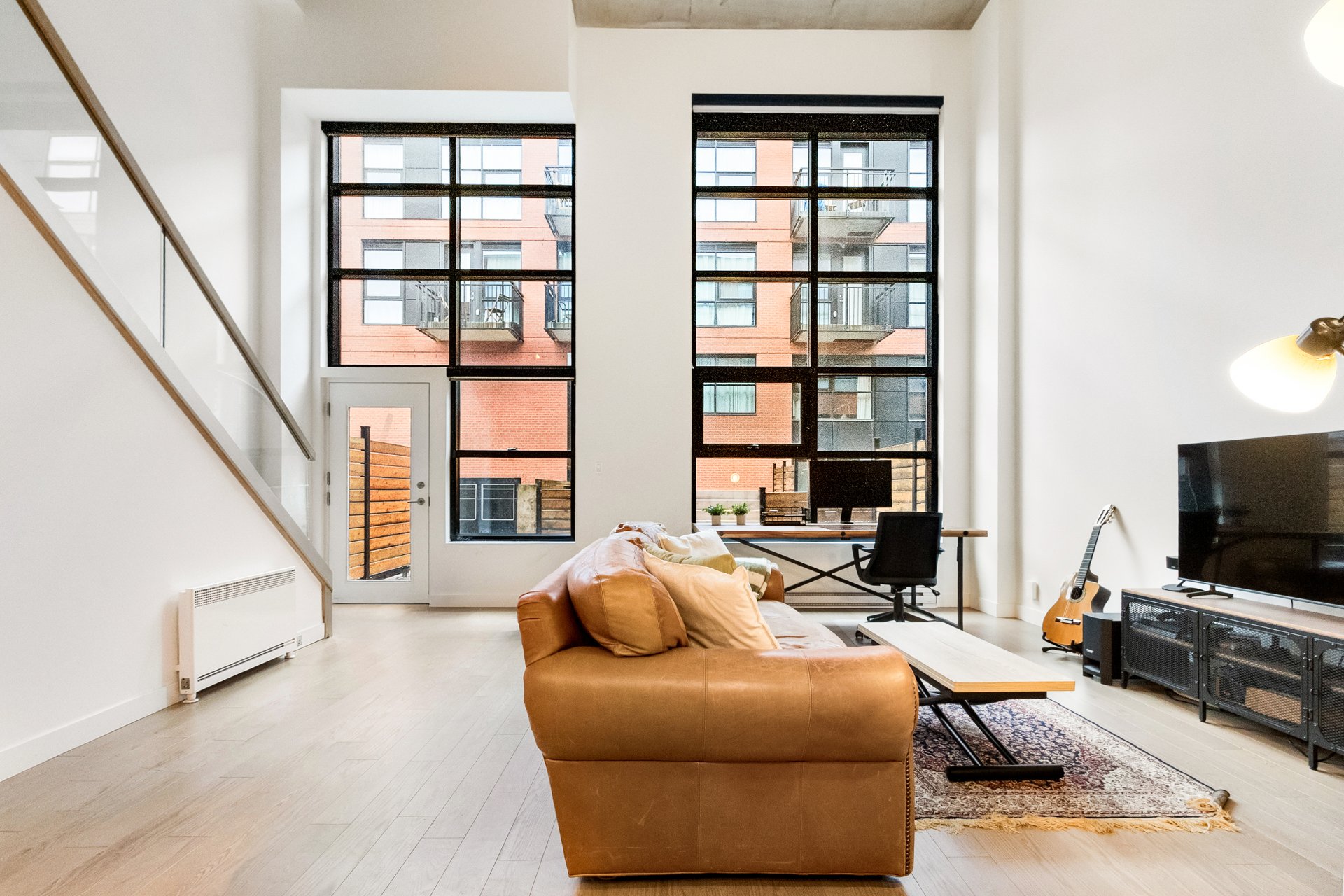EDWIN | Loft avec mezzanine au coeur du secteur prisé du Marché Atwater, à deux pas du canal de Lachine, de la piste cyclable, des cafés et des restaurants branchés. Aire de vie ouverte et lumineuse avec fenestration surdimensionnée, plafond de 17 pieds et accès direct à une terrasse privative donnant sur la cour intérieure. Cuisine avec îlot central. Chambre en mezzanine avec salle de bains attenante et walk-in, plus salle d'eau au rez-de-chaussée. Climatisation murale, espace de rangement et garage. Espaces communs avec salle d'exercice et terrasse sur le toit avec vue panoramique.