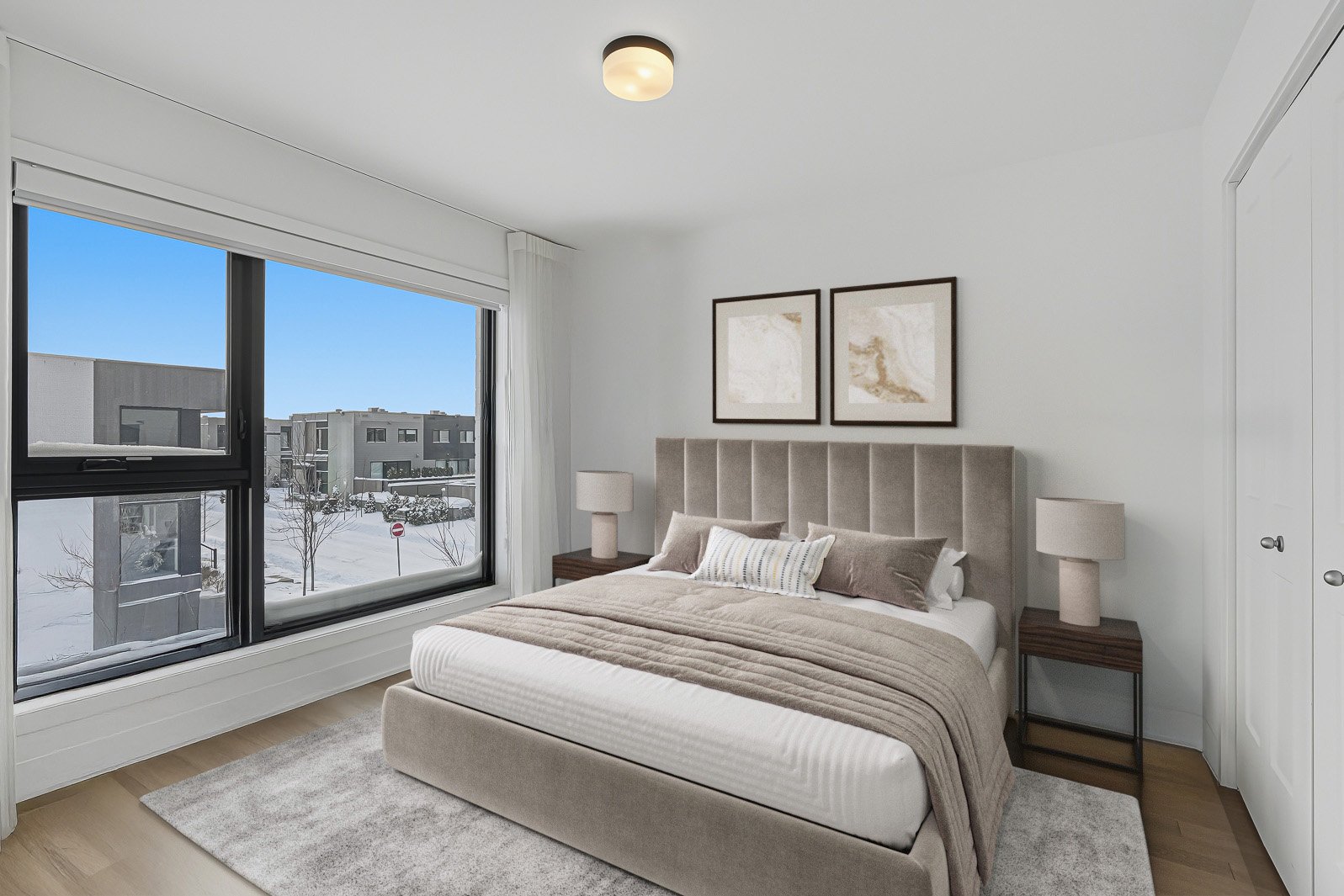 Située dans un secteur prisé de Sainte-Julie, cette maison de ville en coin se distingue par son design contemporain, sa luminosité exceptionnelle et ses volumes impressionnants. L'aire de vie à aire ouverte propose des plafonds de grande hauteur, une fenestration abondante et un escalier architectural avec garde-corps en verre. Le rez-de-chaussée comprend un bureau, idéal pour le télétravail ou un espace polyvalent selon les besoins. La cuisine moderne séduit par son vaste îlot, ses lignes épurées et ses matériaux de qualité. Les chambres offrent confort et polyvalence. Le garage double ajoute un atout pratique.