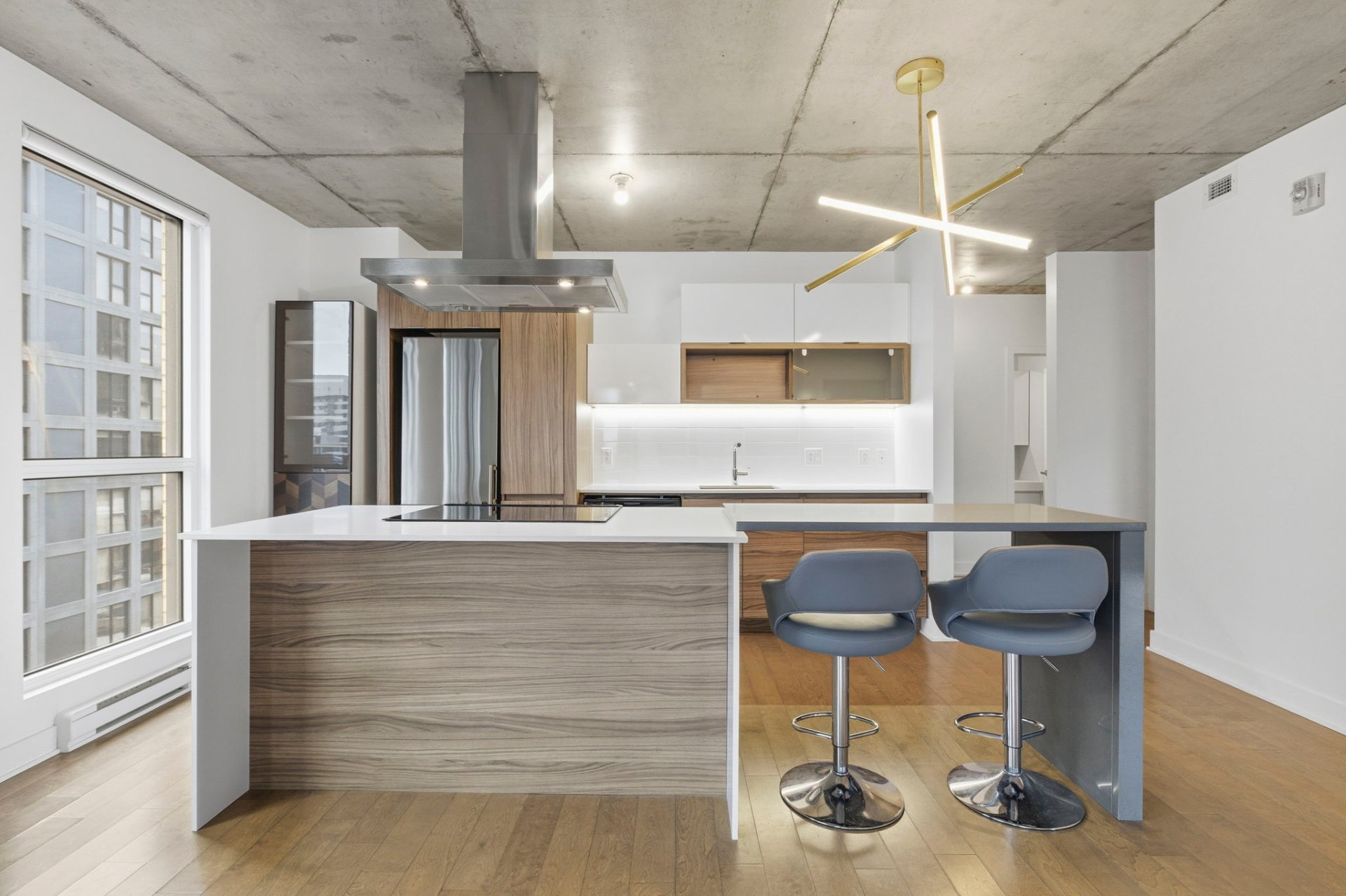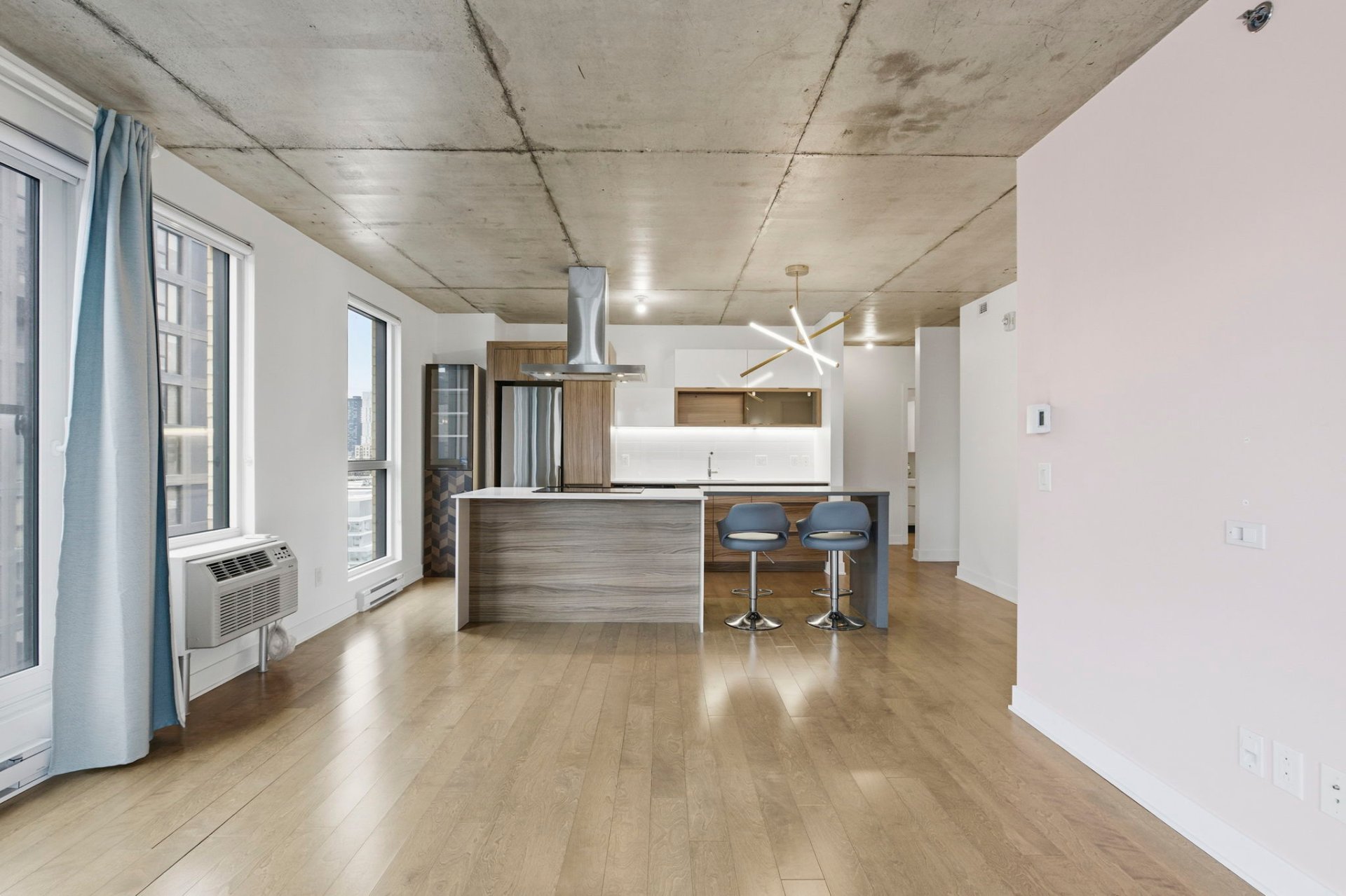 Idéalement situé au coeur de Griffintown, ce lumineux condo de coin de 865 pi² offre deux chambres et deux salles de bain, avec une aire de vie ouverte au design réfléchi. La cuisine spacieuse est idéale pour recevoir, baignée de lumière naturelle et agrémentée d'un balcon privé. La suite principale comprend un walk-in et une salle de bain attenante. Une place de stationnement intérieur ainsi qu'un espace de rangement sont inclus. Une adresse urbaine raffinée offrant des commodités haut de gamme, à proximité du Vieux-Montréal, du bassin Peel, de la rue Wellington, des transports en commun et des principaux axes routiers.