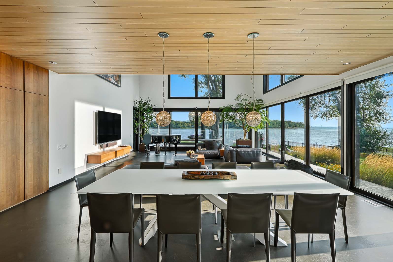 Électros ménagers (incluant laveuse et sécheuse), revêtements de fenêtres, fixtures d'éclairage (sauf exclusion), écran de la chambre principale, écran du cinéma maison, téléviseurs et supports, système de son encastré, haut-parleurs (intégrés ou sur supports), aspirateur central et accessoires, alarme, caméra de sonnette, armoires et établi du garage, deux bornes pour voiture électrique.