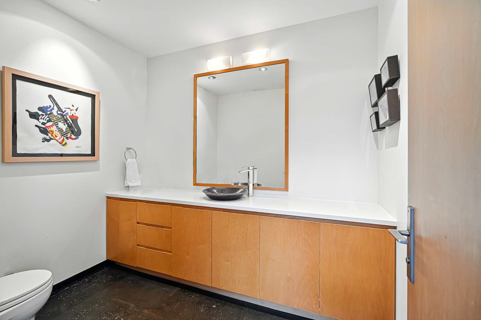 Luminaire de la salle à manger, console du salon, deux projecteurs, "butcher block" du dressing,