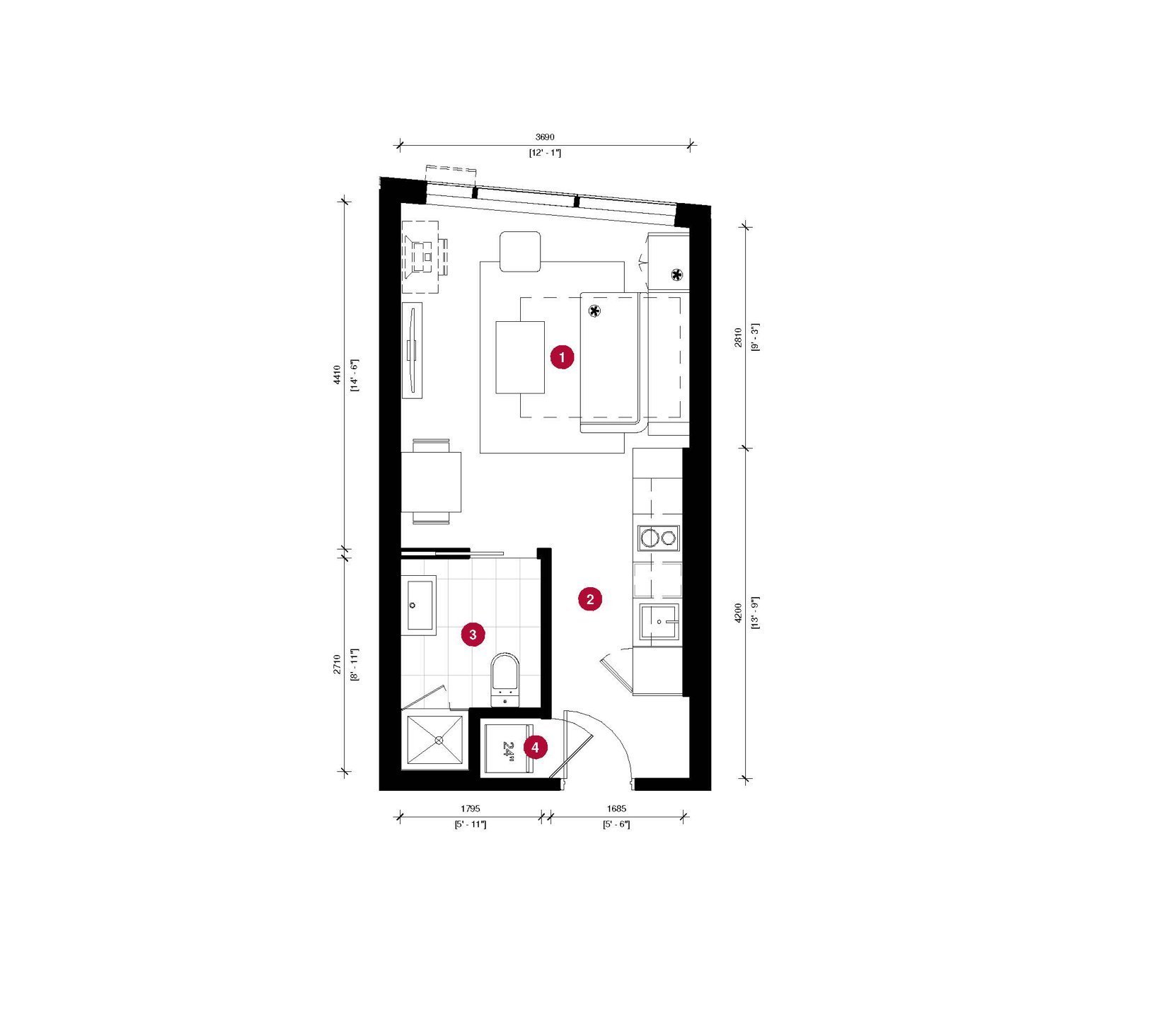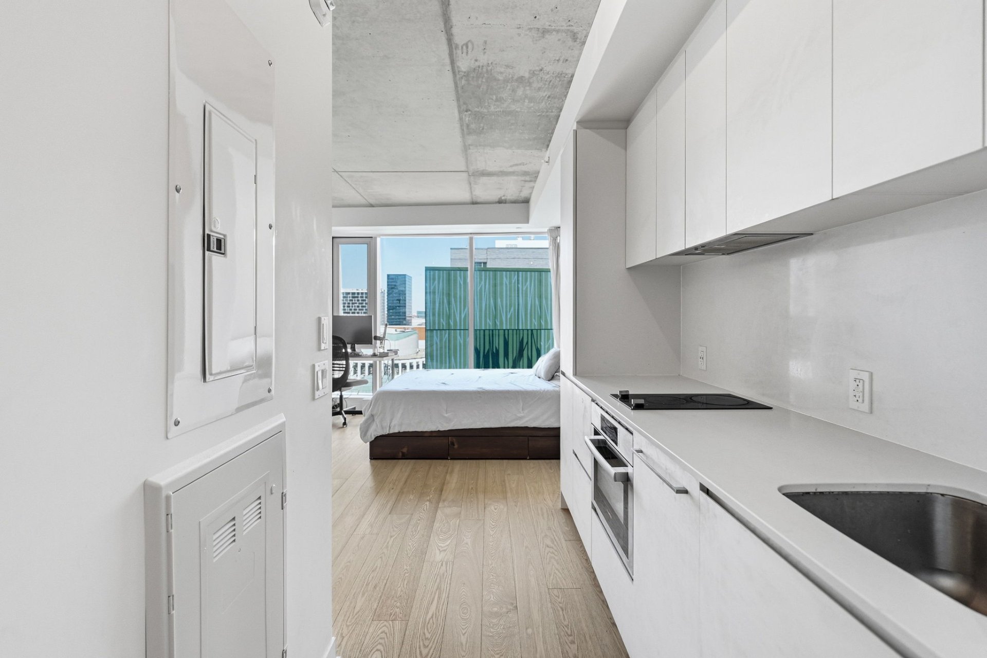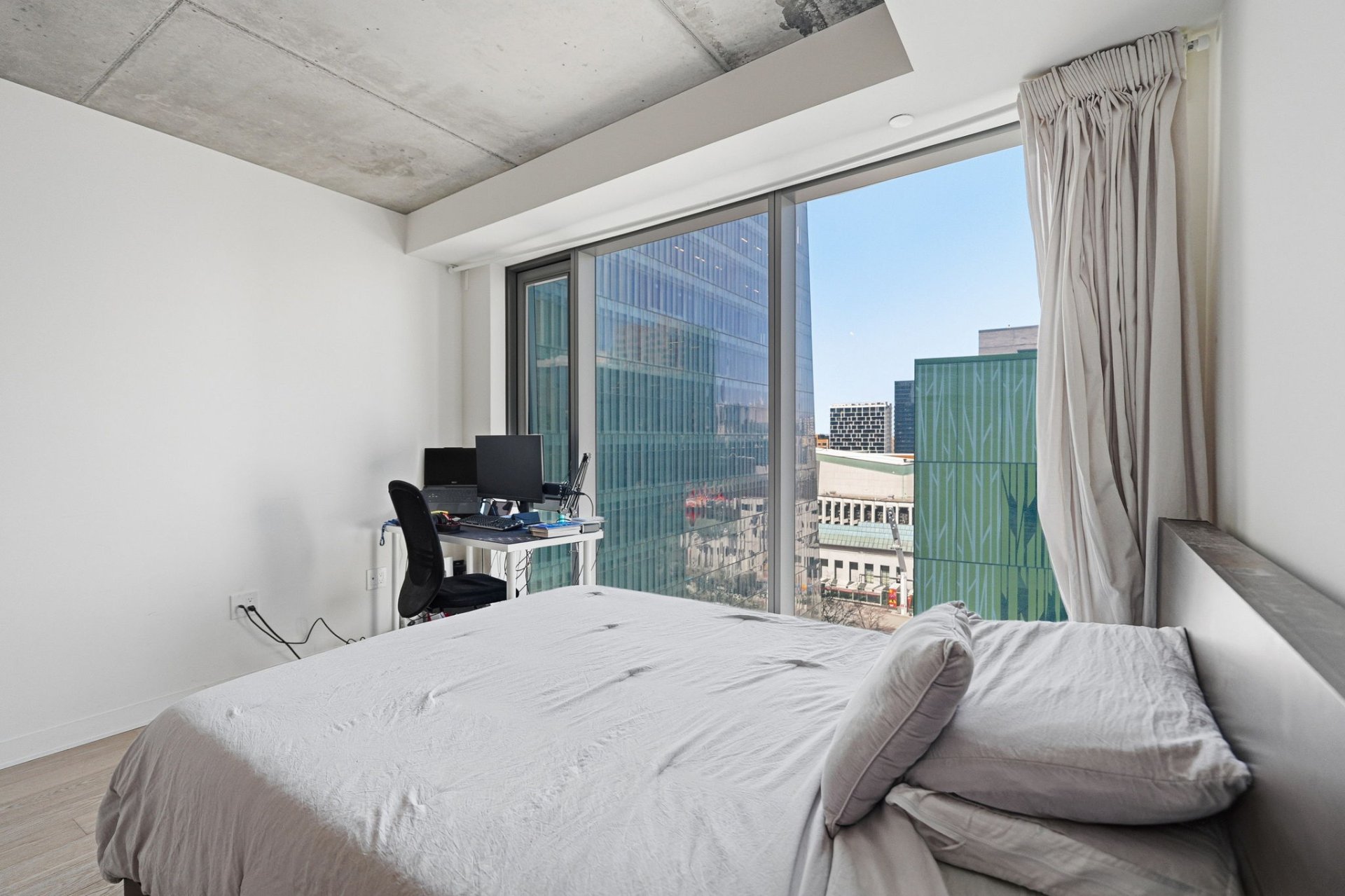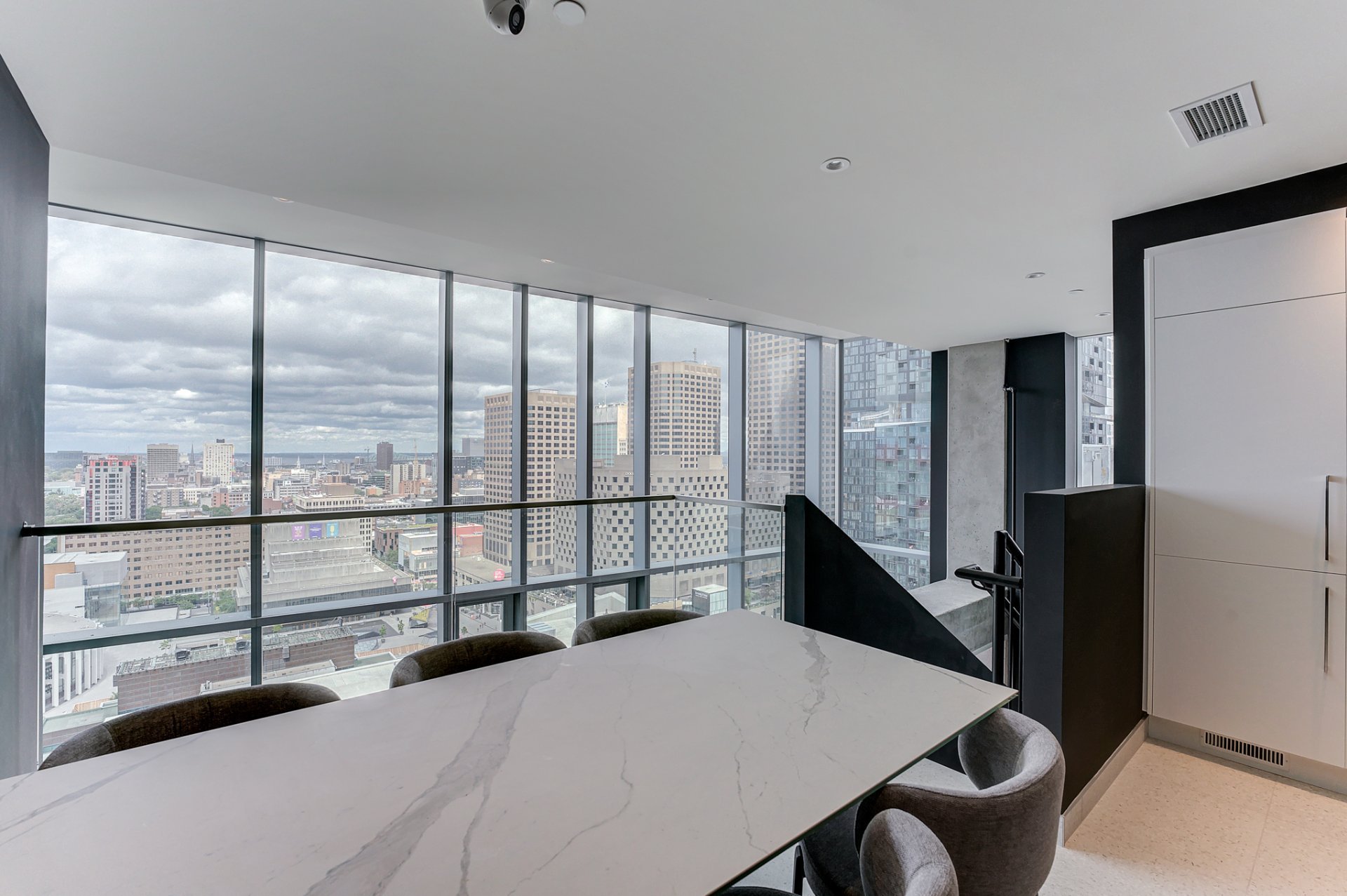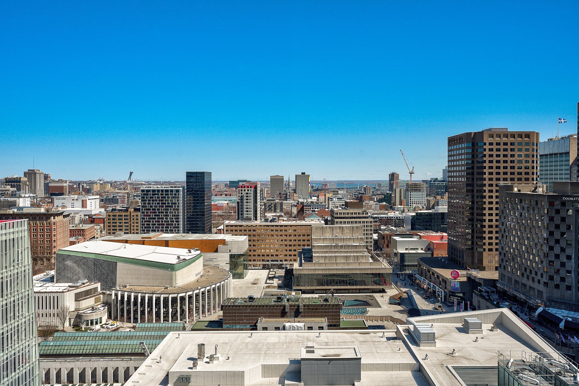 Ce studio de luxe est idéalement situé dans le Quartier des spectacles, au coeur du centre-ville de Montréal. L'immeuble de 22 étages offre une architecture contemporaine, adjacent au cinéma impérial, construit il y a cent ans et classé monument patrimonial.