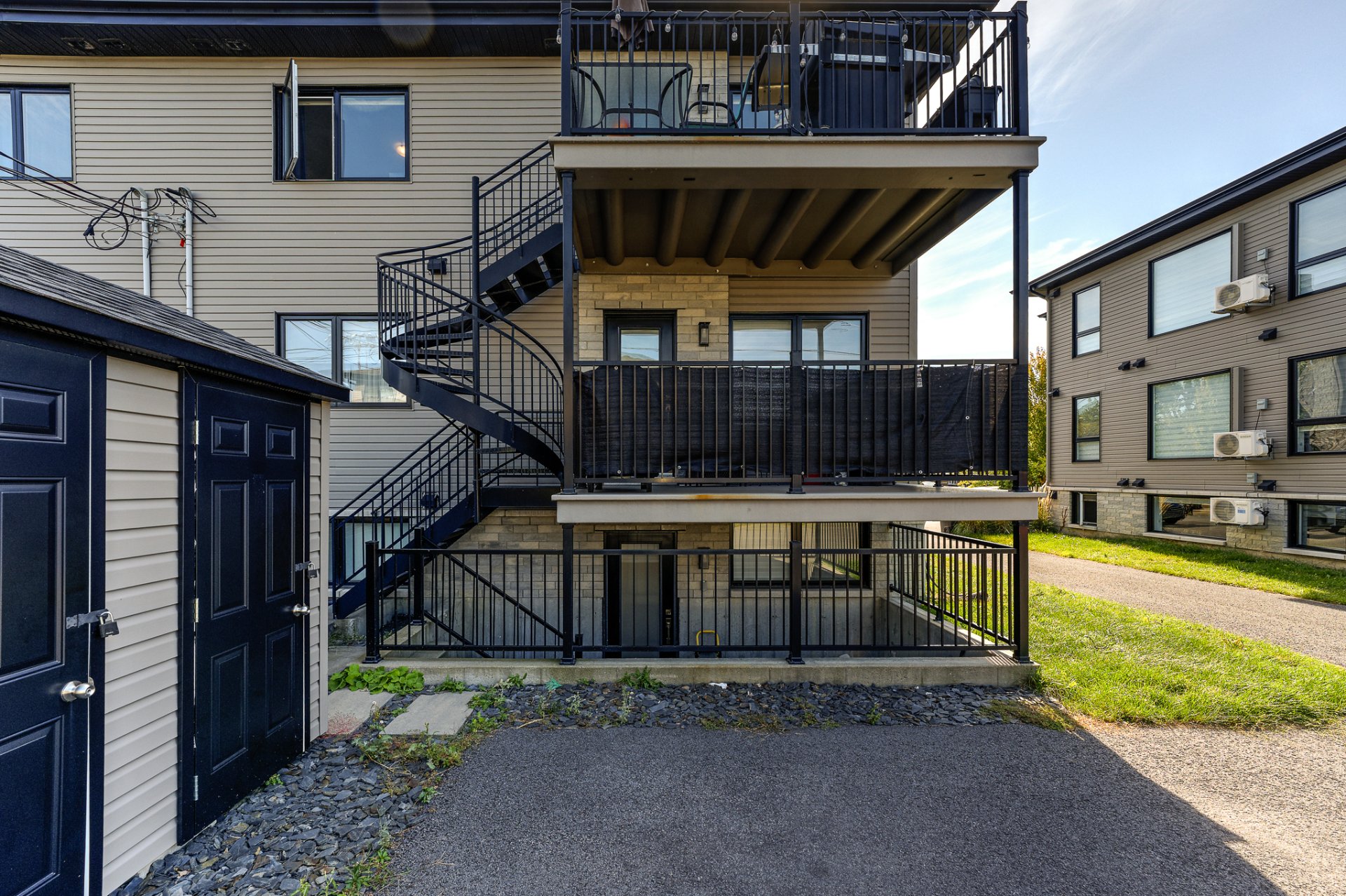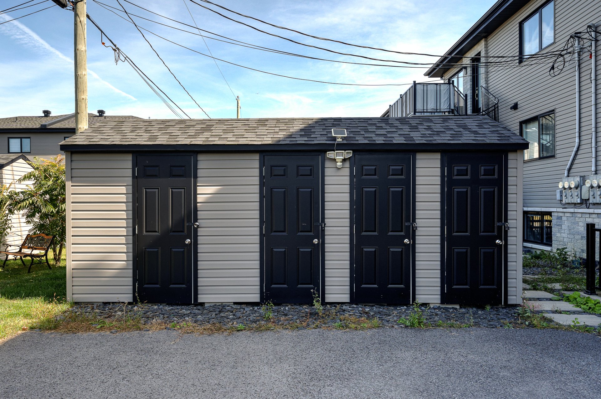 - Luminaires originaux ( si non remplacé par locataire), Stores alternatifs et toiles, Thermopompes murales ( air climatisés), Échangeur d'air, Chauffe eau, Cabanon ( 1 cabanon d'extra qui sert de rangement pour le propriétaire). Tablettes de rangement grillagée dans les gardes-robes.
