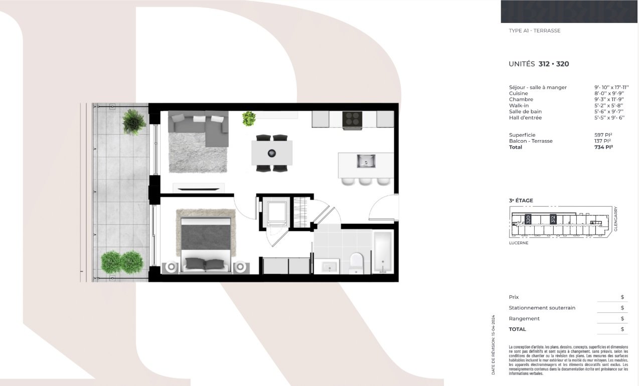 - Laveuse et sécheuse $2,400 + tx, Stationnement à partir de $58,500 + tx, Rangement à partir de $7,000 + tx, Borne électrique $8,000 + tx