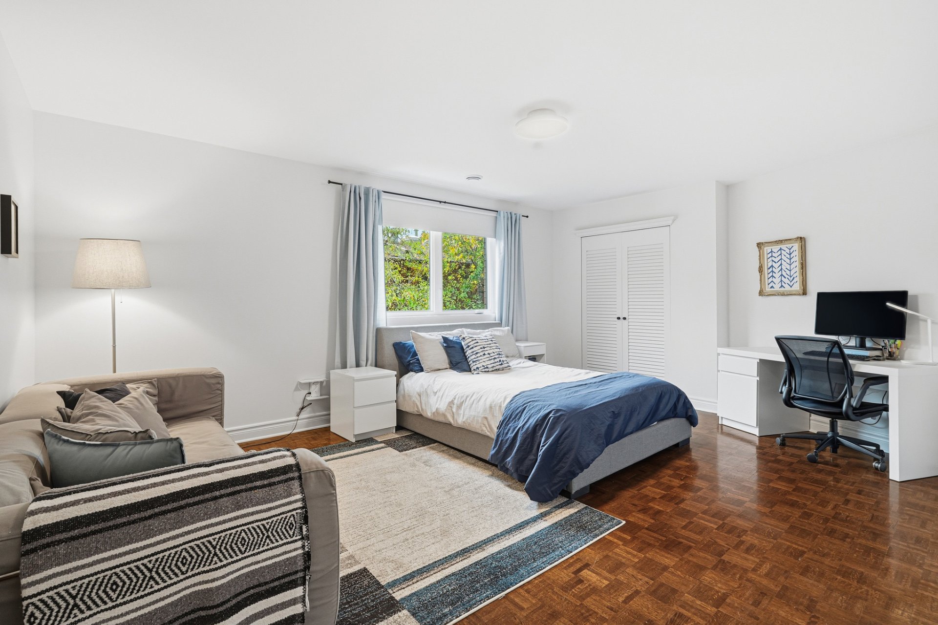 - Électroménagers (réfrigérateur Fisher&Paykel, four induction Kenmore, lave-vaisselle frigidaire), luminaires fixes, rangement du garage au sous-sol.