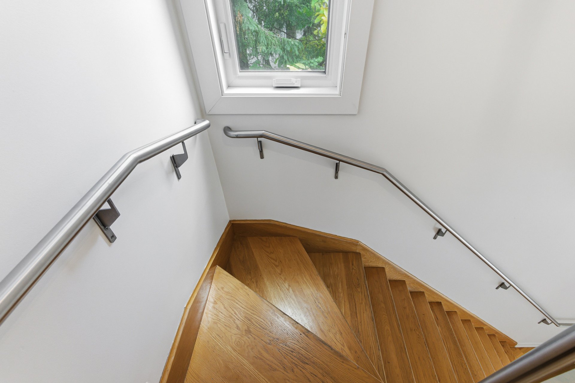Le REZ-DE-CHAUSSÉ propose un salon accueillant avec planchers de bois et foyer, une salle à manger conviviale ainsi qu'une cuisine fonctionnelle avec une grande fenêtre donnant sur la cour arrière. Cet espace permet de profiter d'une belle vue sur un terrain verdoyant agrémenté de magnifiques pommiers -- un véritable havre pour les repas en famille ou les moments de détente.