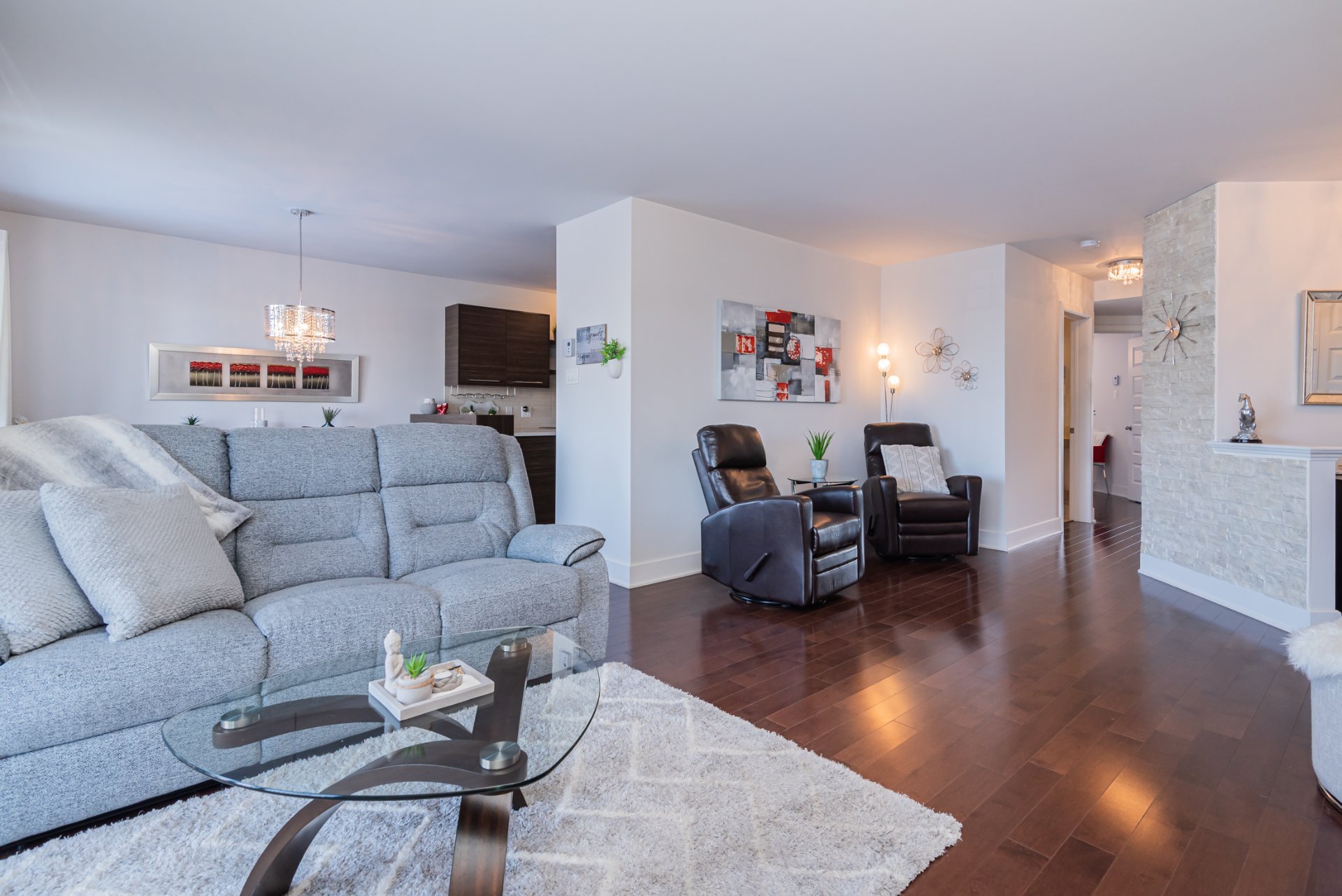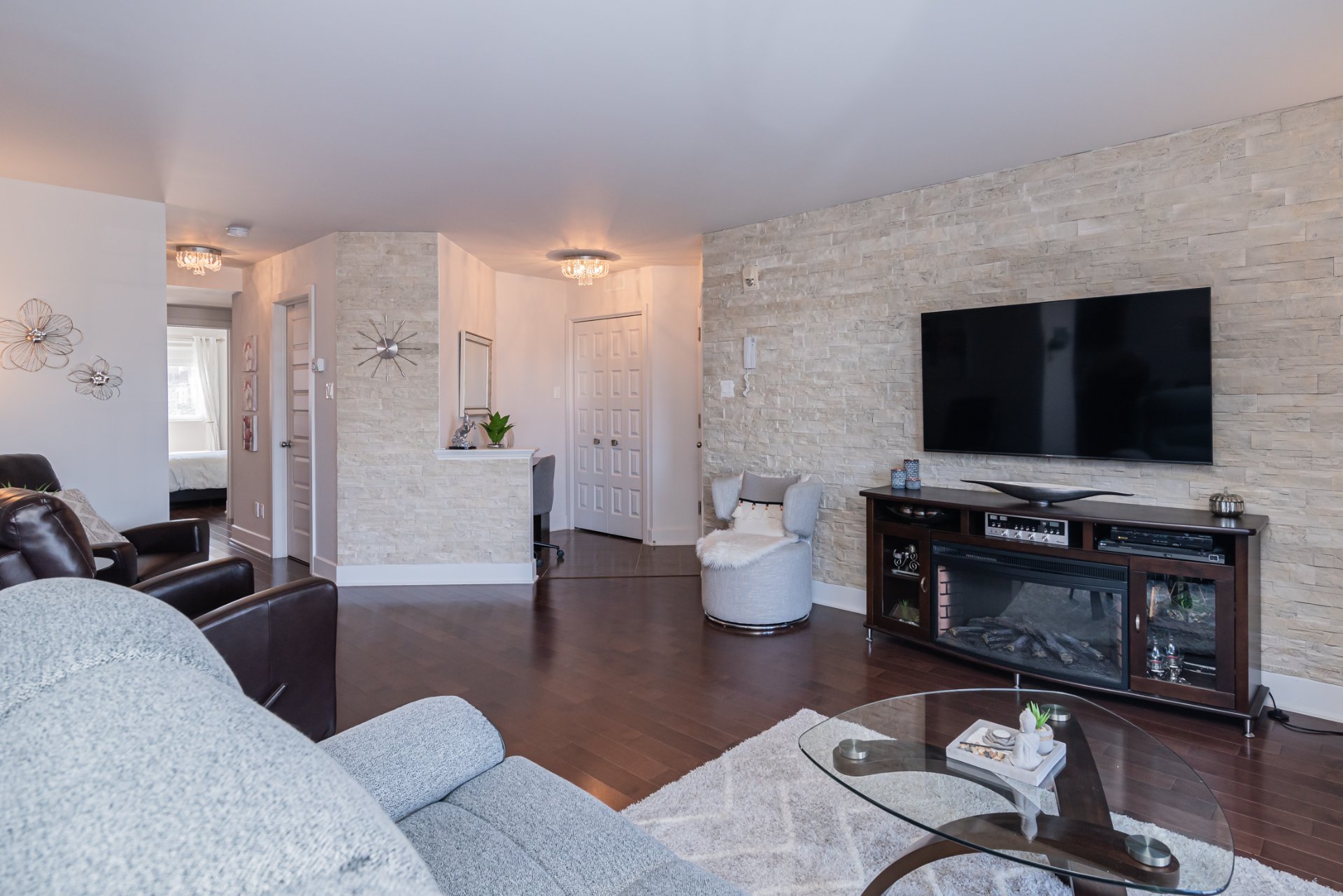 Condo impeccable de 2 chambres et 1 salle de bain offrant une aire ouverte lumineuse, une chambre principale spacieuse avec walk-in et une salle de bain avec baignoire et douche séparée. Aménagement bien pensé, lumineux et fonctionnel. Comprend deux espaces de stationnement.