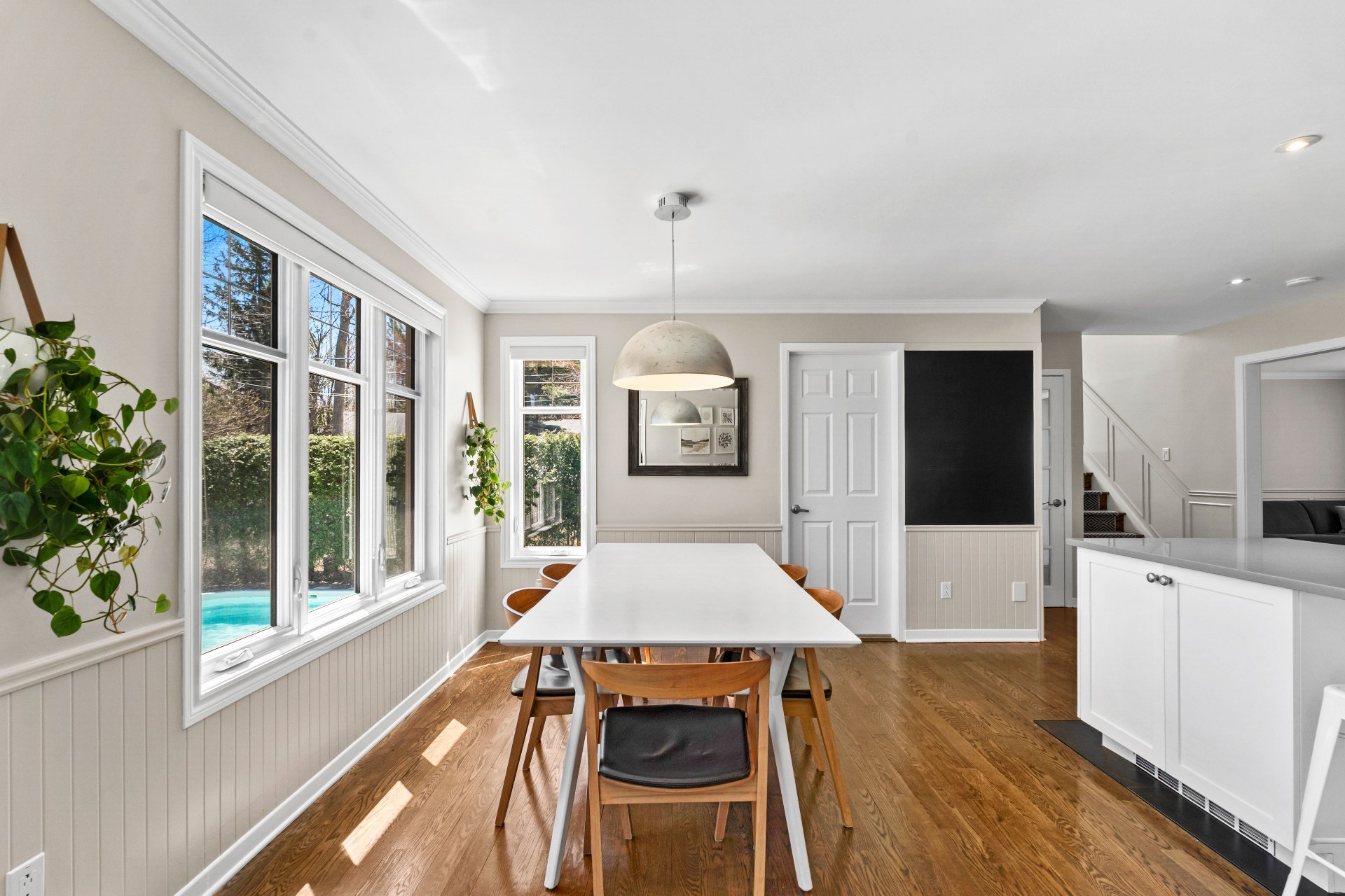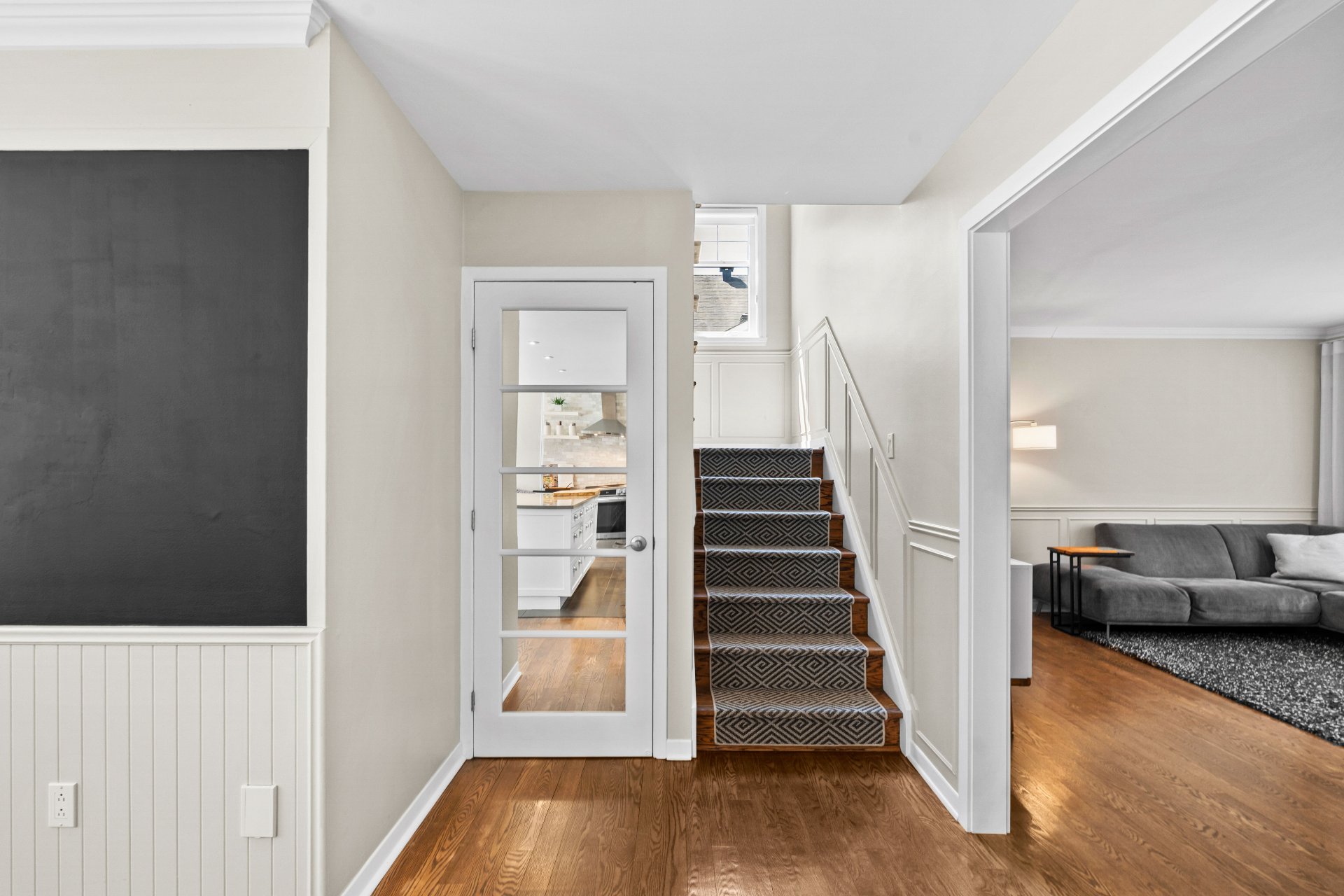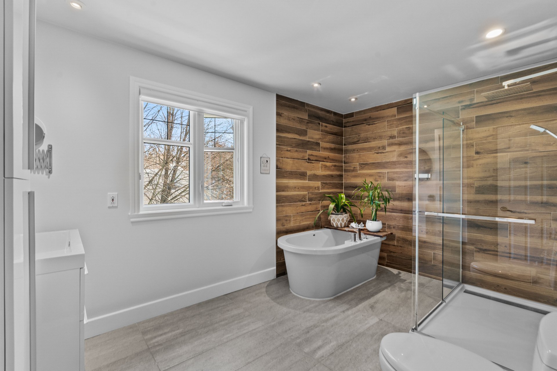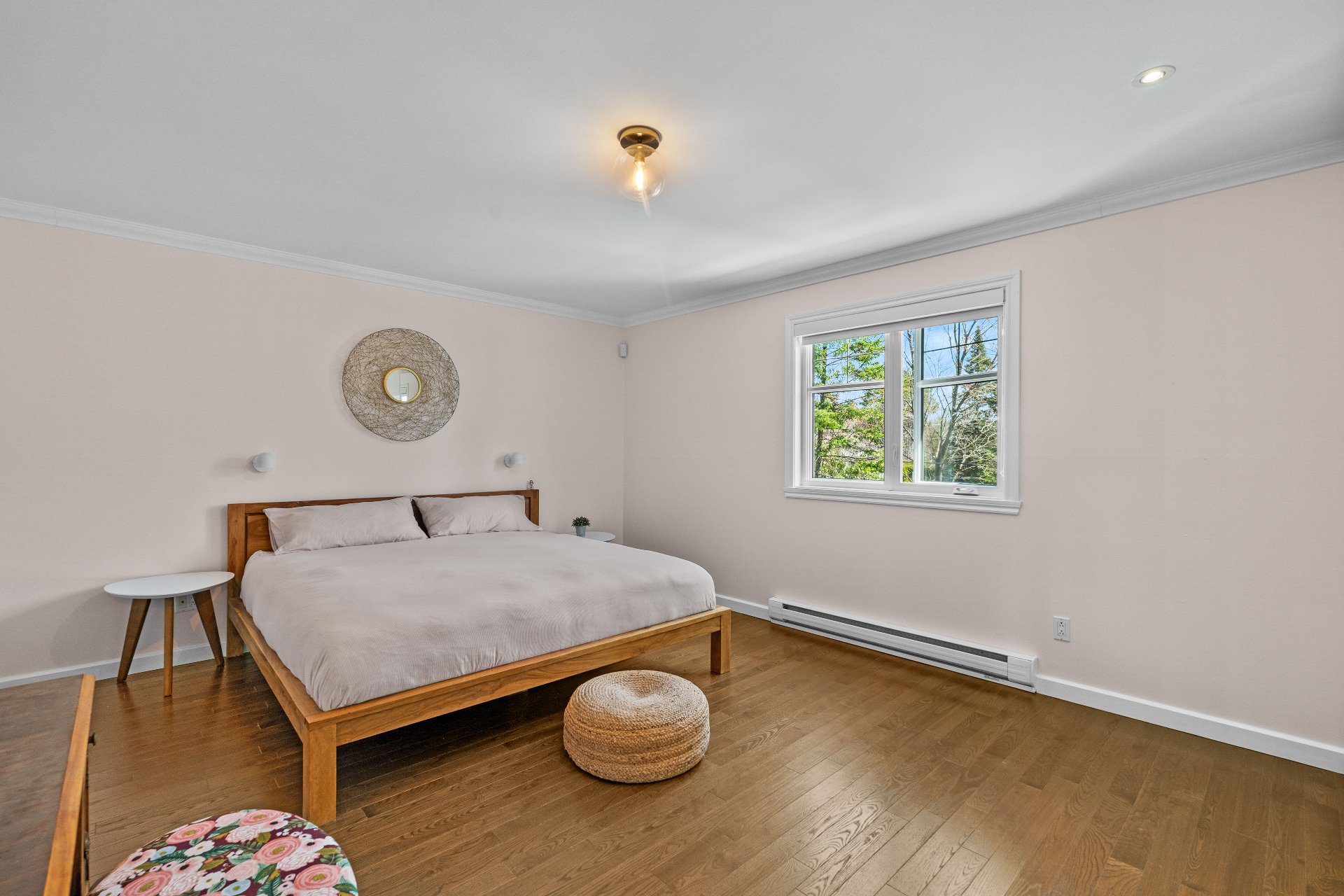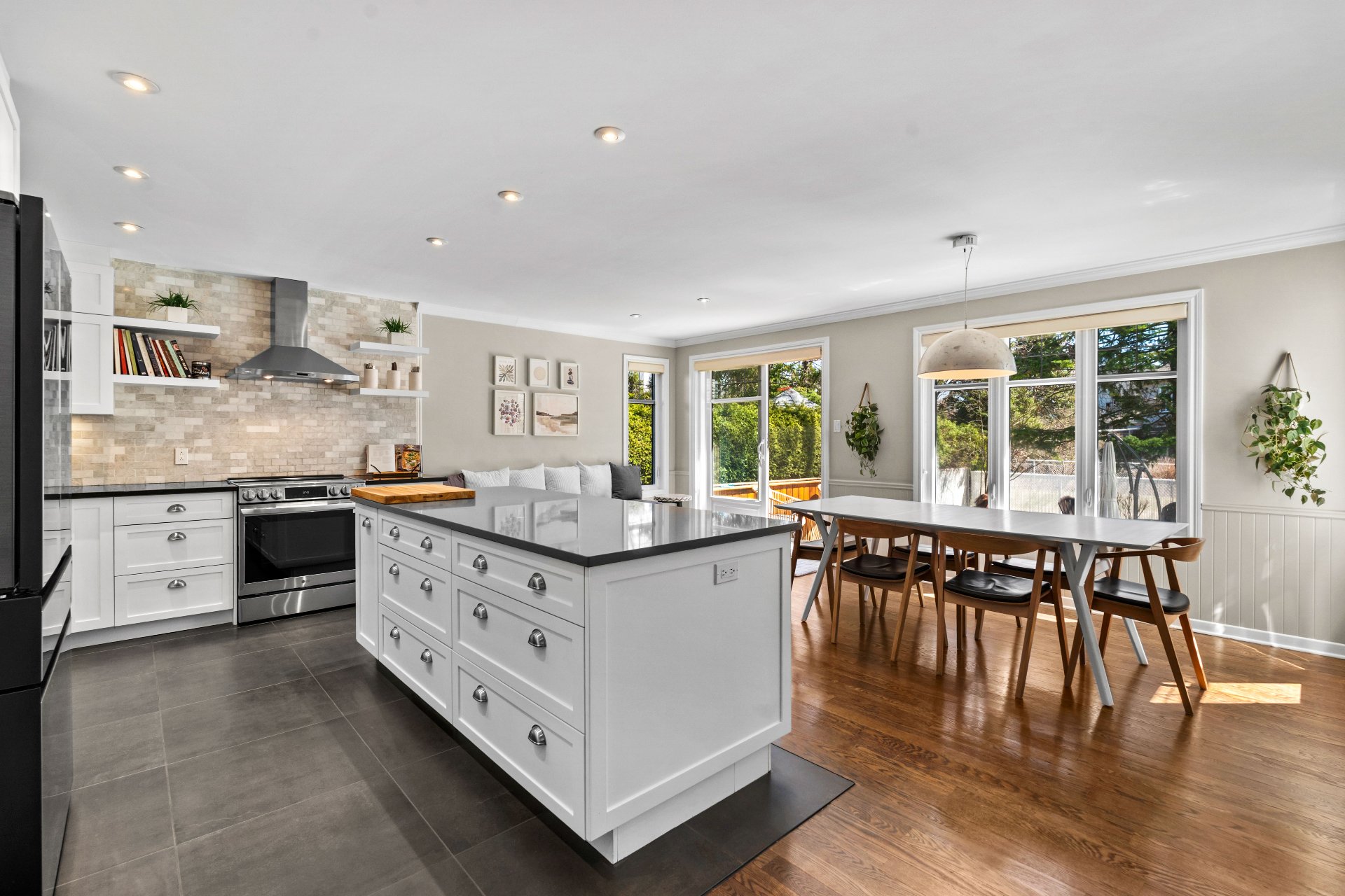 Le rez-de-chaussée, entièrement reconfiguré en 2013, offre un espace de vie moderne et convivial. La cuisine, fonctionnelle et élégante, est dotée d'armoires de bois, de comptoirs de quartz et d'électroménagers récents, et s'ouvre harmonieusement sur la salle à manger. Une salle de bain combinée à la salle de lavage, avec plancher chauffant, complète parfaitement ce niveau.
