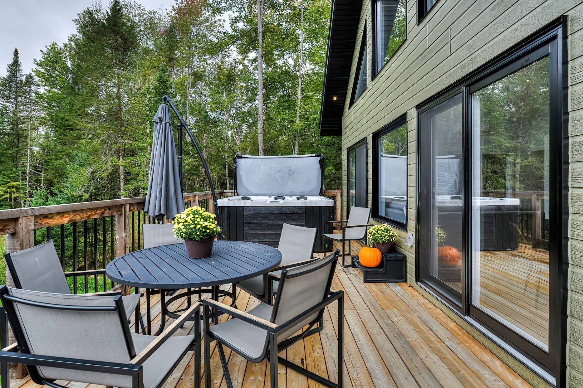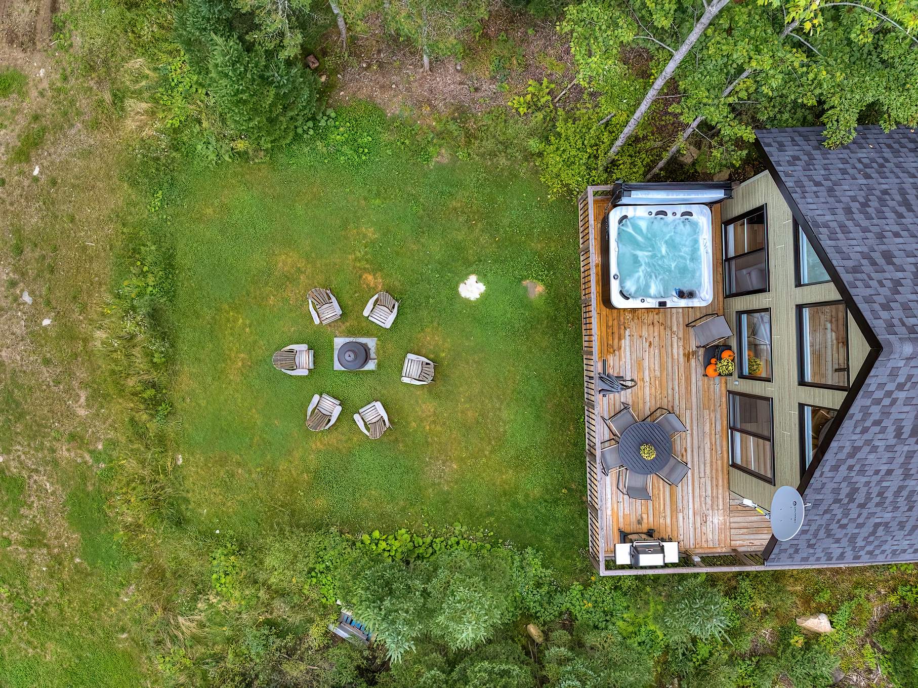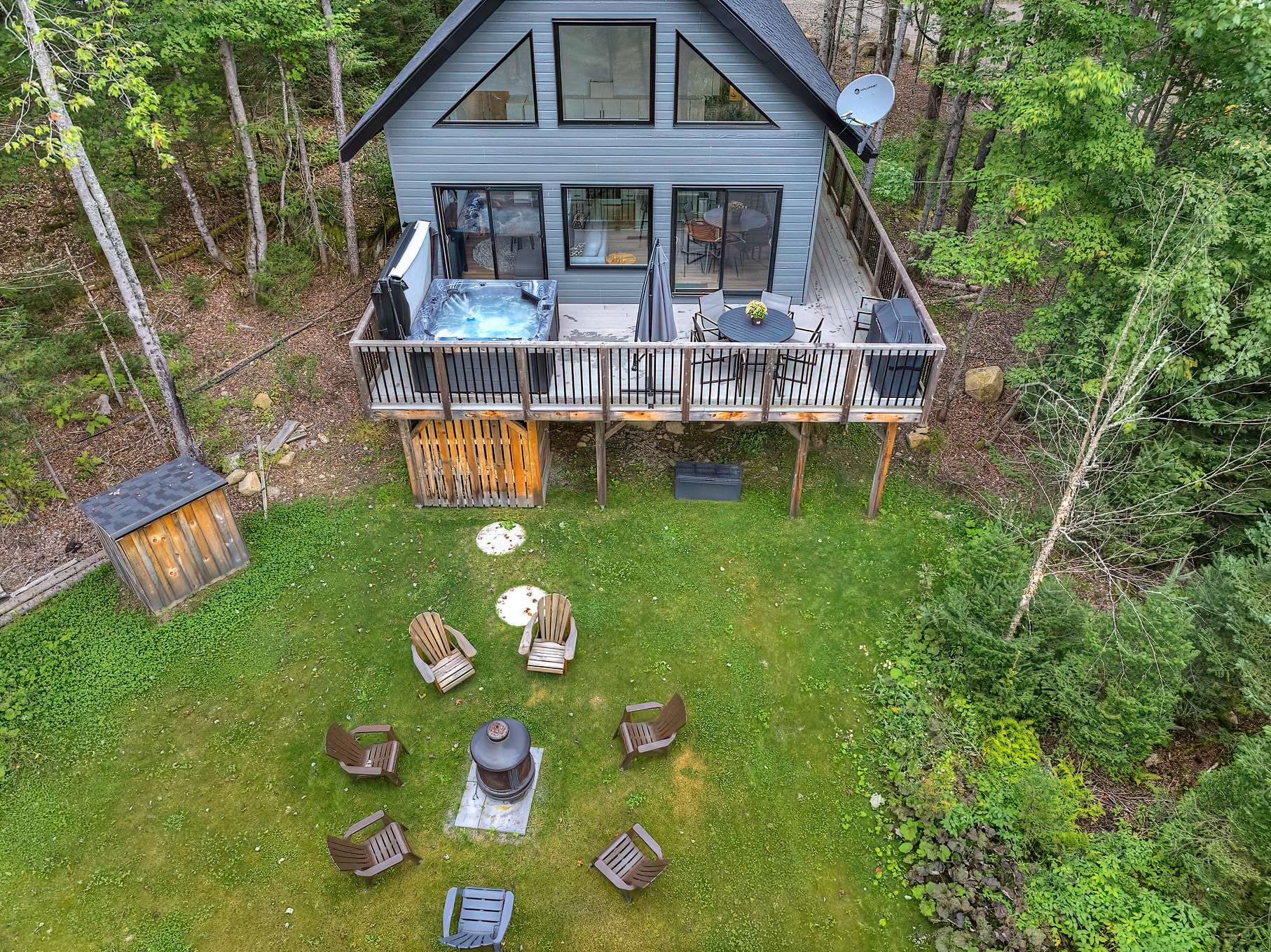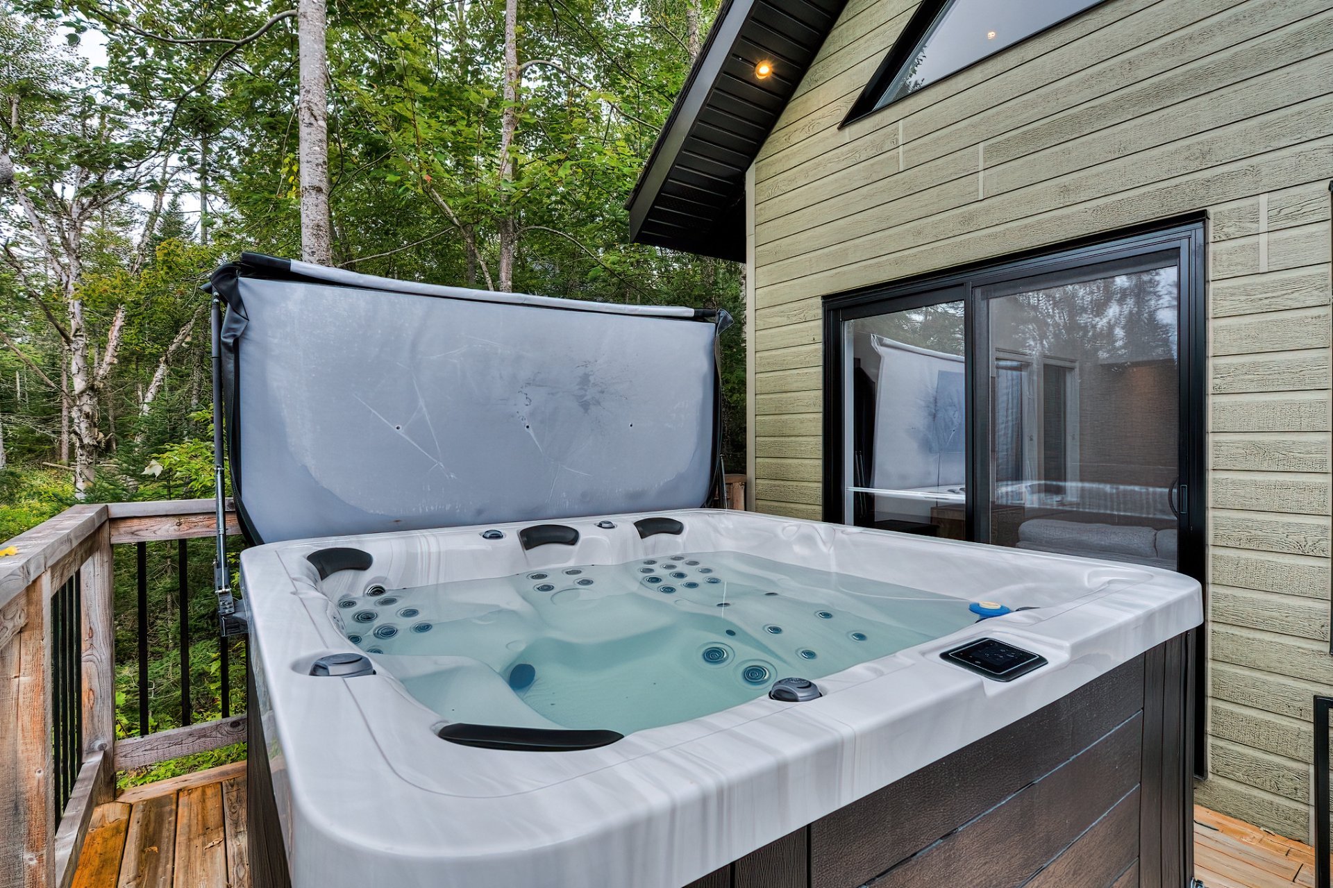 positionnées sur le terrain afin de permettre une intimité pour chacun des chalets. Ils disposent tous d'une terrasse, un spa et un espace pour faire des feux entre amis.